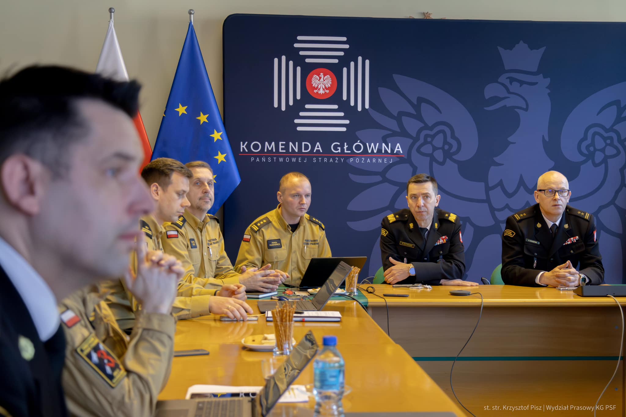 W posiedzeniu zespołu uczestniczył komendant główny PSP nadbryg. dr inż. Mariusz Feltynowski oraz zastępca komendanta głównego PSP bryg. Paweł Frysztak.