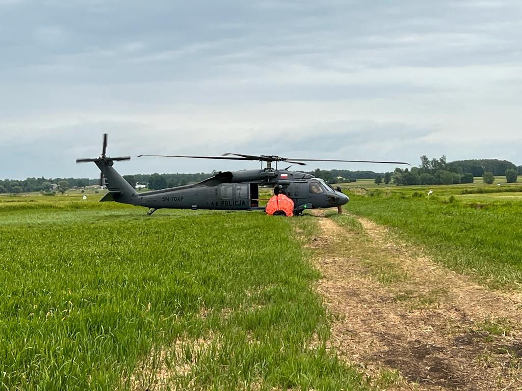 Strażacy, policyjni piloci i przedstawiciele lasów państwowych walczyli z pożarem łąk w okolicy Biebrzańskiego Parku Narodowego