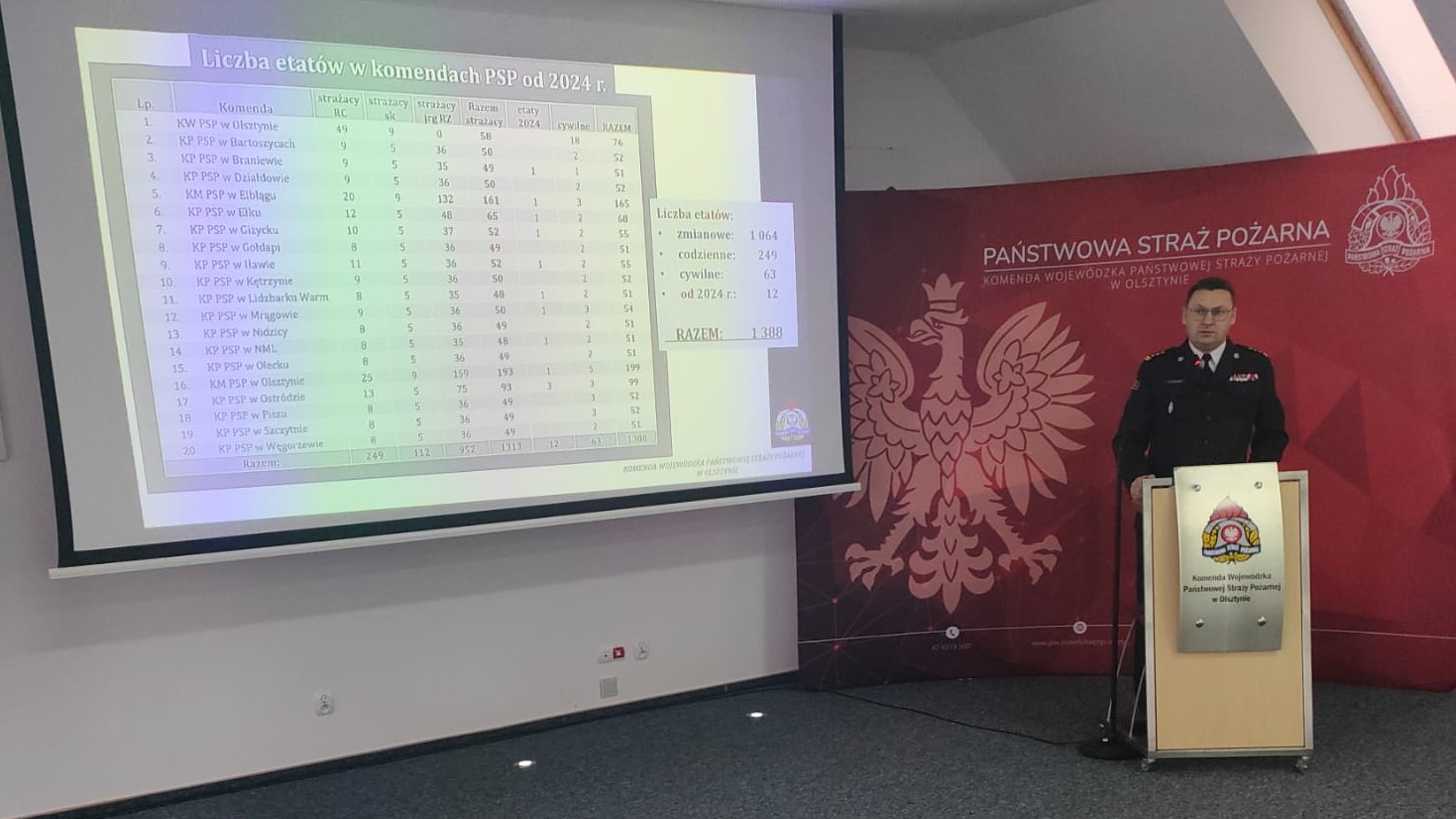 12 marca 2024 r. w Olsztynie odbyła się narada roczna, podsumowująca działalność warmińsko-mazurskich strażaków w 2023 roku. Z uczestnikami narady w trybie wideokonferencji połączył się zastępca komendanta głównego PSP bryg. dr inż. Grzegorz Szyszko, który podziękował warmińsko-mazurskim strażakom za dotychczasową służbę, zaangażowanie i poświęcenie w realizacji zadań służbowych oraz działań ratowniczo-gaśniczych. Jednocześnie przekazał główne kierunki i zadania zaplanowane do realizacji przez Państwową Straż Pożarną w 2024 roku.