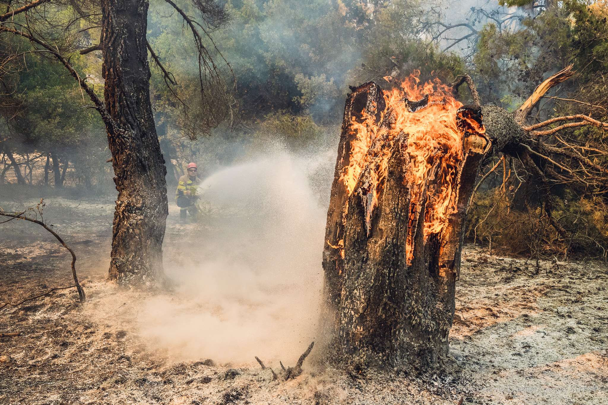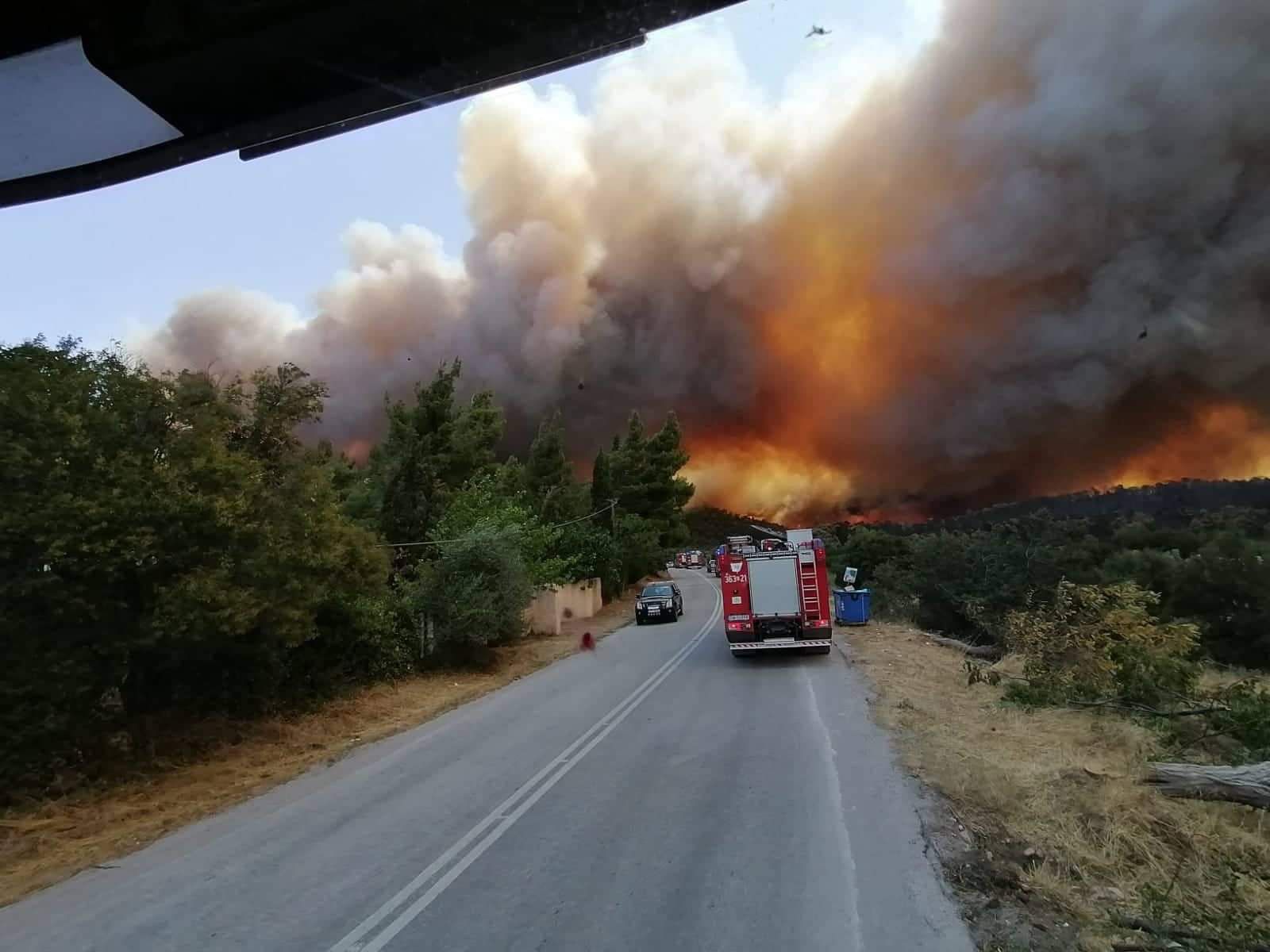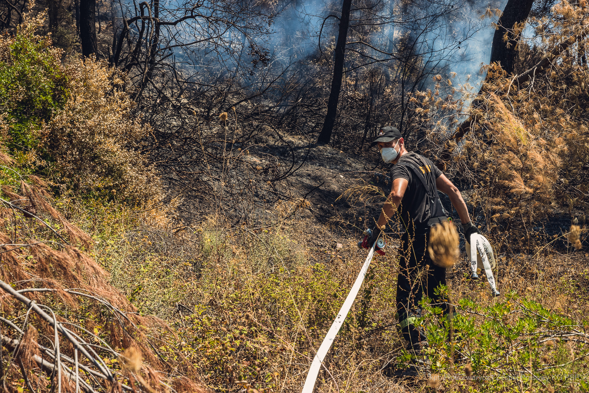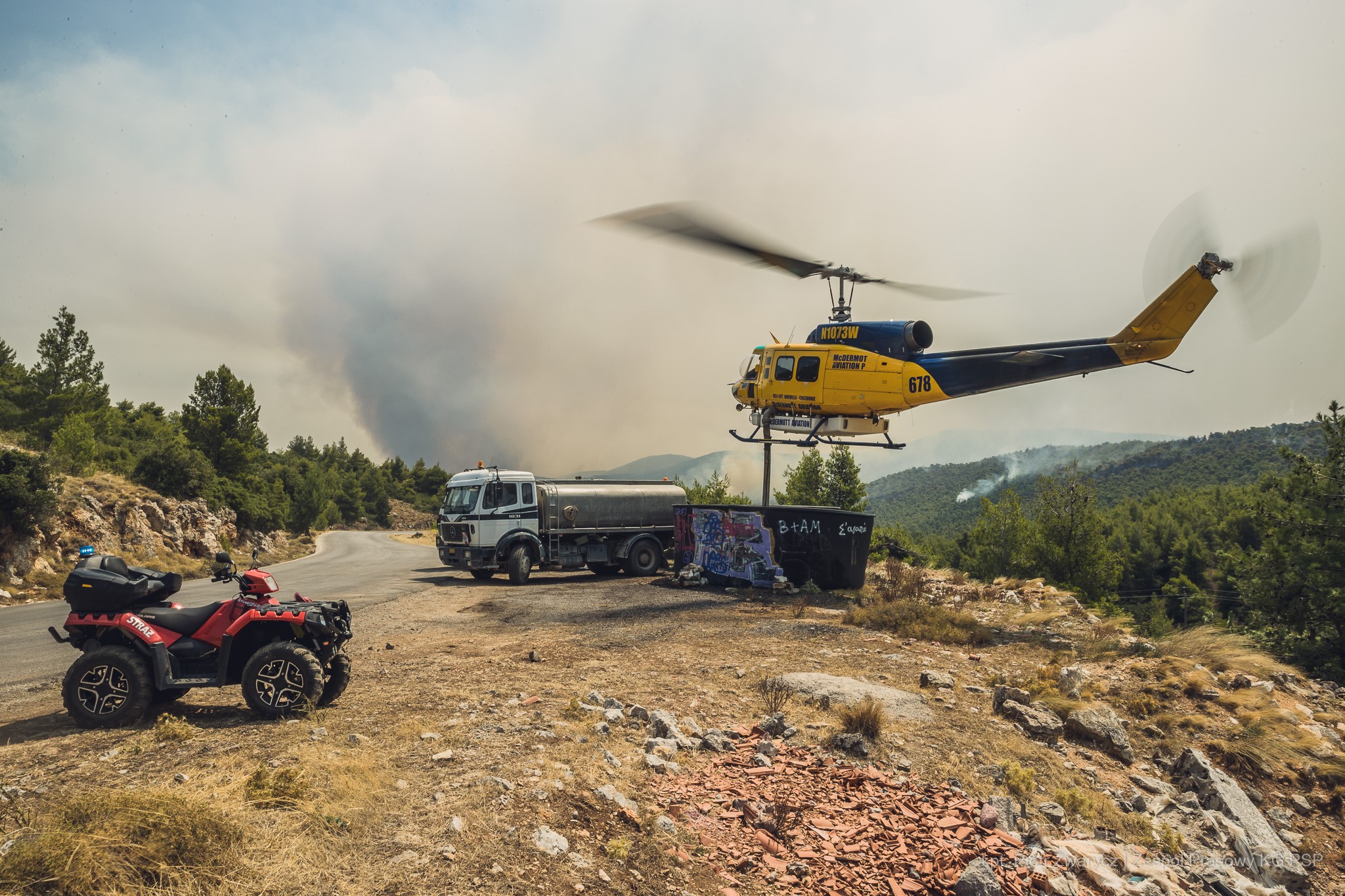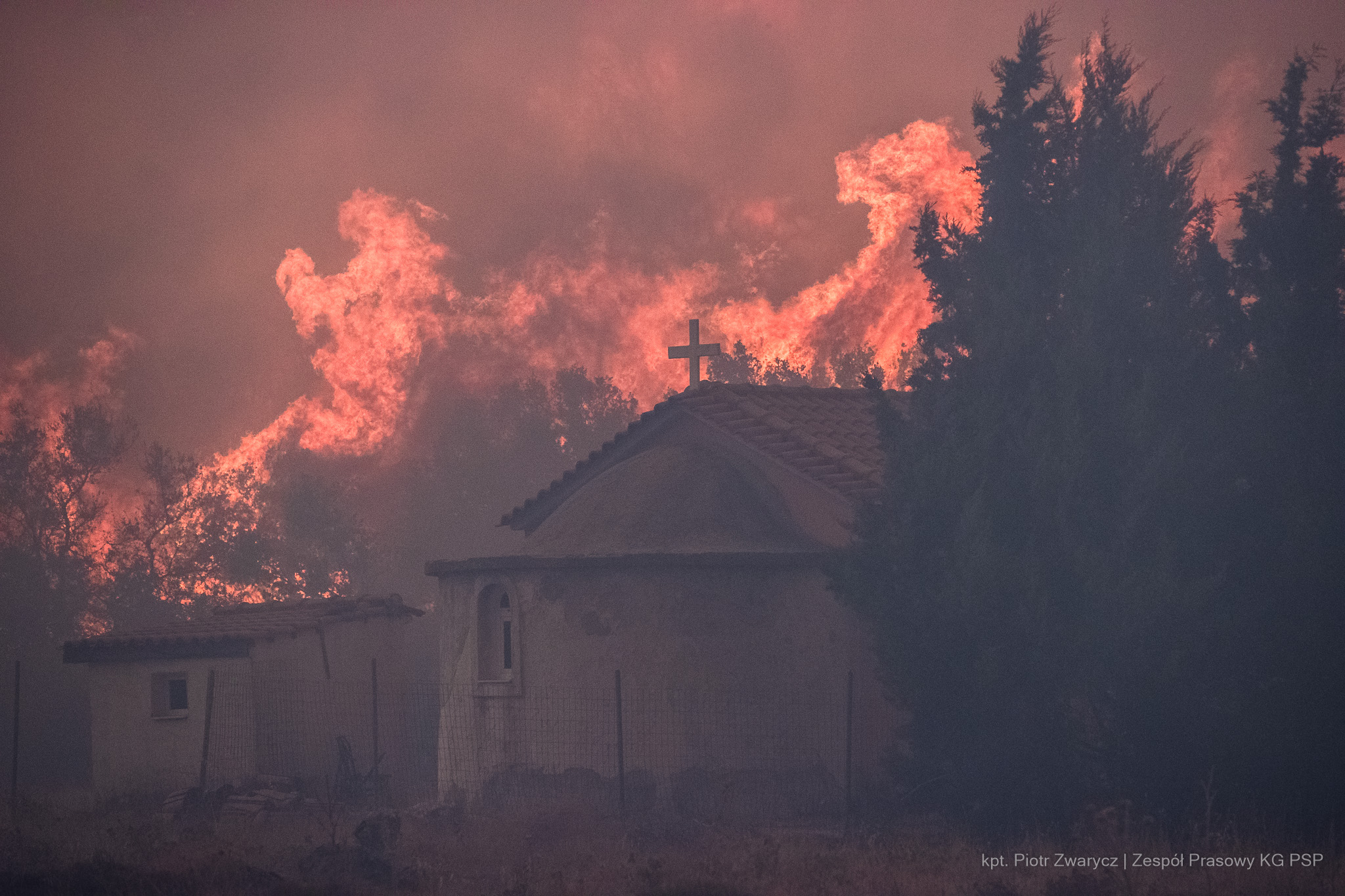 Minął kolejny dzień walki z żywiołem. W środę strażacy prowadzili działania obronne dla terenów zagrożonych ogniem i gaśnicze m.in. w m. Agios Gergios i Vilia a także w okolicy lasu objętego pożarem. Ponadto, zapewniali funkcjonowanie punktu czerpania wody na potrzeby zasilania wodnego do prowadzenia działań. Zmienny wiatr i silne jego podmuchy stwarzały bardzo trudne warunki pożarowe.