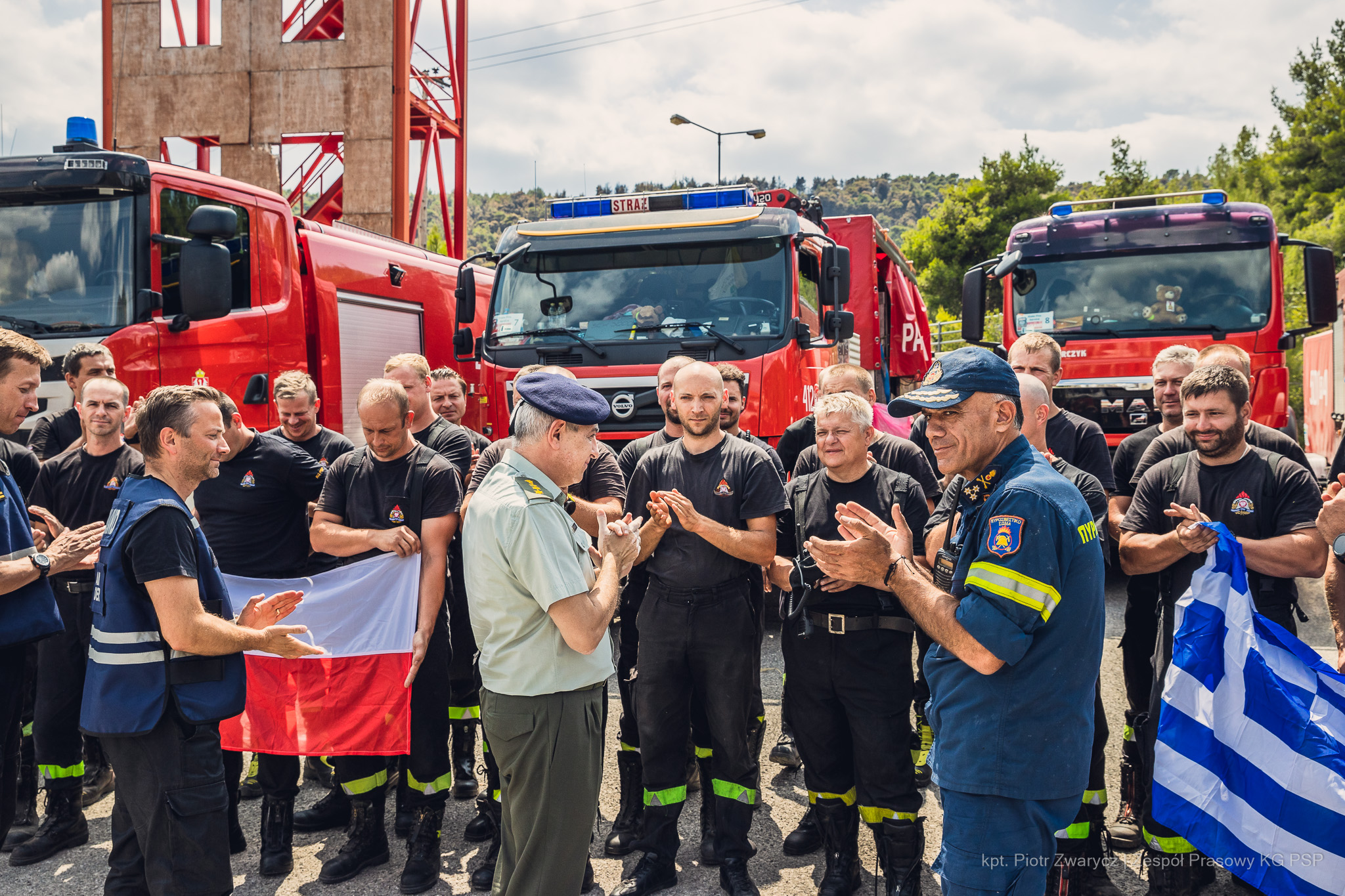 Minister Kamiński zwrócił się do strażaków słowami Jesteście doskonałymi ambasadorami Polski. Cały kraj jest z Was dumny, a cała Grecja jest Wam wdzięczna. Wielkie słowa uznania za Waszą odwagę, ofiarność i profesjonalizm.