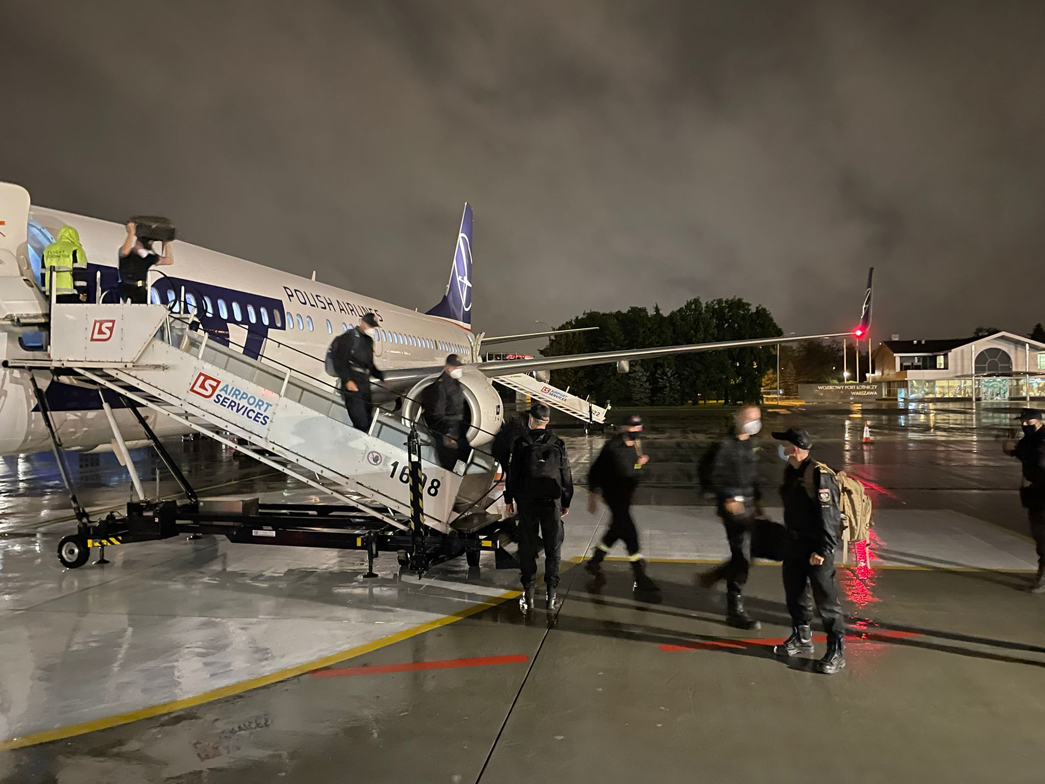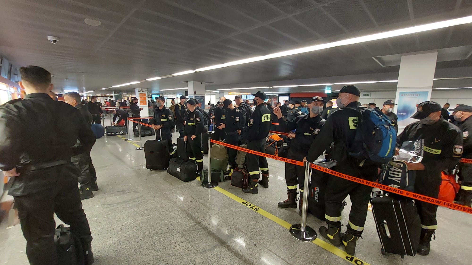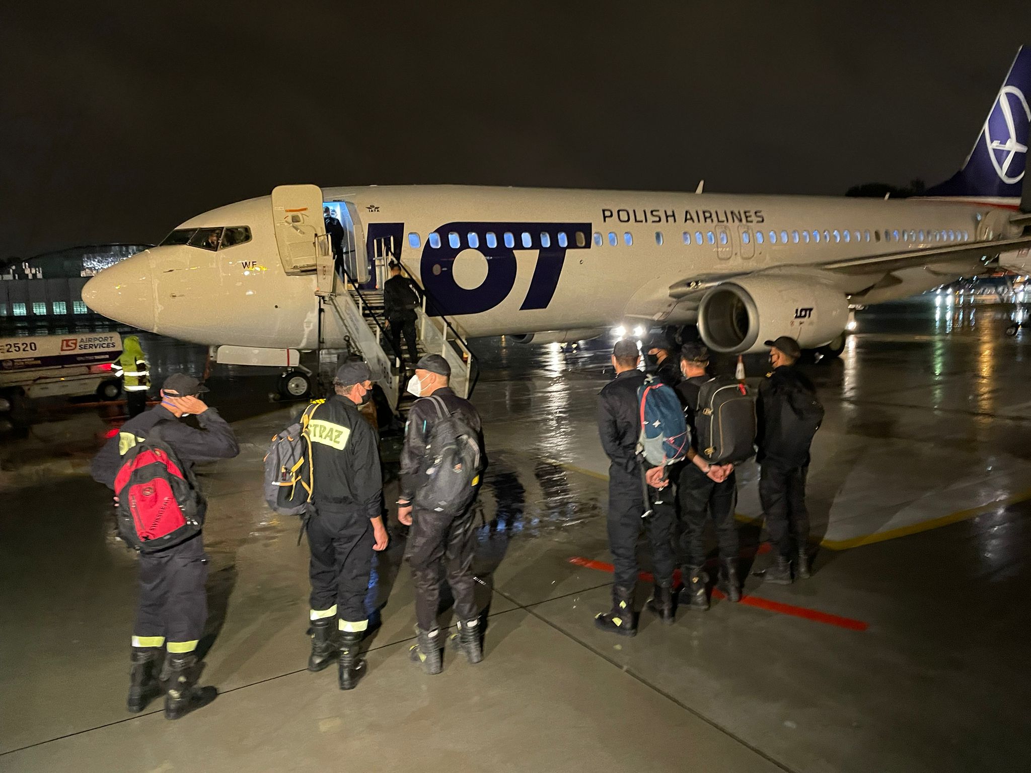 Grupa strażaków 1. zmiany GFFFV Poland wylądowała ok. godz. 21.00 na lotnisku w Warszawie. Załogę przywitali Minister Spraw Wewnętrznych i Administracji Mariusz Kamiński wraz z Wiceministrem Maciejem Wąsikiem oraz Komendant Główny PSP nadbryg. Andrzej Bartkowiak wraz z Zastępcami nadbryg. Adamem Koniecznym i nadbryg. Krzysztofem Hejdukiem.