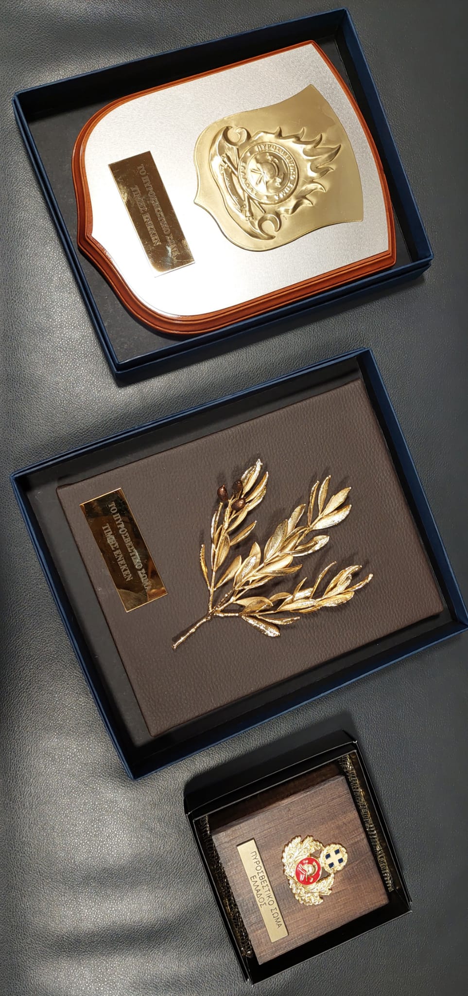 Minister podczas wizyty w ramach wdzięczności i podziękowania za nieocenioną pomoc w walce z pożarami przekazał pamiątkowe ryngrafy dla komendanta głównego PSP oraz dowódcy i zastępcy dowódcy GFFFV Poland