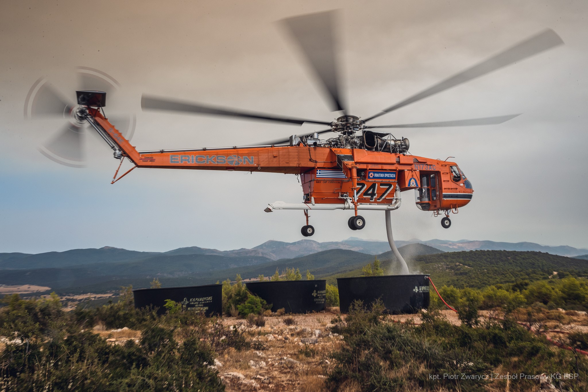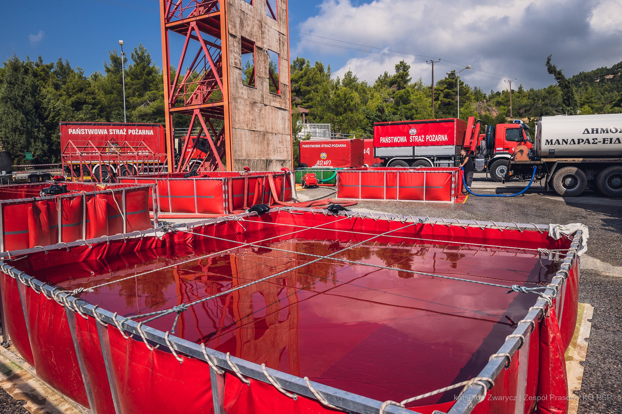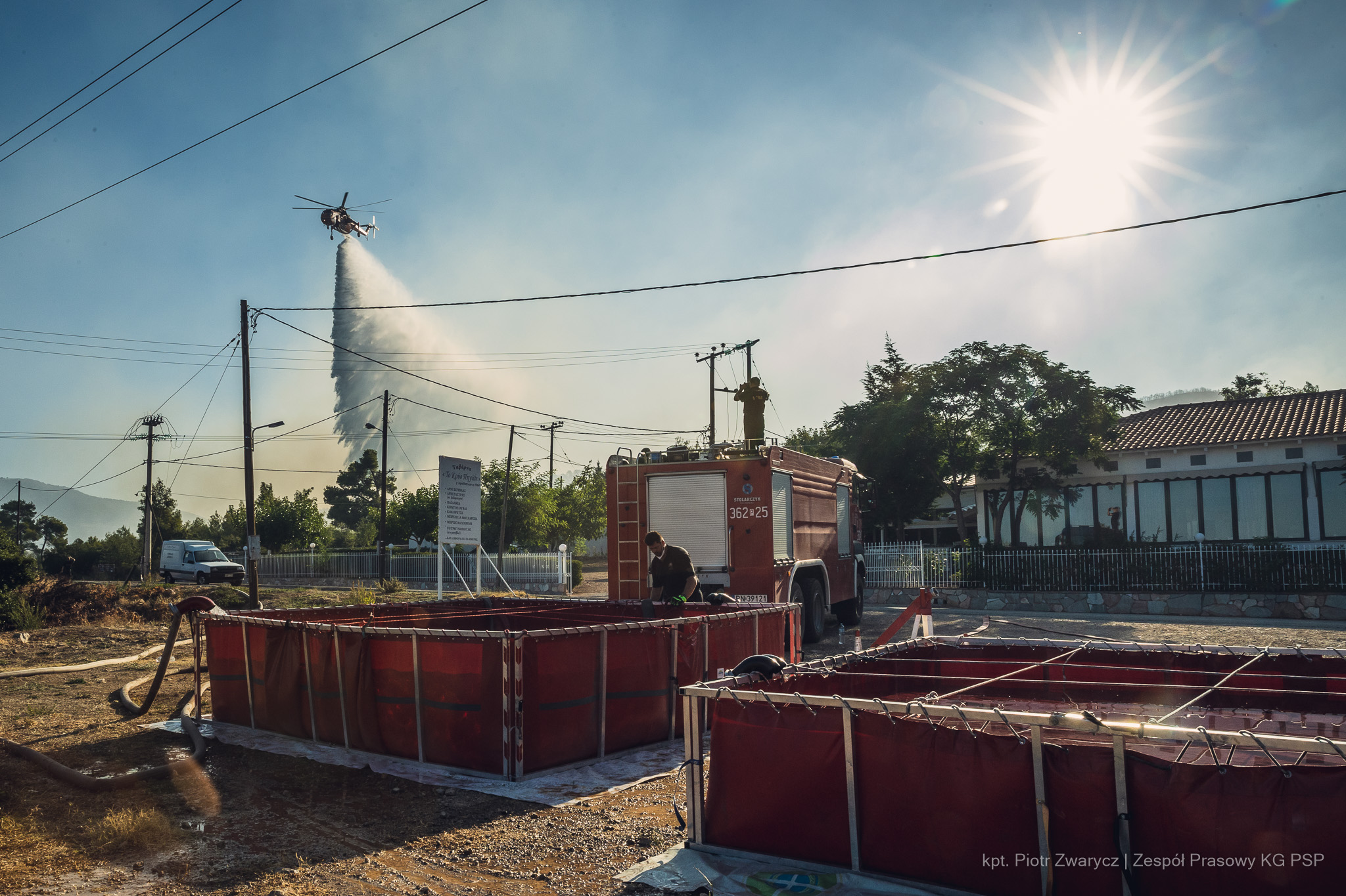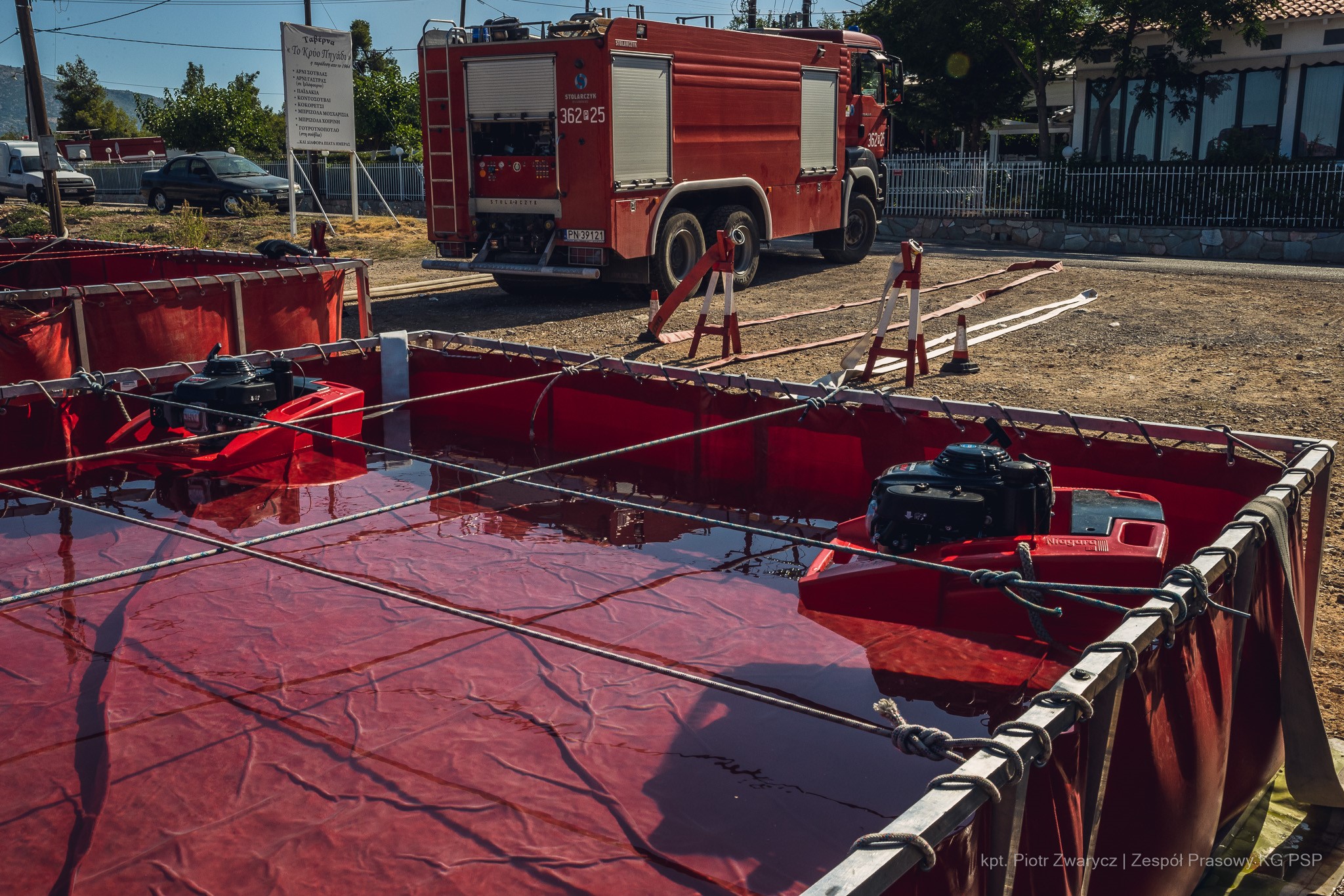 Zaopatrzenie wodne: jednym z najważniejszych elementów prowadzenia działań gaśniczych podczas pożarów wielkopowierzchniowych jest właściwa organizacja zaopatrzenia wodnego, w tym punktów czerpania wody. Jest to szczególnie kluczowe, gdy tak jak w Grecji, nasi strażacy prowadzą działania we współpracy z samolotami oraz śmigłowcami gaśniczymi, które dokonują zrzutów wody na ogniska pożaru w miejscach trudnodostępnych. Warto podkreślić, że samoloty gaśnicze pobierają wodę m.in. z morza.