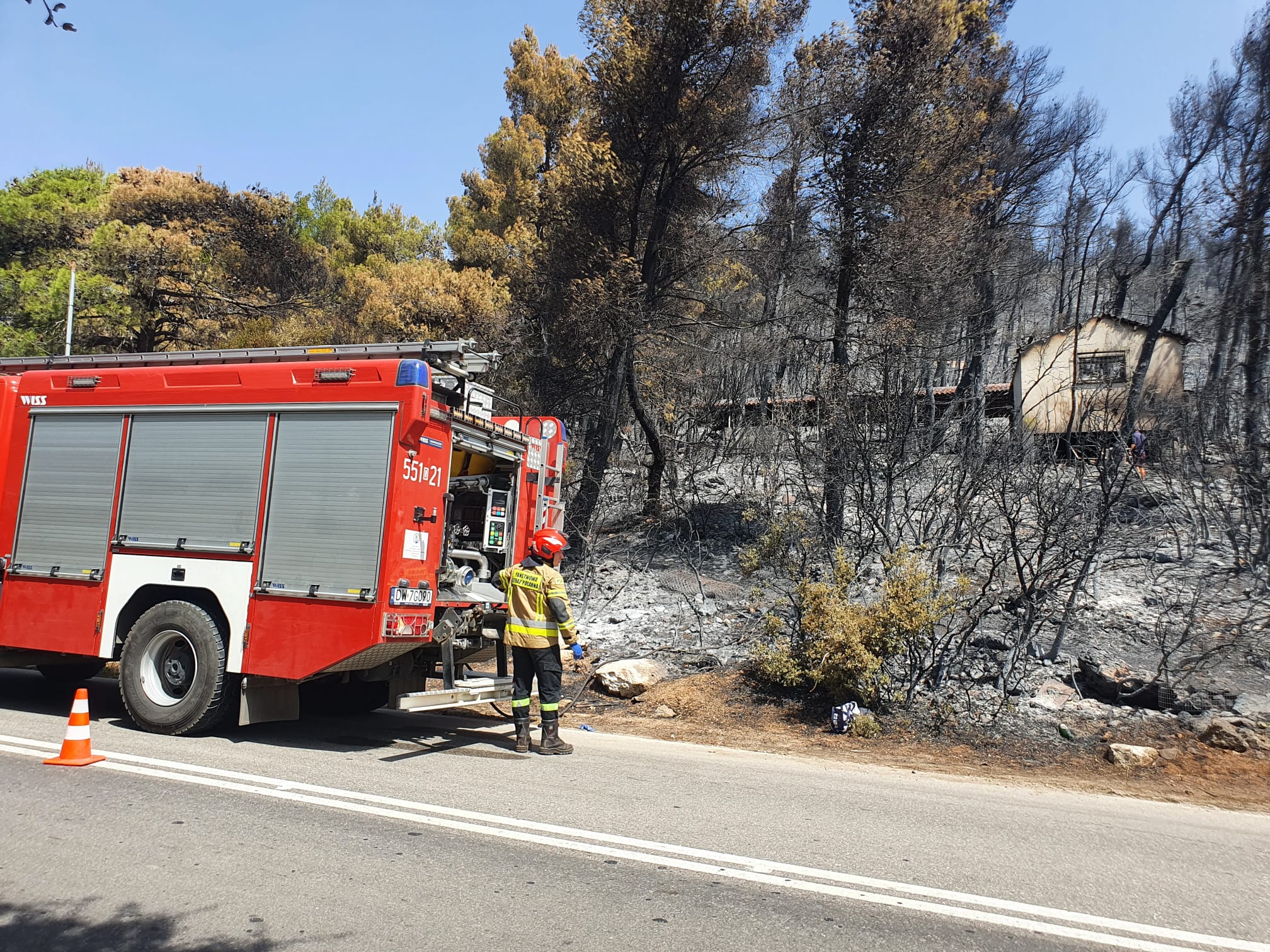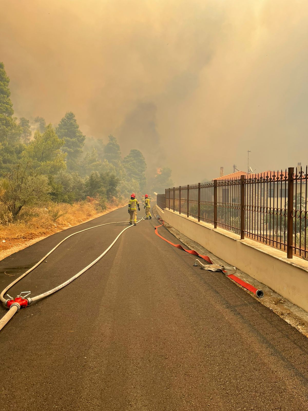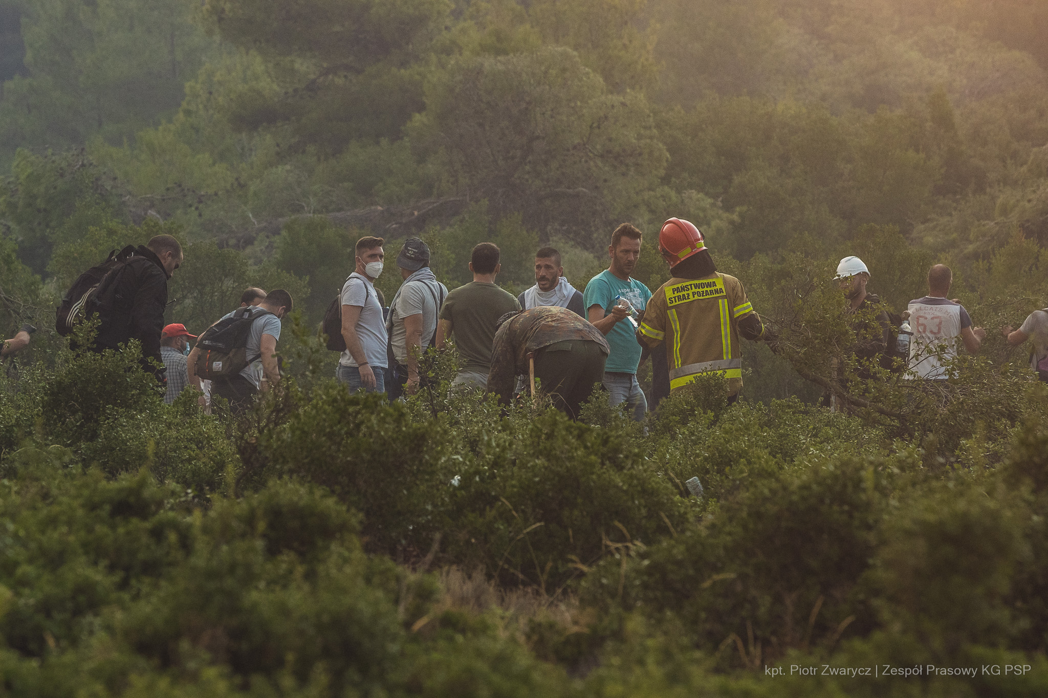 Działania gaśnicze w m. Vilia: zgodnie z informacją przekazaną przez dowództwo modułu GFFFV Poland, w środę nasi strażacy pracowali w pięciu sektorach równolegle. Co należy podkreślić, ostatni sektor uruchomiony został interwencyjnie ze względu na dynamiczną zmianę sytuacji pożarowej w okolicach m. Vilia, do której niebezpiecznie szybko zaczął się zbliżać front pożaru. Na prośbę greckich służb, wszystkie dostępne w Bazie Operacji zastępy PSP, które odtwarzały gotowość bojową po wcześniejszych działaniach, zostały natychmiast zadysponowane. Polakom postawiono dwa zadania: obronić przed żywiołem m. Vilia oraz zapewnić wodę do zbiorników, z których tankowały się śmigłowce gaśnicze. Polscy strażacy utworzyli ostatnią linię obrony miasta na długości ok. 3 km. Dzięki ogromnemu zaangażowaniu i poświęceniu, po wielogodzinnej walce do późnych godzin nocnych, miasto oraz jego mieszkańców udało się uratować.