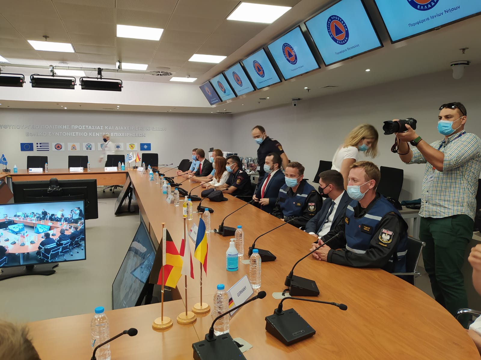 Dowództwo polskiej grupy bryg. Michał Langner oraz bryg. Tomasz Grelak spotkali się dziś w Ambasadzie RP w Atenach z ambasadorem Polski w Grecji oraz szefem krajowego centrum operacyjnego. Podczas spotkania oficerowie PSP otrzymali podziękowania za udzielone wsparcie w walce z żywiołem ognia na wyspie Evia w okolicach m. Ellinika, Gouves i Agrivotano.