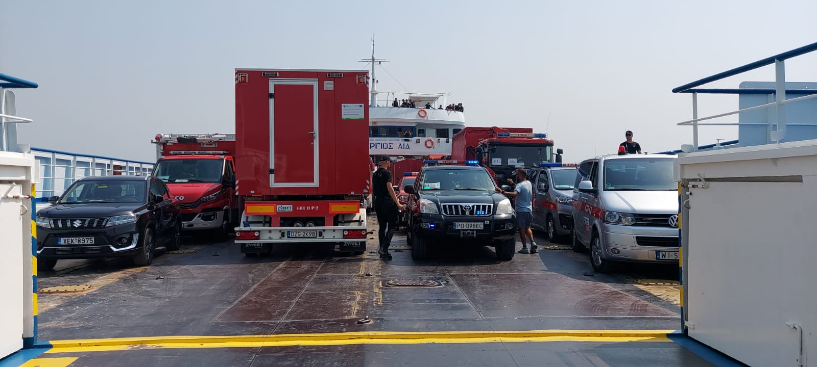 W godzinach porannych strażacy wyruszyli z miejscowości SERES (miejsce noclegu w Grecji) zmierzając do wyspy Evia. W godz. popołudniowych zakończyli przeprawę promem (w 3 turach) i dotarli na wyspę. Ok. godz. 18 dotarli do miasta Istieas, gdzie znajduje się lokalne centrum operacji gaśniczej. Kilku oficerów udało się pojazdem na rozpoznanie operacyjne potencjalnych miejsc prowadzenia działań. Pozostała część grupy pozostała w mieście, przeprowadzono rozpoznanie możliwych lokalizacji na założenie bazy operacji.
