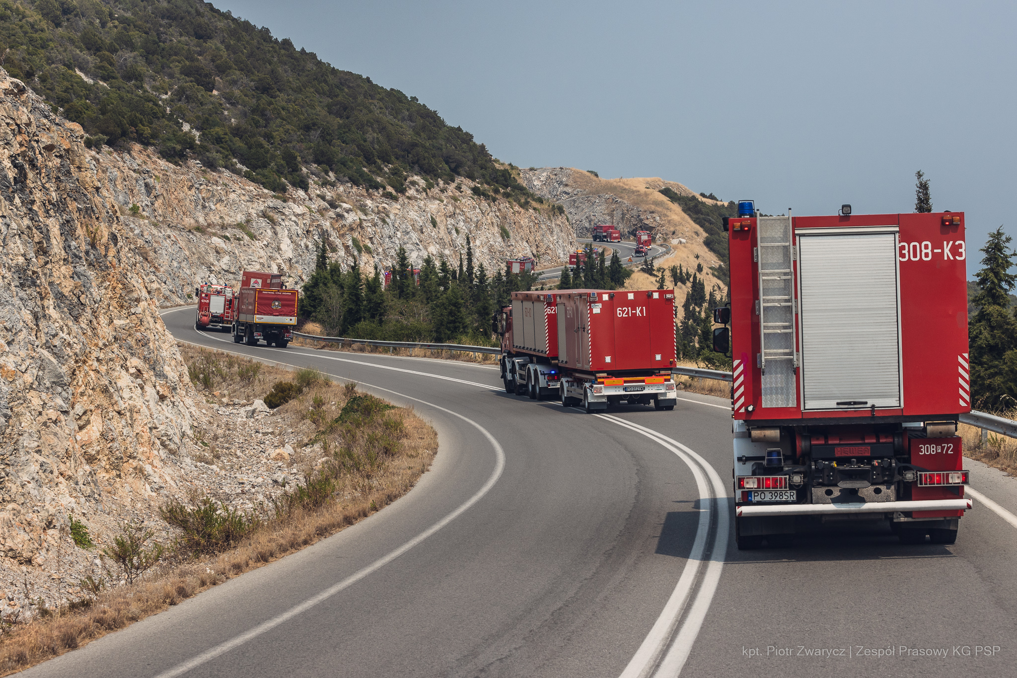 Ok. godz. 20.00 konwój wjechał na terytorium Grecji zmierzając do miejsca noclegu (ok. 40 km). Rano wyruszą do miejsca docelowego, prawdopodobnie będzie to wyspa Evia, gdzie sytuacja pożarowa jest najgorsza.