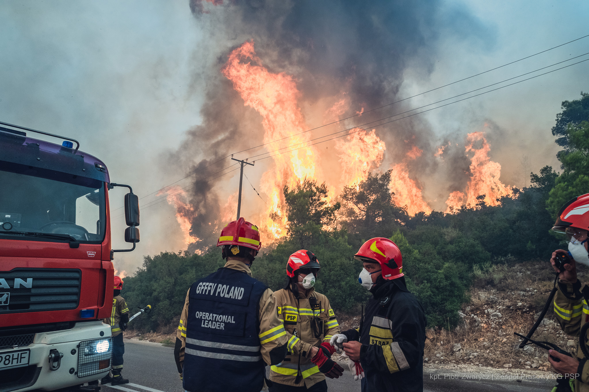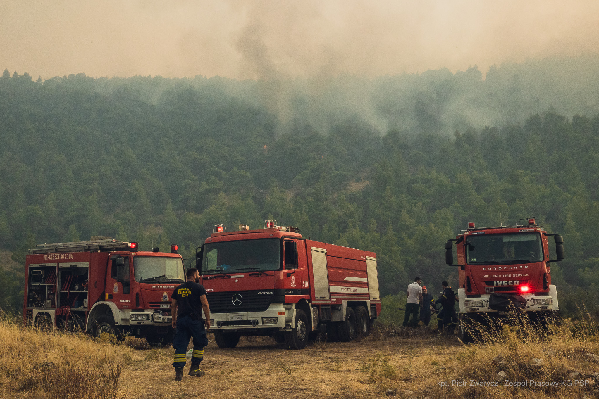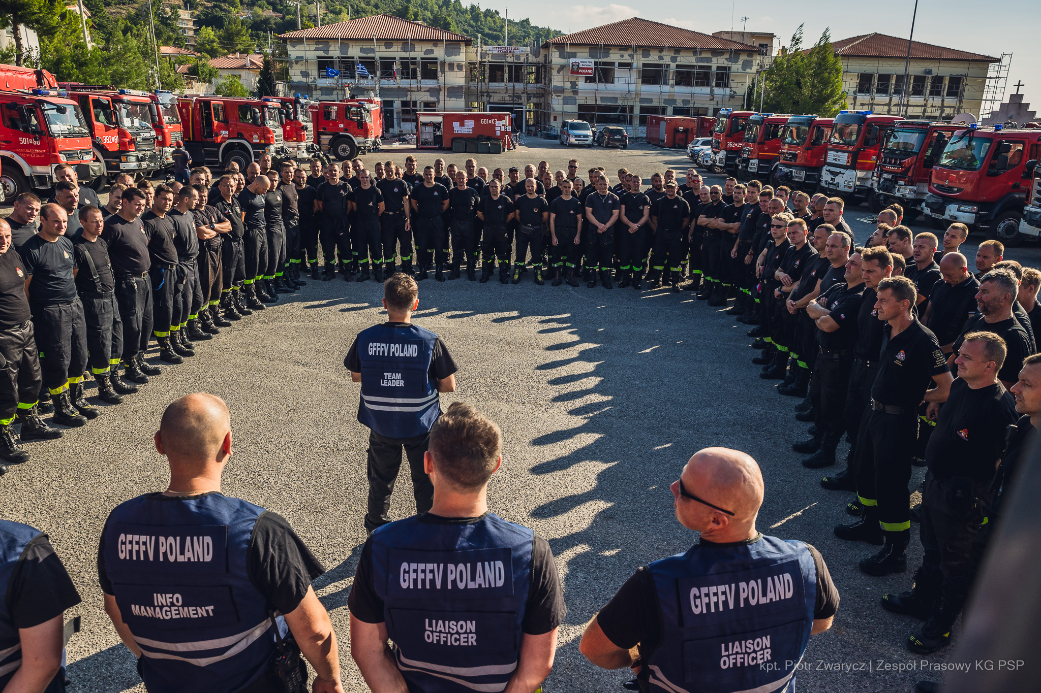 W odpowiedzi na prośbę Grecji, nasz kraj skieruje do walki z pożarami siły i środki Państwowej Straży Pożarnej tj. dwa moduły GFFFV z Wrocławia i Poznania - 143 ratowników, 46 pojazdów (samochody gaśnicze, specjalne, dowodzenia i łączności, kontenery, quady, busy , autobusy i przyczepy).