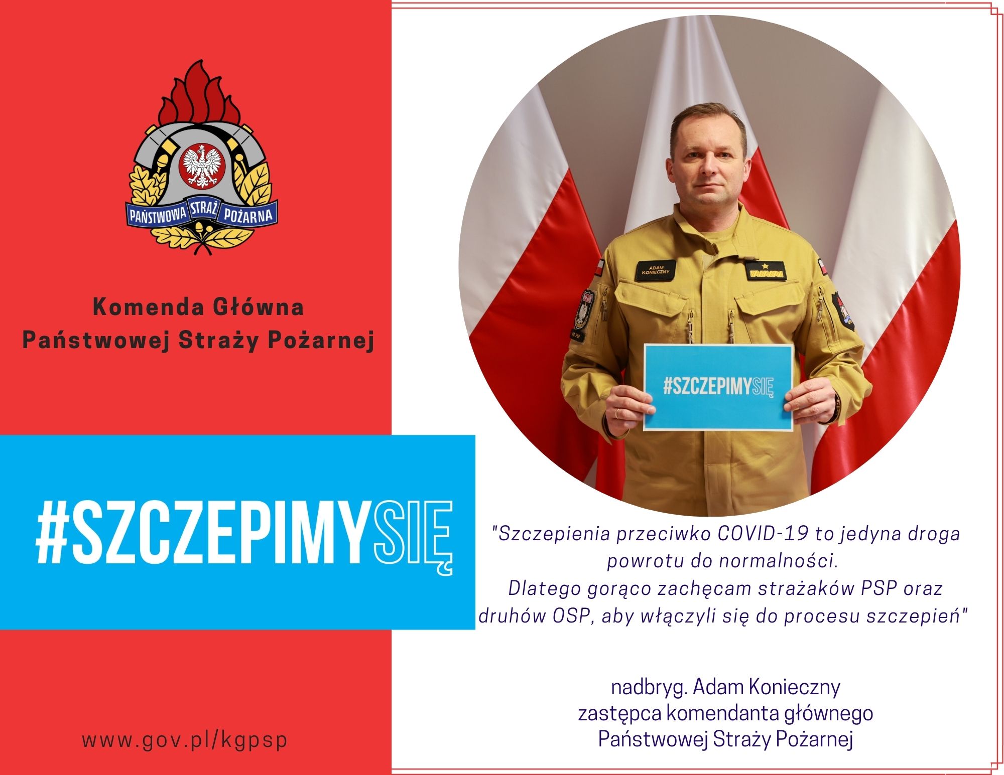 W trosce o zdrowie nas wszystkich, ponawiamy więc apel komendanta głównego PSP, nadbryg. Andrzeja Bartkowiaka „Funkcjonariuszki i funkcjonariusze, druhny i druhowie, apeluję szczepcie się! Jesteście na pierwszej linii frontu! Żeby ratownik mógł ratować musi być zdrowy".