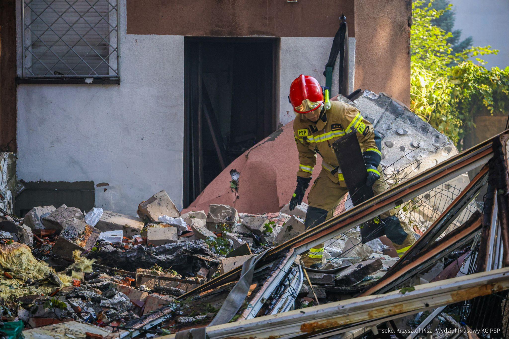 Działania strażaków polegały na ugaszeniu pożaru, który objął swoim zasięgiem cały budynek, w tym dach. Jednocześnie trwały intensywne poszukiwania dwóch strażaków, którzy w momencie wybuchu znajdowali się w piwnicy. W tym celu m. in. przeprowadzono stabilizację budynku, który po zawaleniu drewnianych stropów utracił stabilność elementów konstrukcyjnych.