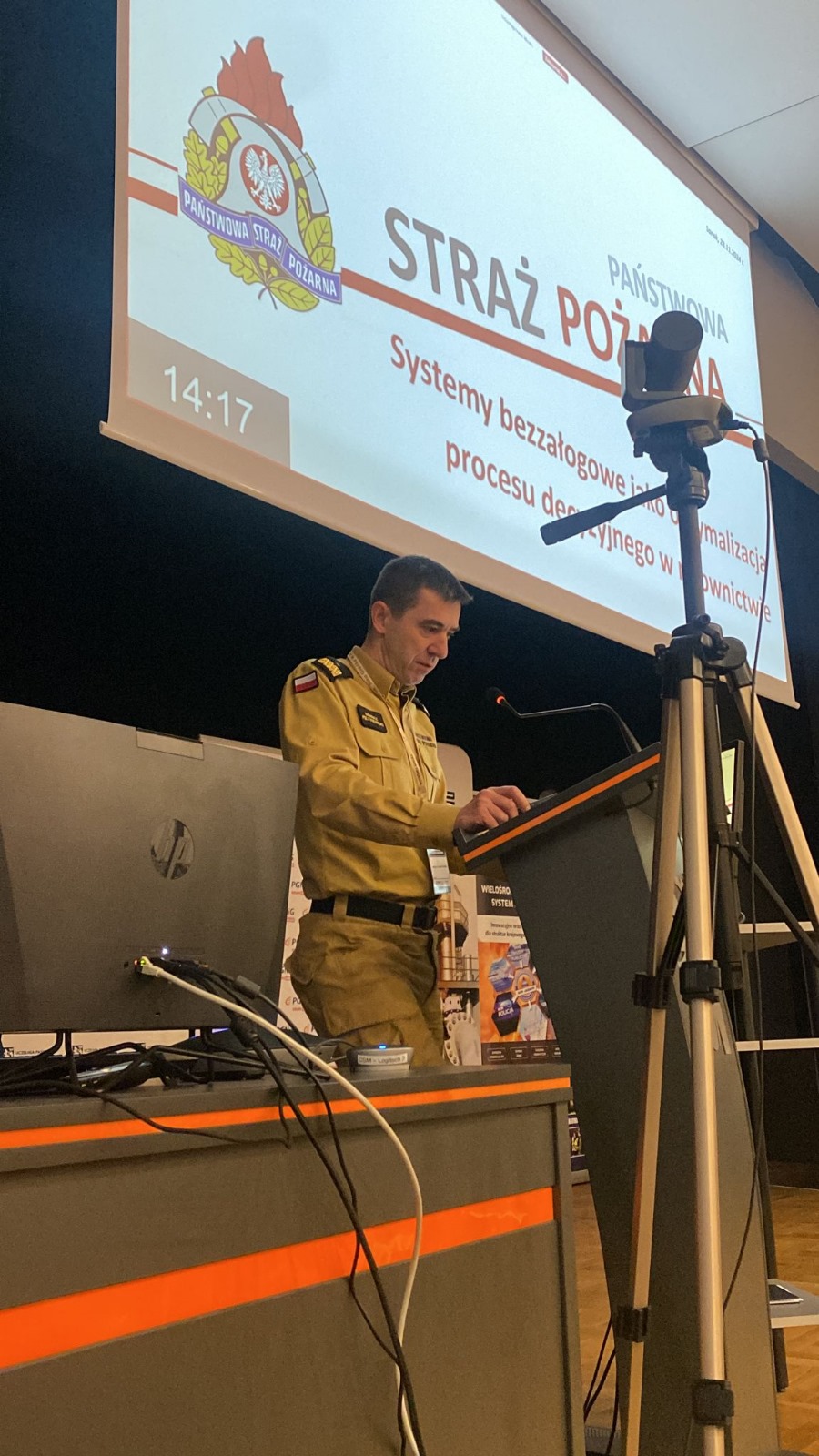 Komendant Główny PSP w trakcie prelekcji nt. „Systemy bezzałogowe jako optymalizacja procesu decyzyjnego w ratownictwie”, przedstawił informację o roli bezzałogowych statków powietrznych (BSP) używanych przez PSP i OSP dla skuteczności działań ratowniczych i zapewnienia bezpieczeństwa.