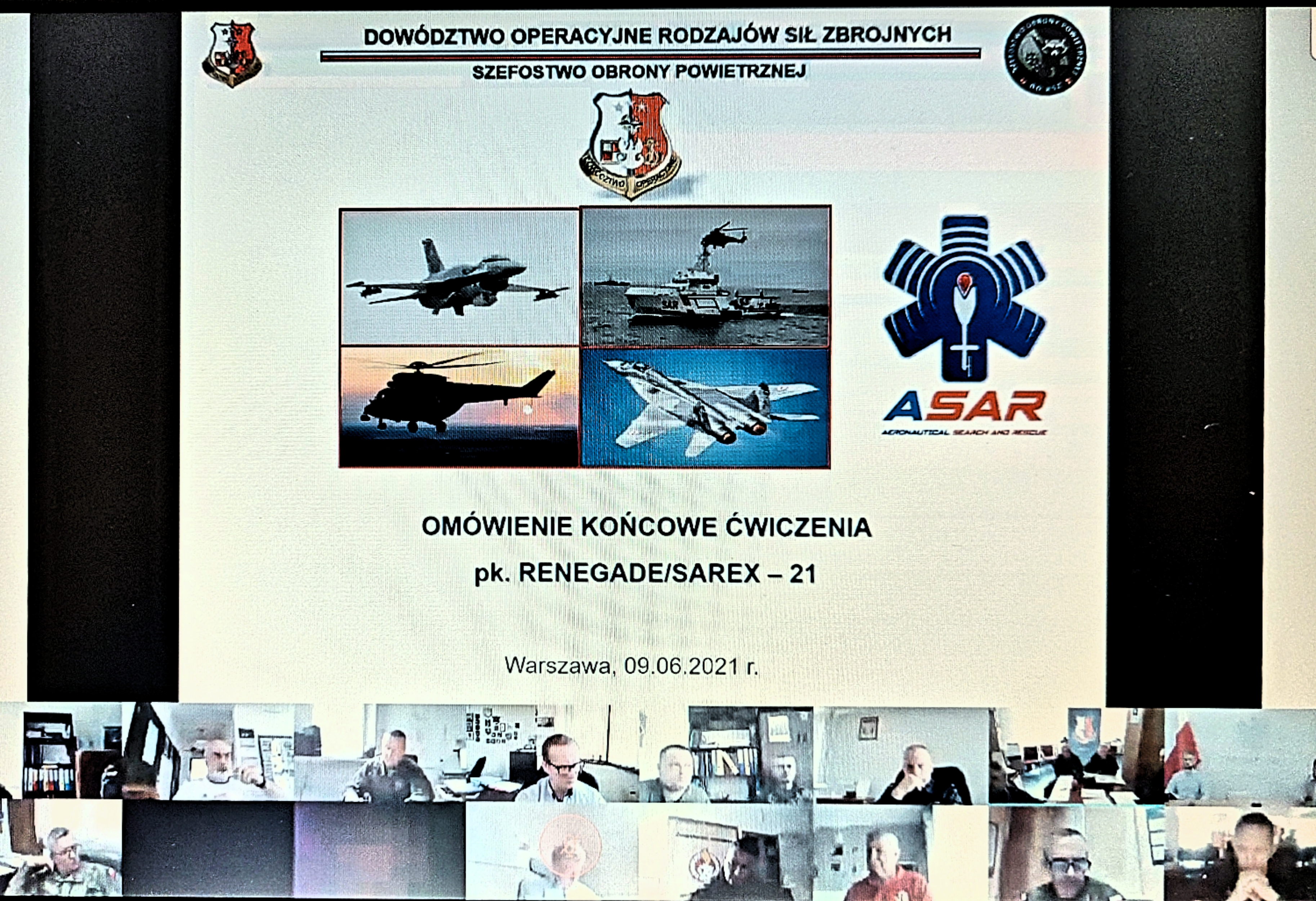 W dniu 9 czerwca br. Krajowe Centrum Koordynacji Ratownictwa i Ochrony Ludności KG PSP oraz przedstawiciele PSP z woj. biorących udział w ćwiczeniach pk. Renegade/Sarex – 21, uczestniczyli w omówieniu końcowym ćwiczenia, zorganizowanym przez Dowództwo Operacyjne Rodzajów Sił Zbrojnych SZ RP.