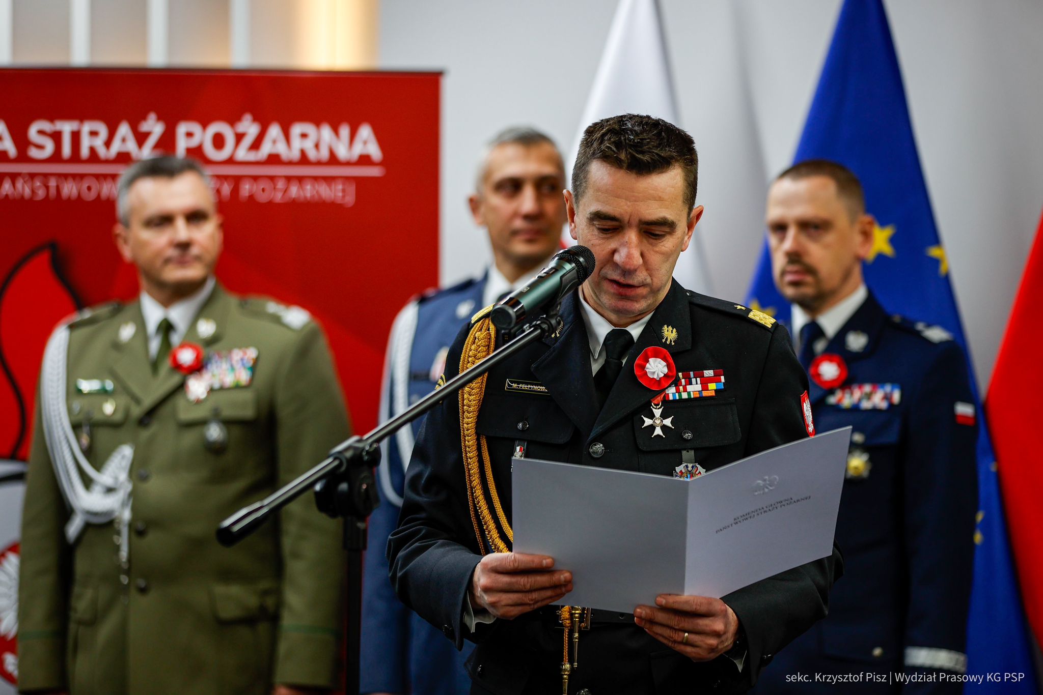 W środę 13 listopada 2024 r. w siedzibie Komendy Głównej PSP odbyła się uroczysta zbiórka z okazji Narodowego Święta Niepodległości oraz promocji na pierwszy stopień oficerski w Państwowej Straży Pożarnej.