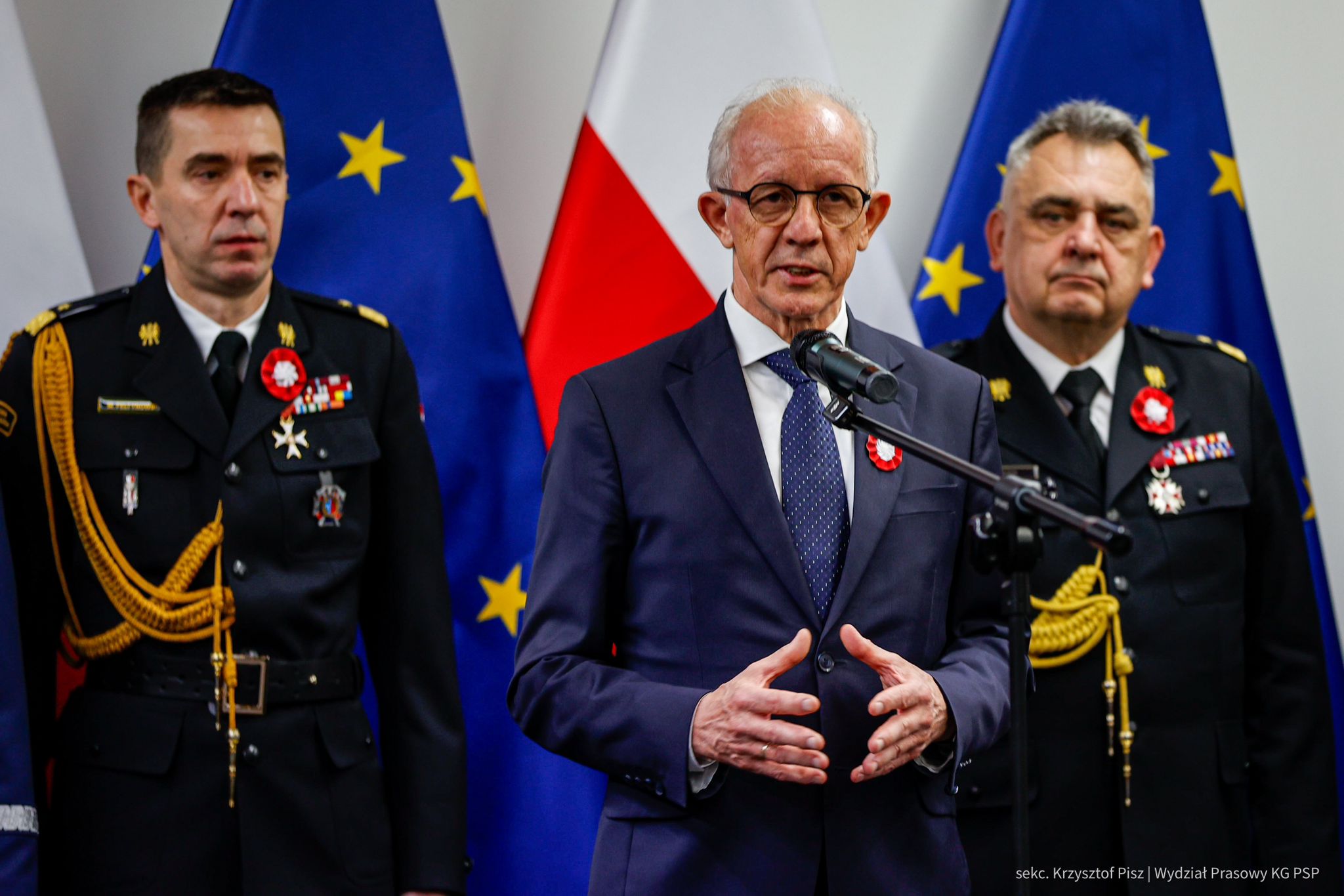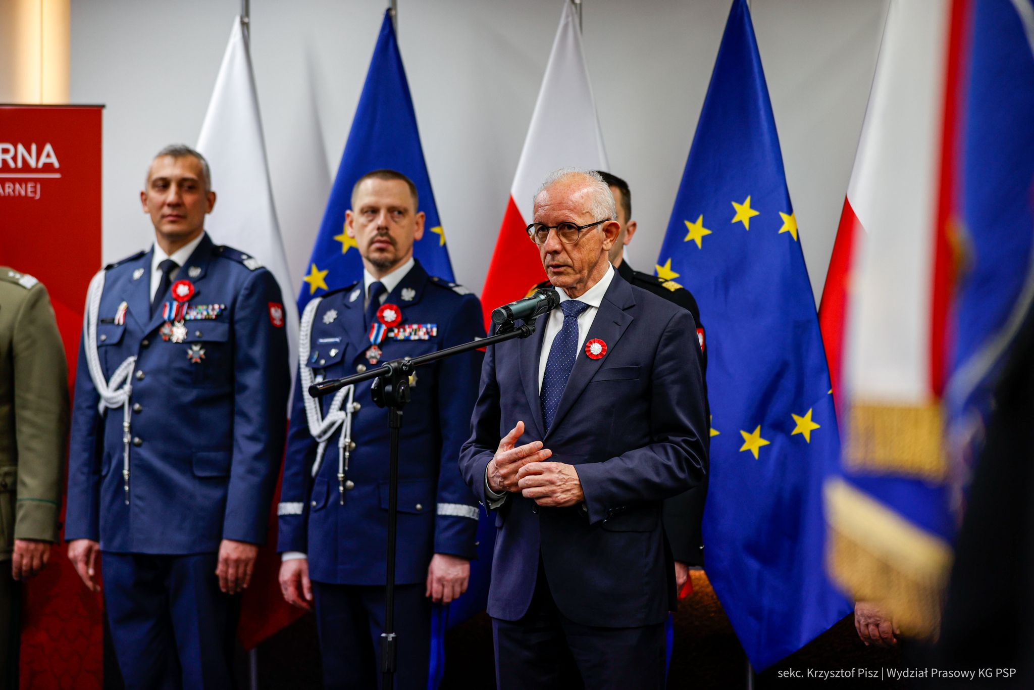 Narodowe Święto Niepodległości upamiętnia trud poniesiony ponad 100 lat temu. Nadrzędne cele wspólne dla naszych przodków dla nas pozostają niezmienne. Dzisiaj spotykamy się tutaj, by powiedzieć Wam wszystkim dziękuję. Wystarczy jedno słowo, które objaśnia, uzasadnia naszą dzisiejszą obecność. Tym słowem jest służba. 97% zaufania wśród społeczeństwa nie bierze się znikąd. Nie ukrywam, że jestem bardzo dumny, że mogę stać na czele Krajowego Systemu Ratowniczo-Gaśniczego. To jest 155 tysięcy strażaków ochotników, strażaków Państwowej Straży Pożarnej. Serdecznie gratuluję wszystkim Państwu i życzę dalszych sukcesów w służbie i pracy. Dziękuję Wam, że jesteście.