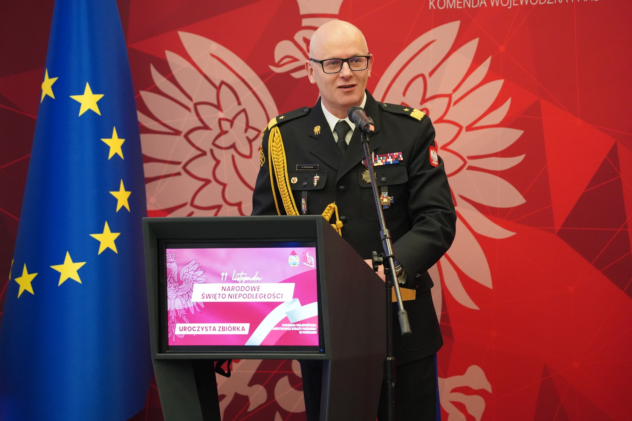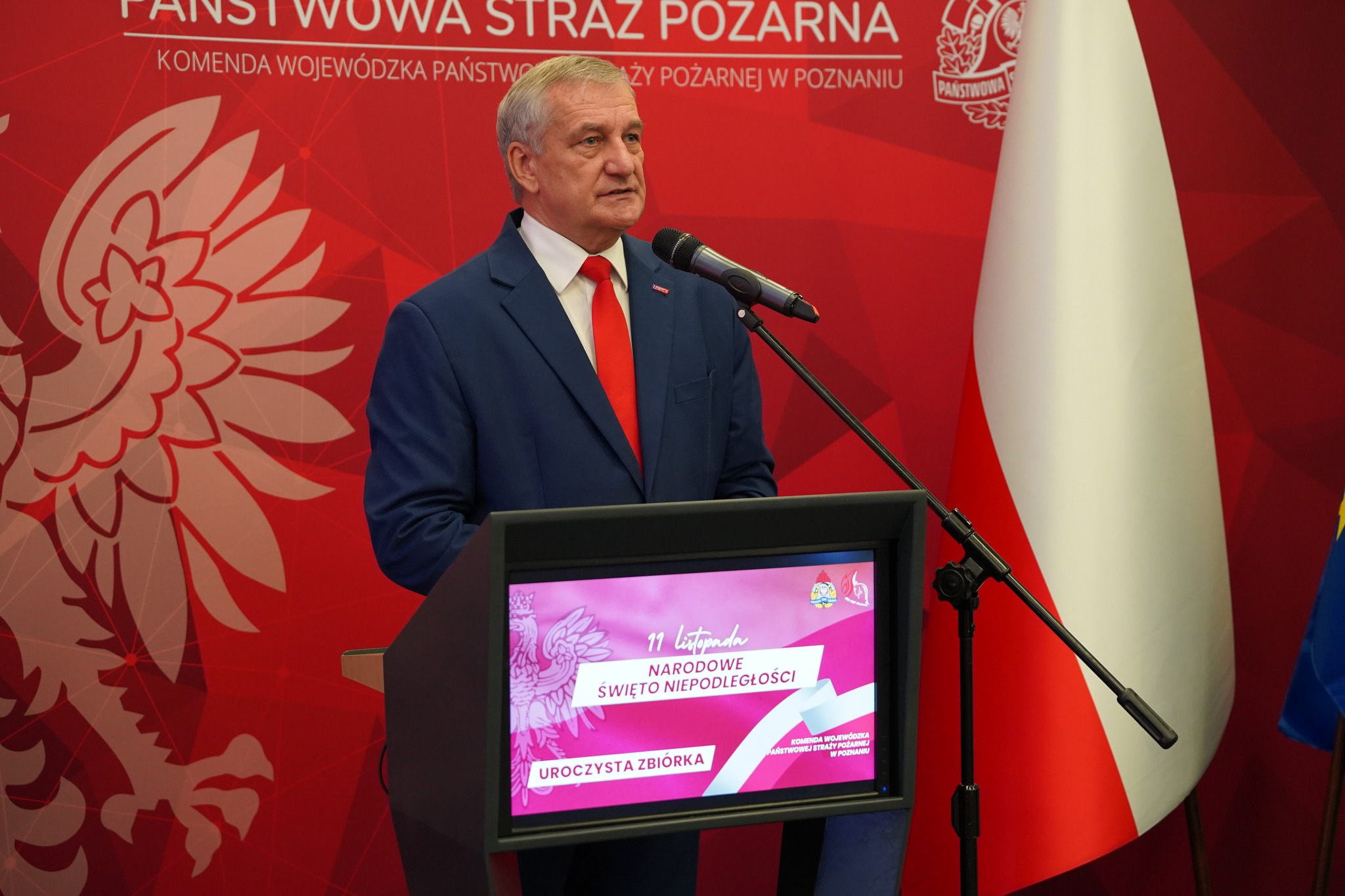Kolejno głos zabrał st. bryg. Jacek Strużyński, Wielkopolski Komendant Wojewódzki PSP, podkreślając znaczenie obchodów dla służb dbających o bezpieczeństwo obywateli.