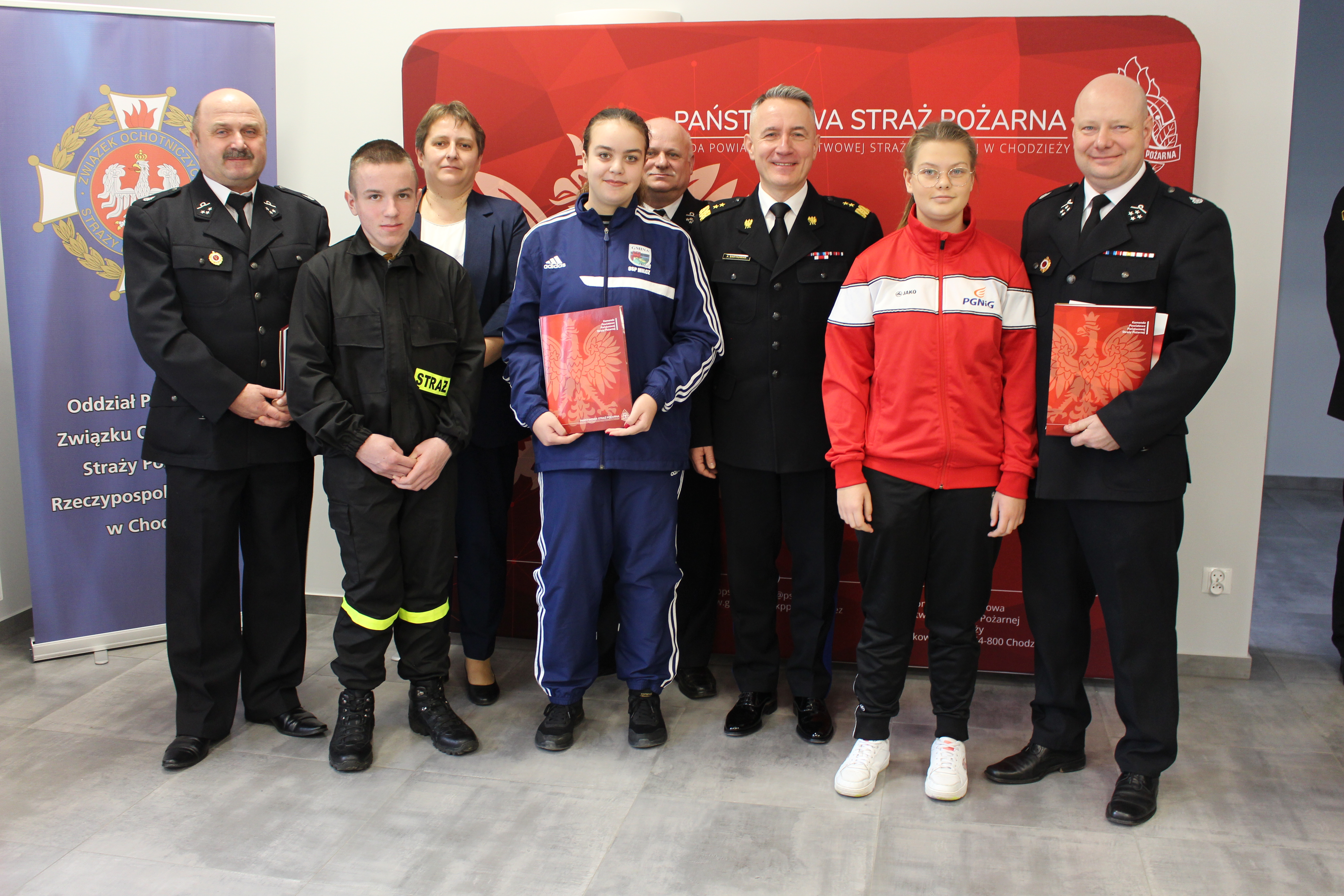 Wręczenia promes finansowych dla Młodzieżowych Drużyn Pożarniczych działających przy jednostkach Ochotniczych Straży Pożarnych dokonał gen. brygadier Andrzej Bartkowiak komendant główny PSP oraz st. bryg. Jarosłąw Zamelczyk zastępca wielkopolskiego komendanta wojewódzkiego PSP w asyście zaproszonych gości: sekretarza stanu w Ministerstwie Rozwoju i Technologii Pana Grzegorza Piechowiaka, posłów na Sejm RP Pani Marty Kubiak, Panów Krzysztofa Czarneckiego, Marcina Porzucek, a także wojewody wielkopolskiego Pana Michała Zielińskiego oraz władz samorządowych.