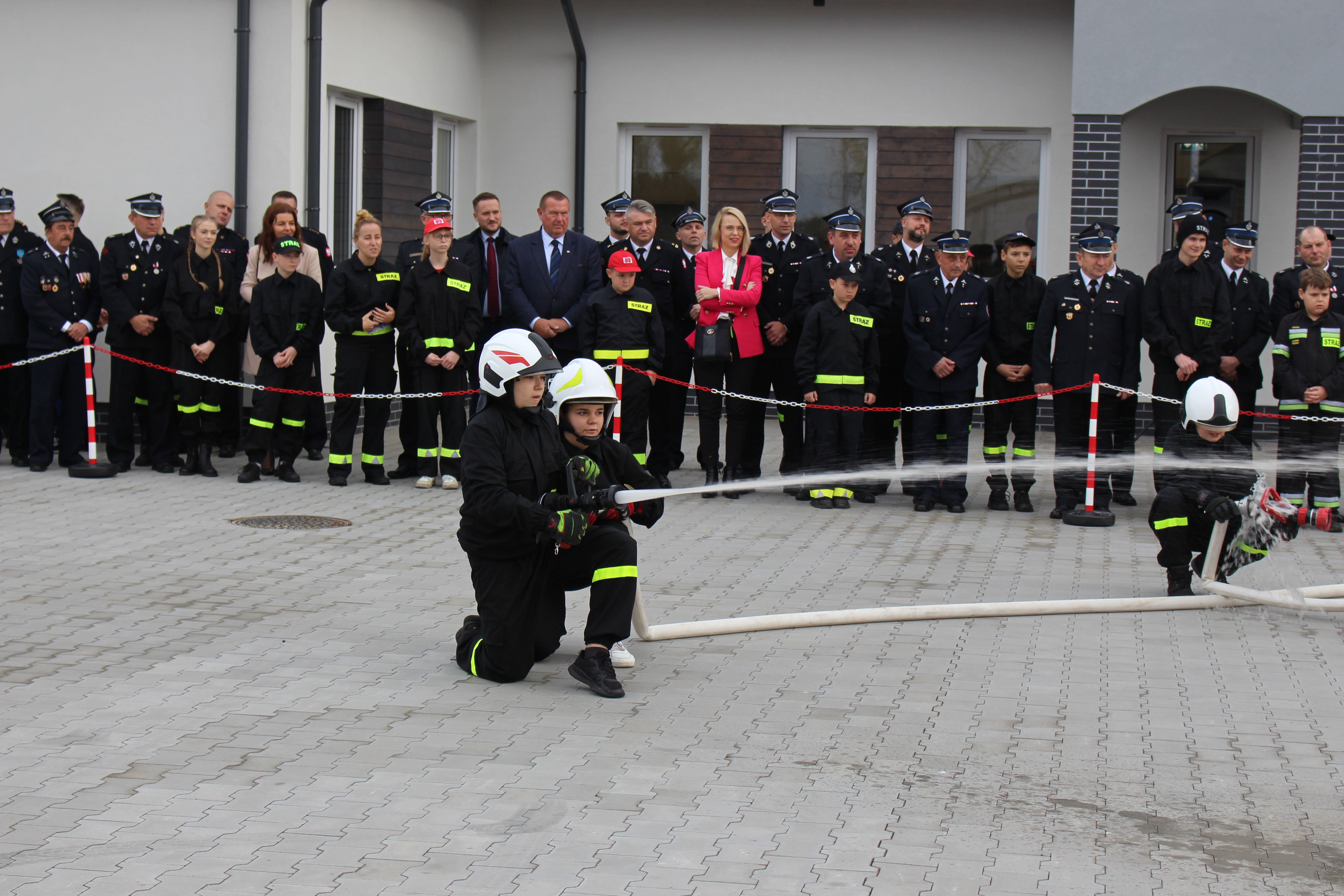 Po przywitaniu zebranych gości przez mł. bryg. Adama Grunwalda komendanta powiatowego Państwowej Straży Pożarnej w Chodzieży, wszyscy zebrani mogli zobaczyć pokaz działań gaśniczych przygotowany dzięki inicjatywie Młodzieżowej Drużyny Pożarniczej z OSP Budzyń.