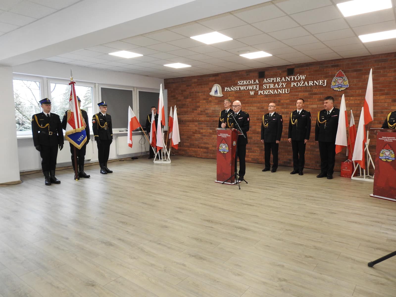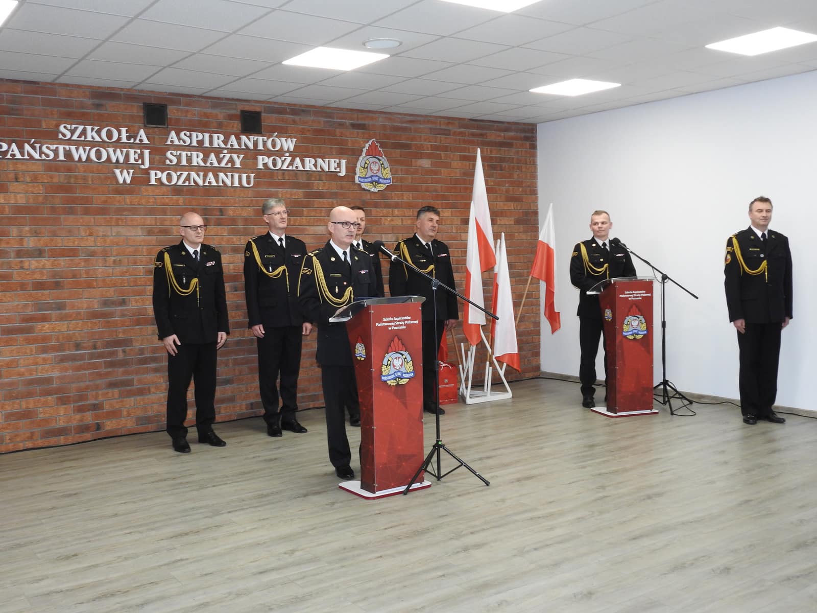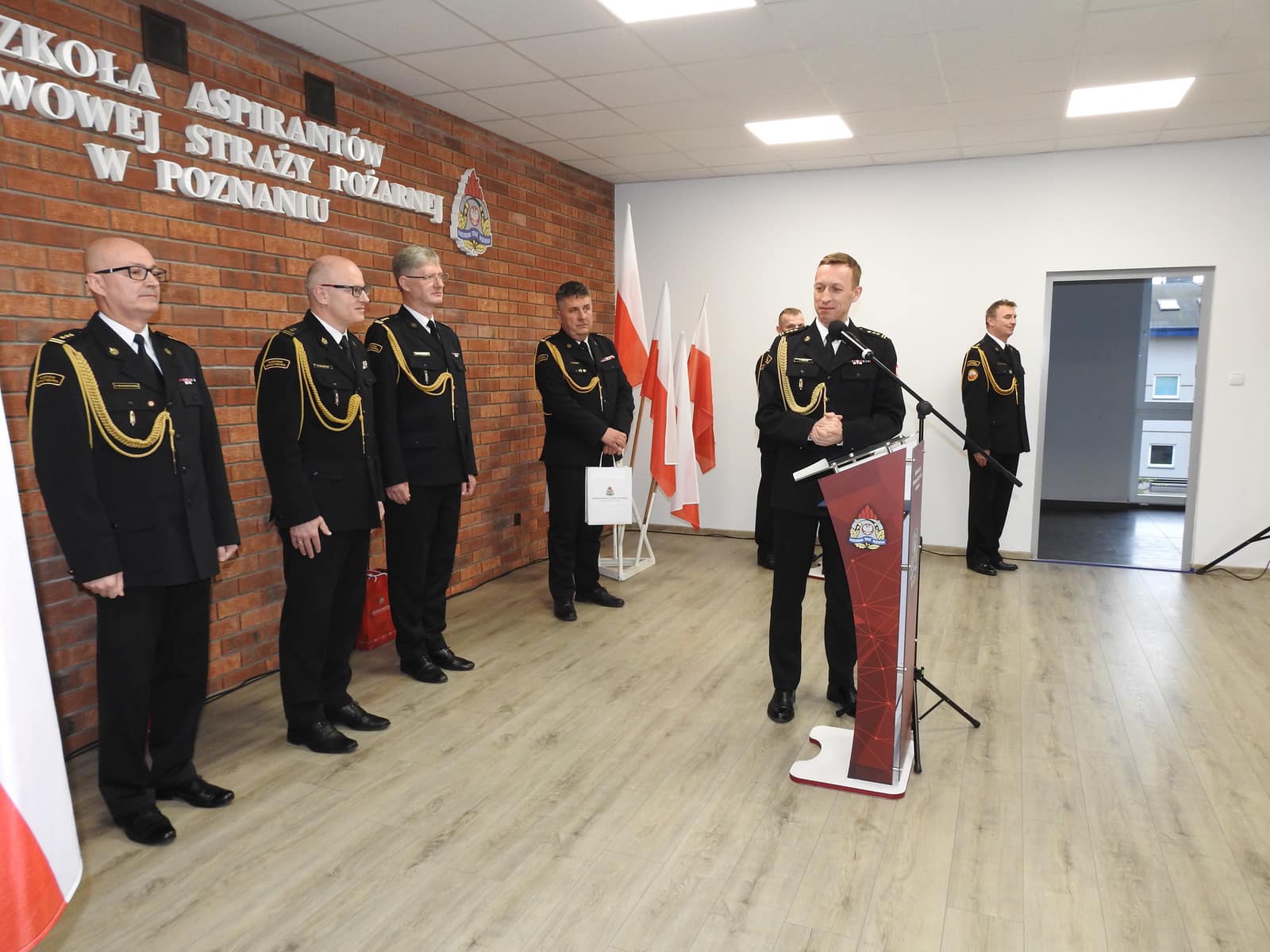 Uroczystość połączona była także z powierzeniem pełnienia obowiązków komendanta SA PSP w Poznaniu st. bryg. Andrzejowi Zajączkowskiemu. Wręczenia decyzji osobiście dokonał zastępca komendanta głównego Państwowej Straży Pożarnej, bryg. Paweł Frysztak. Obejmującemu obowiązki komendanta szkoły, zastępca komendanta głównego PSP życzył wytrwałości oraz skuteczności w realizacji stawianych celów. W uroczystości udział wzięli st. bryg. Tomasz Grelak, pełniący obowiązki wielkopolskiego komendanta wojewódzkiego PSP w Poznaniu, st. bryg. Jacek Michalak, komendant miejski PSP w Poznaniu, a także kadra, pracownicy cywilni oraz słuchacze Szkoły.