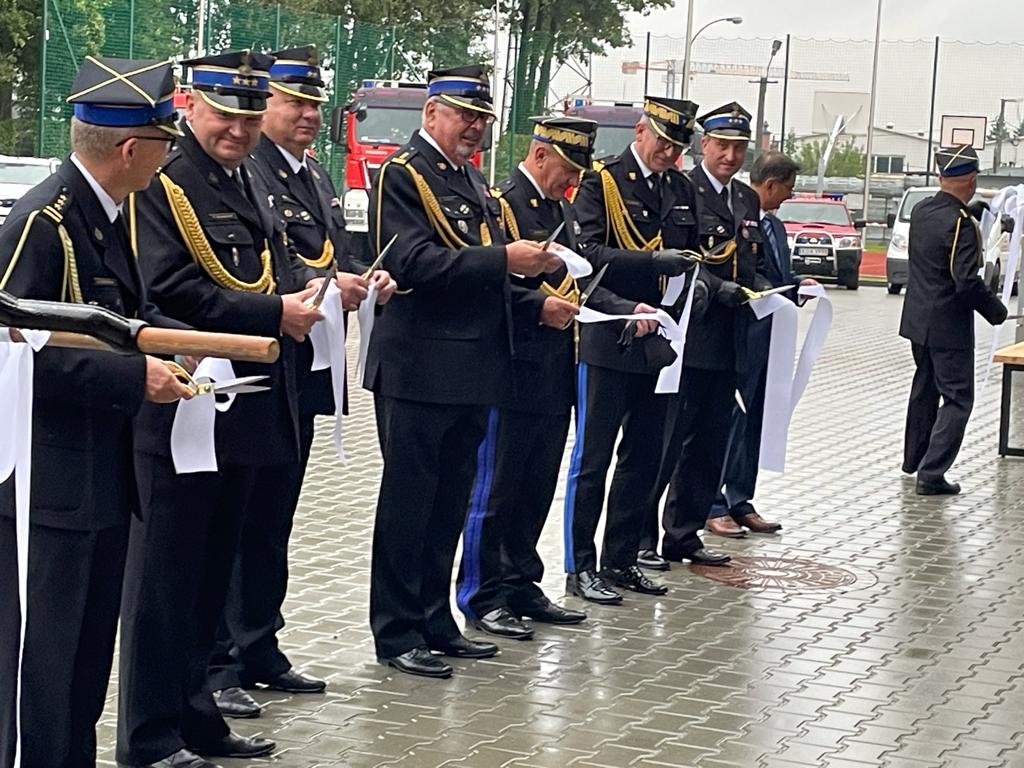 Uroczystość oddania nowej strażnicy była również doskonałą okazją do oficjalnego przekazania nowych samochodów ratowniczo – gaśniczych dla dąbrowskich strażaków. Pojazdy zostały zakupione w 2021 r. w ramach realizacji projektów „Usprawnienie systemu ratownictwa na drogach: oraz „Zwiększenie skuteczności prowadzenia długotrwałych akcji ratowniczych” w Programie Infrastruktura i Środowisko.