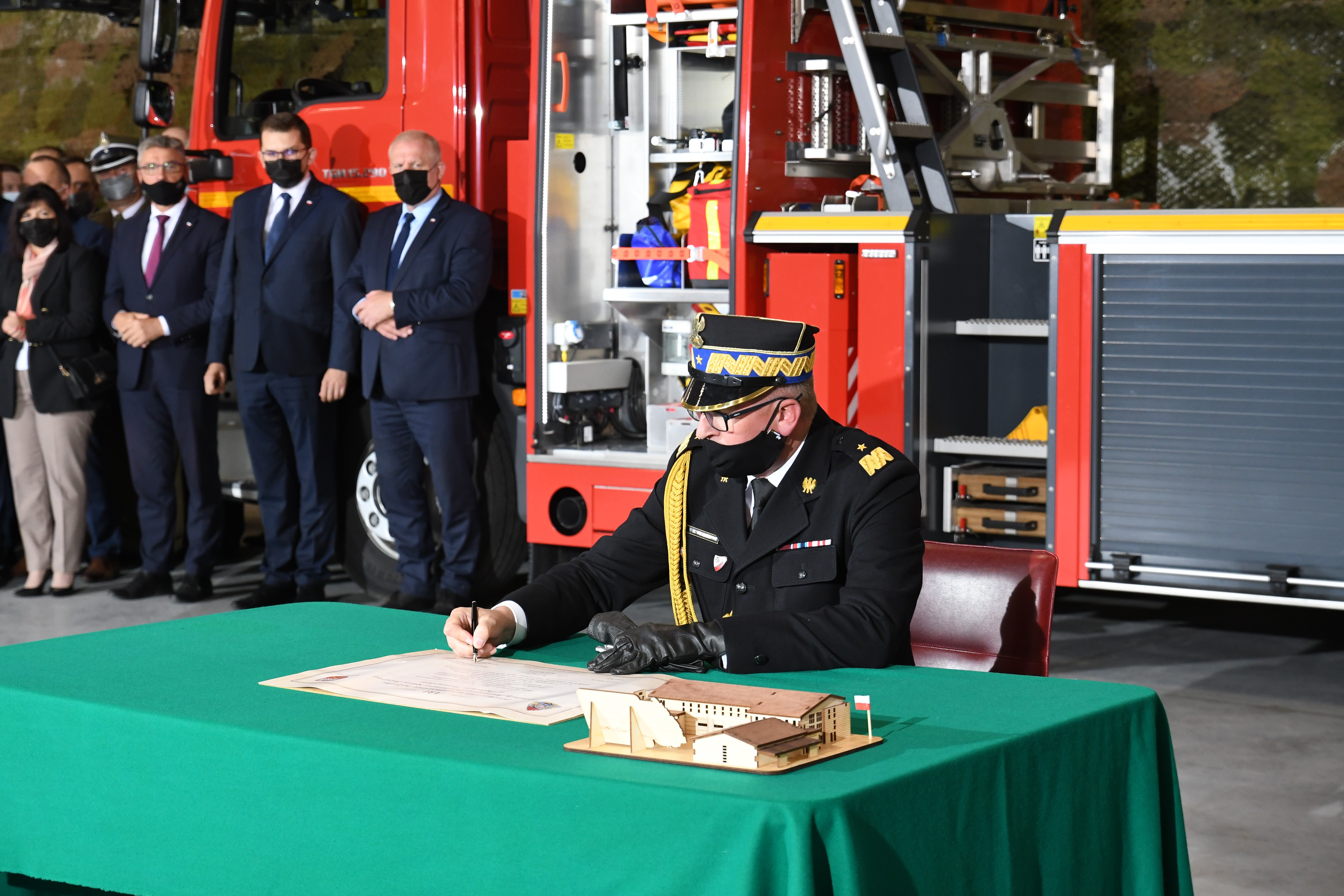 Akt przekazania strażnicy podpisali w trakcie uroczystości Premier RP, Zastępca Komendanta Głównego PSP oraz Wojewoda Małopolski, po czym akt wręczono Komendantowi Powiatowemu PSP w Dąbrowie Tarnowskiej st. kpt. Markowi Batorze. Przekazanie strażnicy zwieńczono symbolicznym przecięciem wstęgi do nowego obiektu.