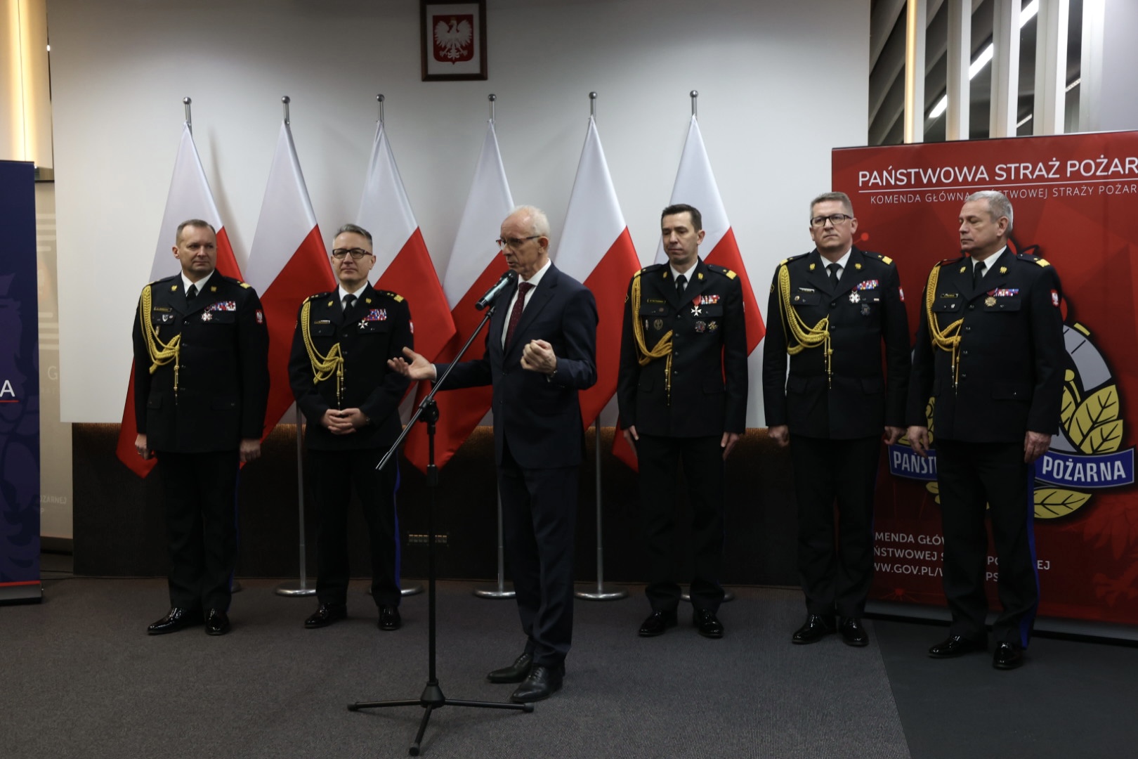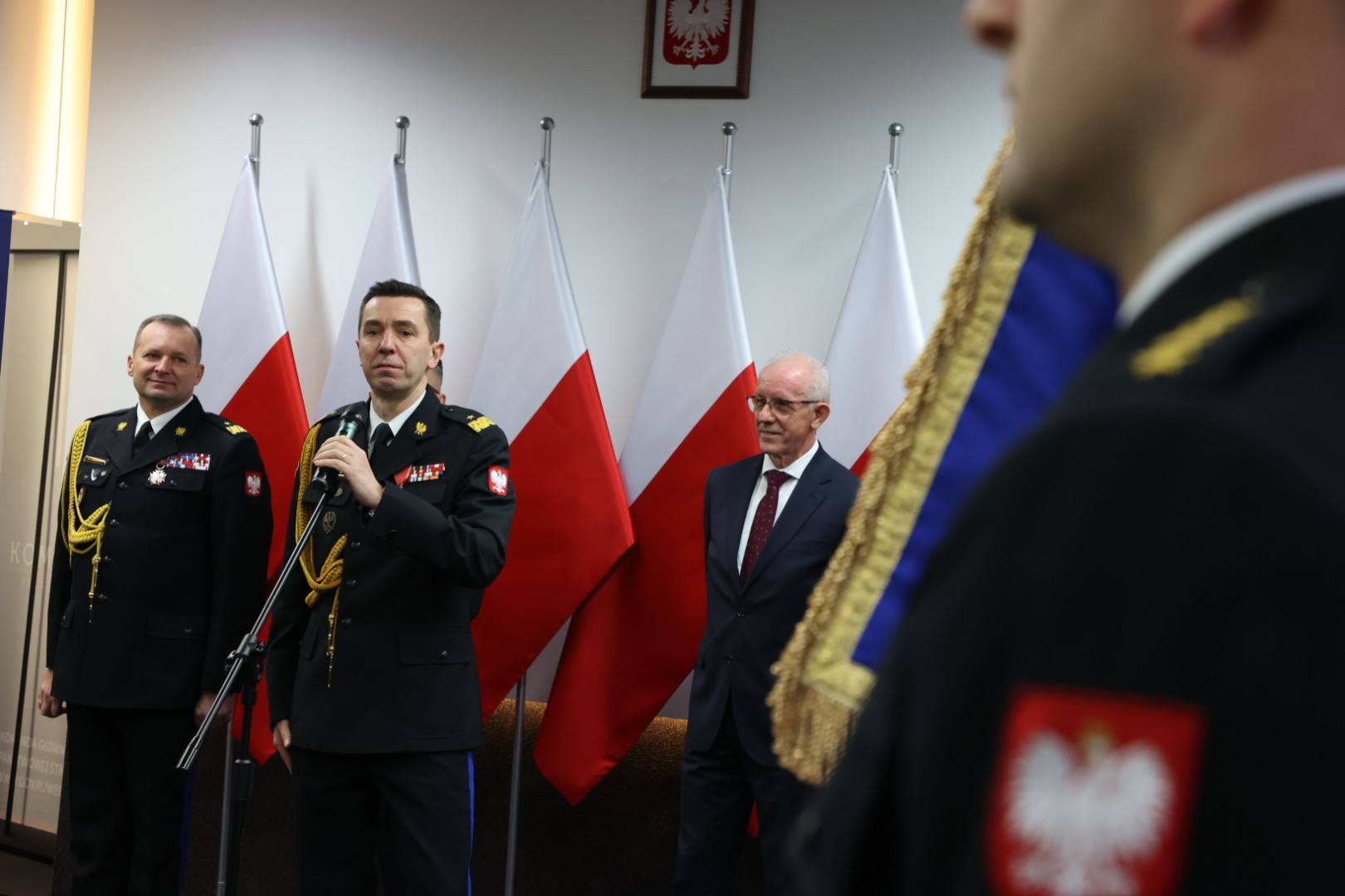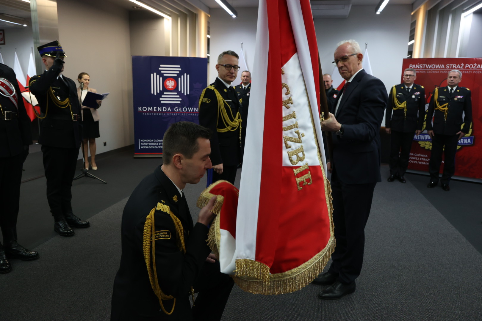Podczas uroczystej zbiórki odczytane zostały akty Prezesa Rady Ministrów Pana Donalda Tuska, o odwołaniu z dniem 9 stycznia 2024 r. ze stanowiska Komendanta Głównego PSP gen. brygadiera Andrzeja Bartkowiaka i powołaniu z dniem 10 stycznia 2024 r. nadbryg. Mariusza Feltynowskiego na stanowisko Komendanta Głównego PSP.