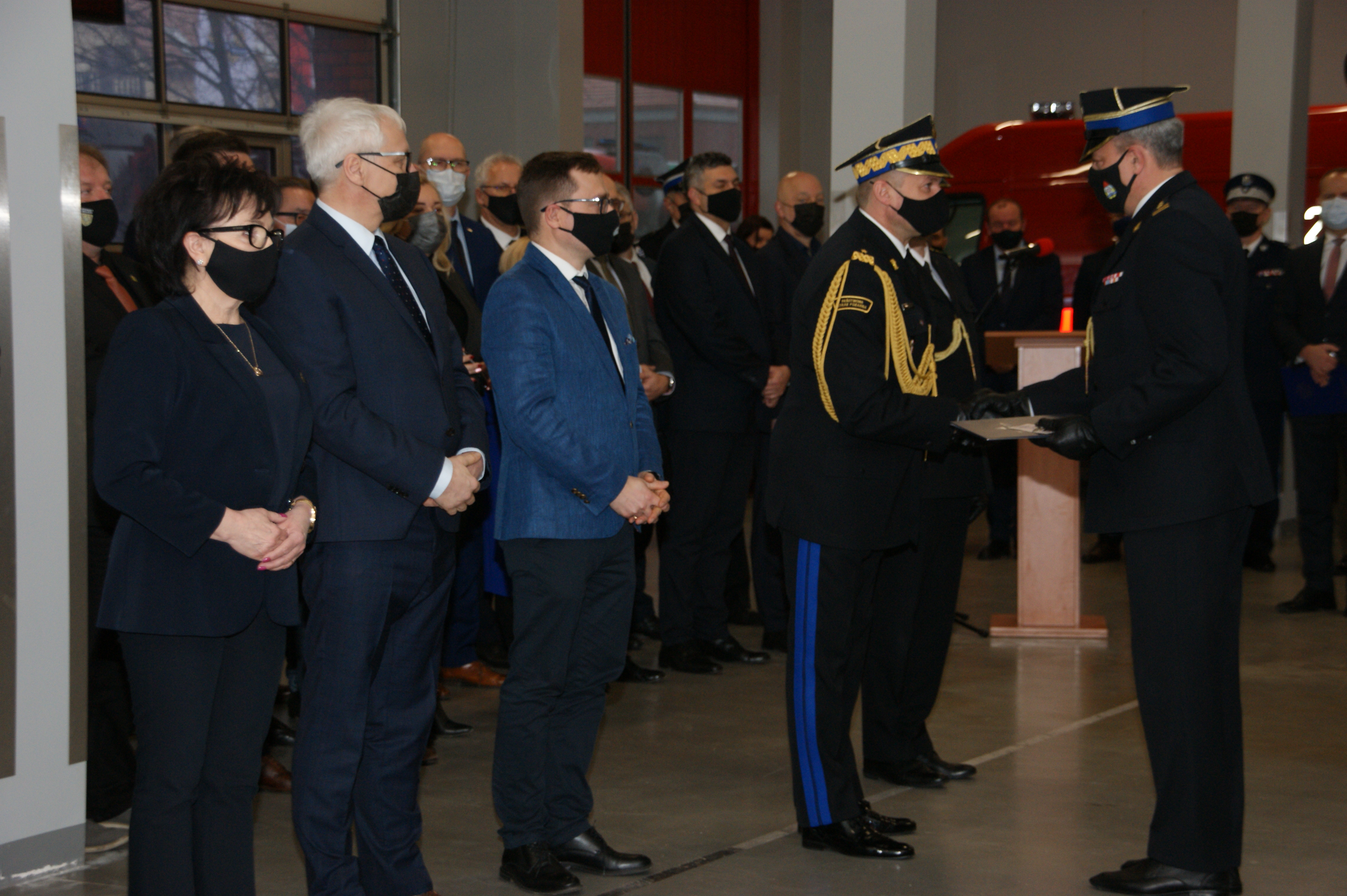 Dolnośląski komendant wojewódzki PSP st. bryg. Marek Kamiński wręczył zaproszonym gościom okolicznościowe grawertony w podziękowaniu za udzielone wsparcie na rzecz wzmacniania bezpieczeństwa powszechnego na obszarze województwa, jak również w podziękowaniu za asygnowanie środków na zakup samochodów pożarniczych.