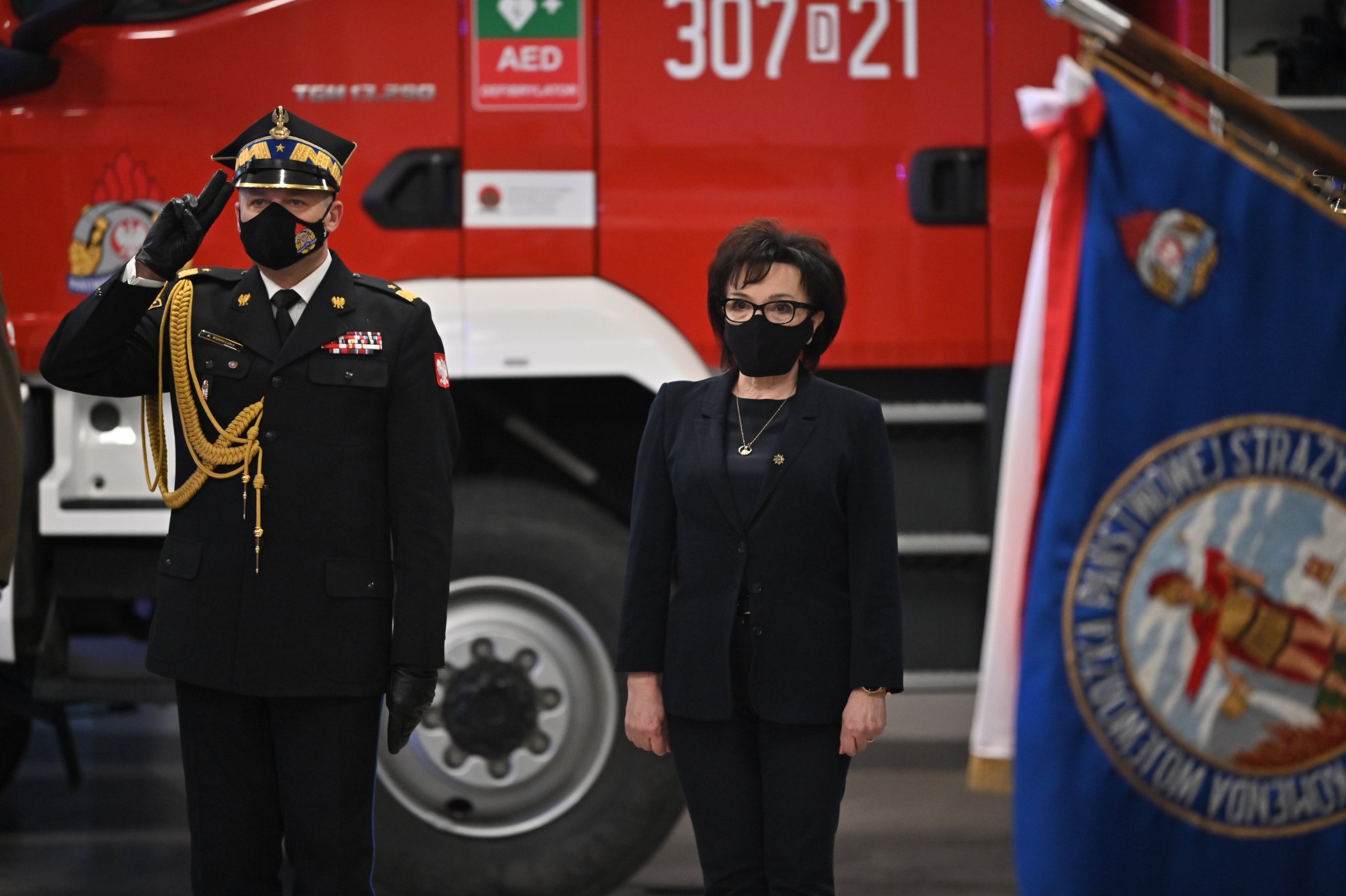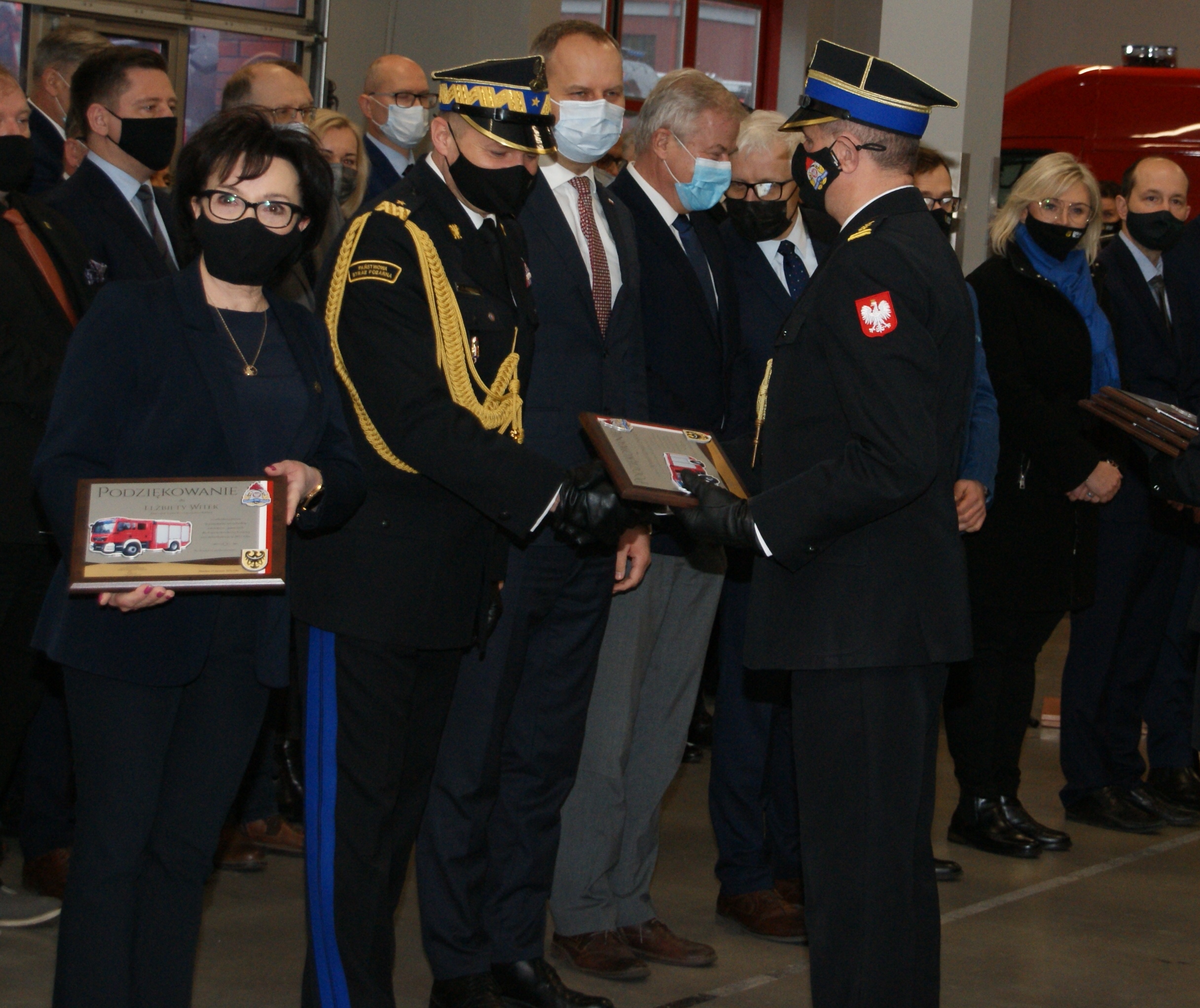 W swoim przemówieniu marszałek Sejmu Elżbieta Witek pogratulowała strażakom nowych samochodów, dziękując wszystkim, którzy wsparli budżet państwa w ich zakupie. Jednocześnie, słowami "Straż to jeden z filarów bezpieczeństwa Polski i Polaków", podkreśliła ważną rolę naszej formacji.