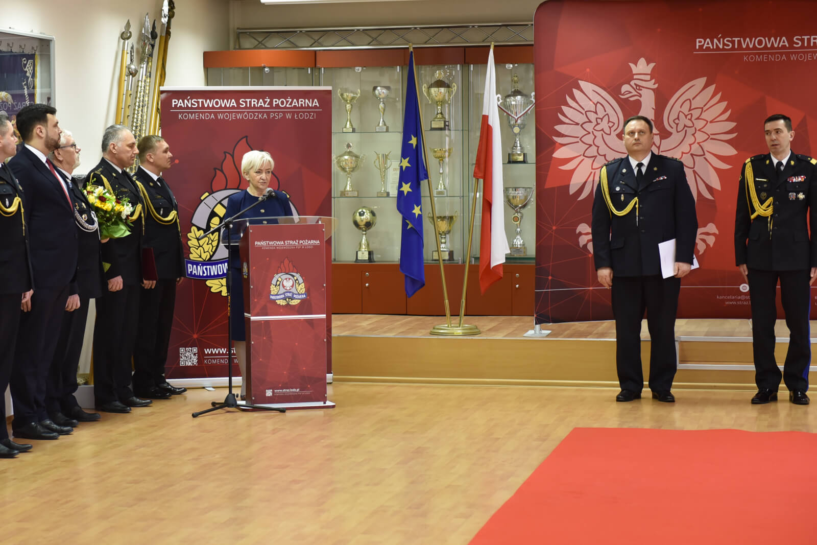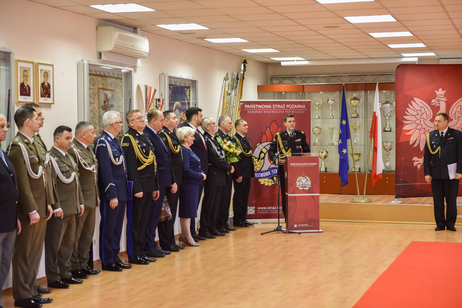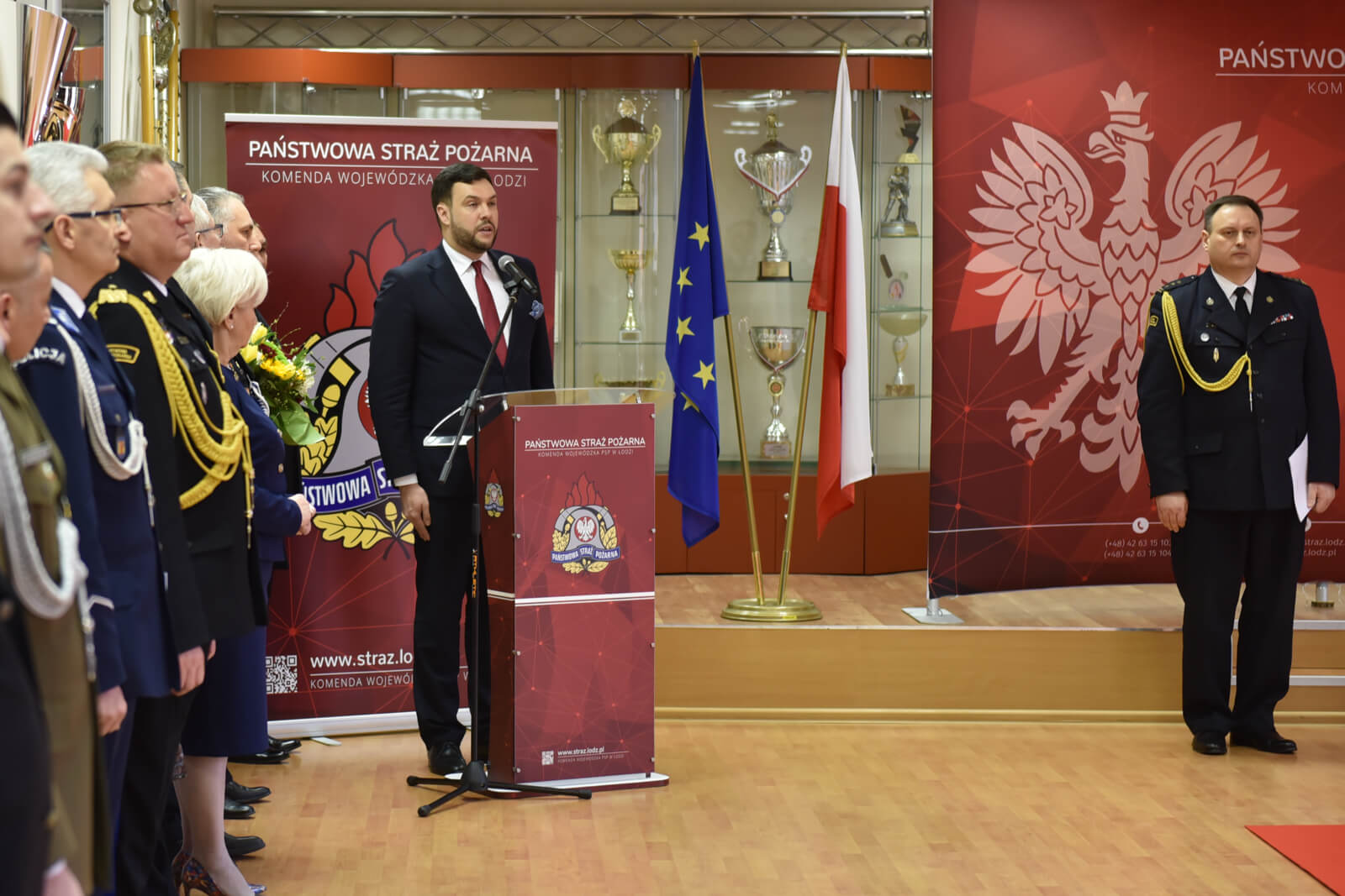 Podczas uroczystości, w obecności wojewody łódzkiej Doroty Ryl, komendantów miejskich i powiatowych PSP, kadry komendy wojewódzkiej PSP oraz zaproszonych gości, st. bryg. Piotr Rudecki powitał się ze sztandarem komendy oraz złożył komendantowi głównemu PSP meldunek o przyjęciu obowiązków łódzkiego komendanta wojewódzkiego PSP.