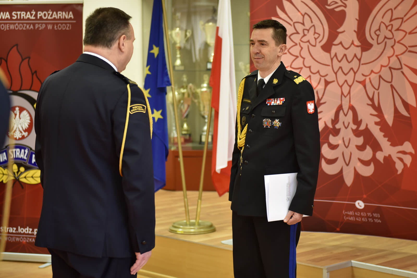 Po zakończonej ceremonii powołania, komendant główny PSP w przemówieniu okolicznościowym pogratulował nowemu szefowi łódzkich strażaków objęcia stanowiska, życząc jednocześnie dobrej współpracy z terytorialnymi organami i instytucjami, a przede wszystkim podległą kadrą. Podkreślając istotę współpracy, zaznaczył: