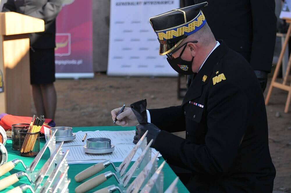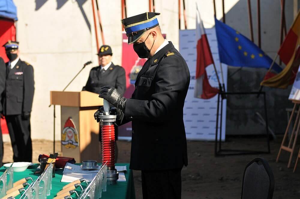 Uroczystość wmurowania aktu erekcyjnego pod budowę nowej jednostki ratowniczo-gaśniczej nr 4 w Łodzi.
