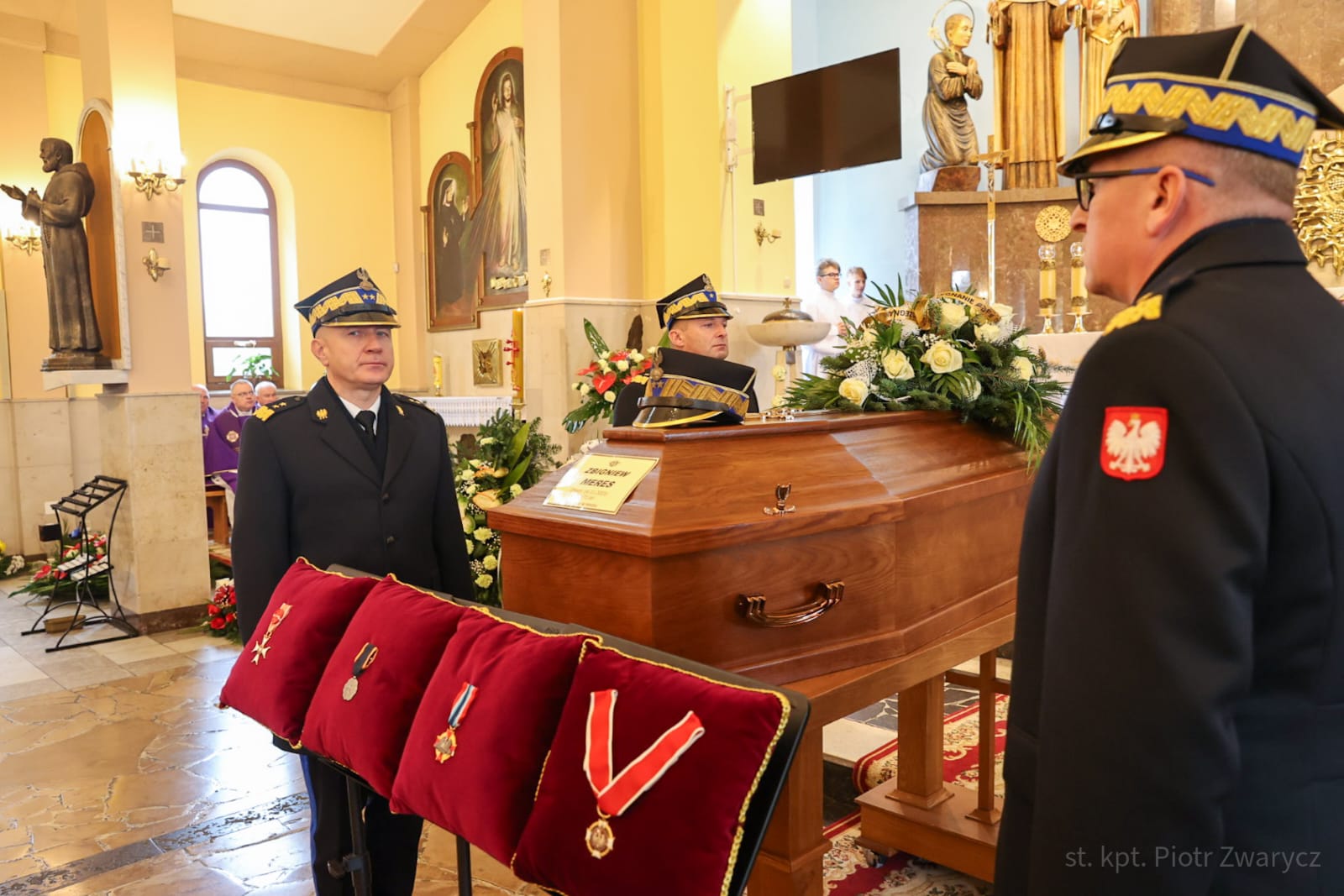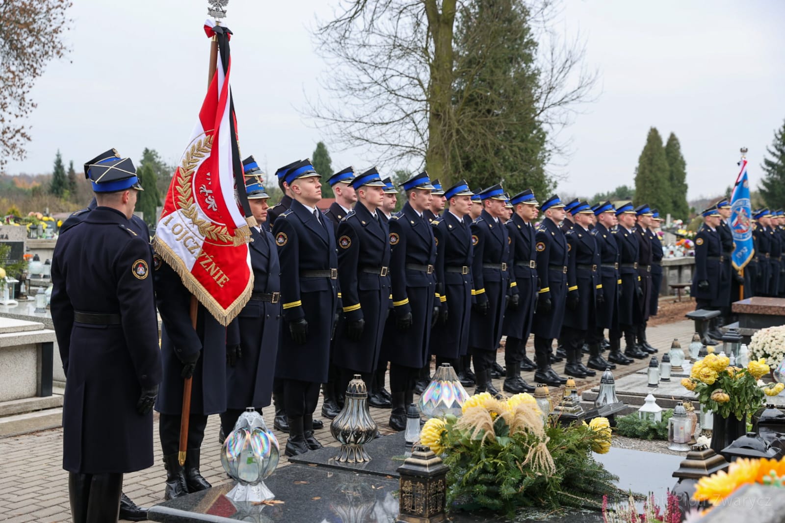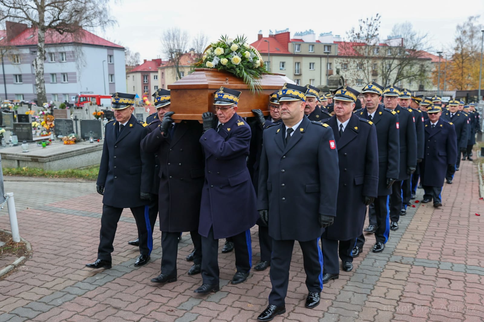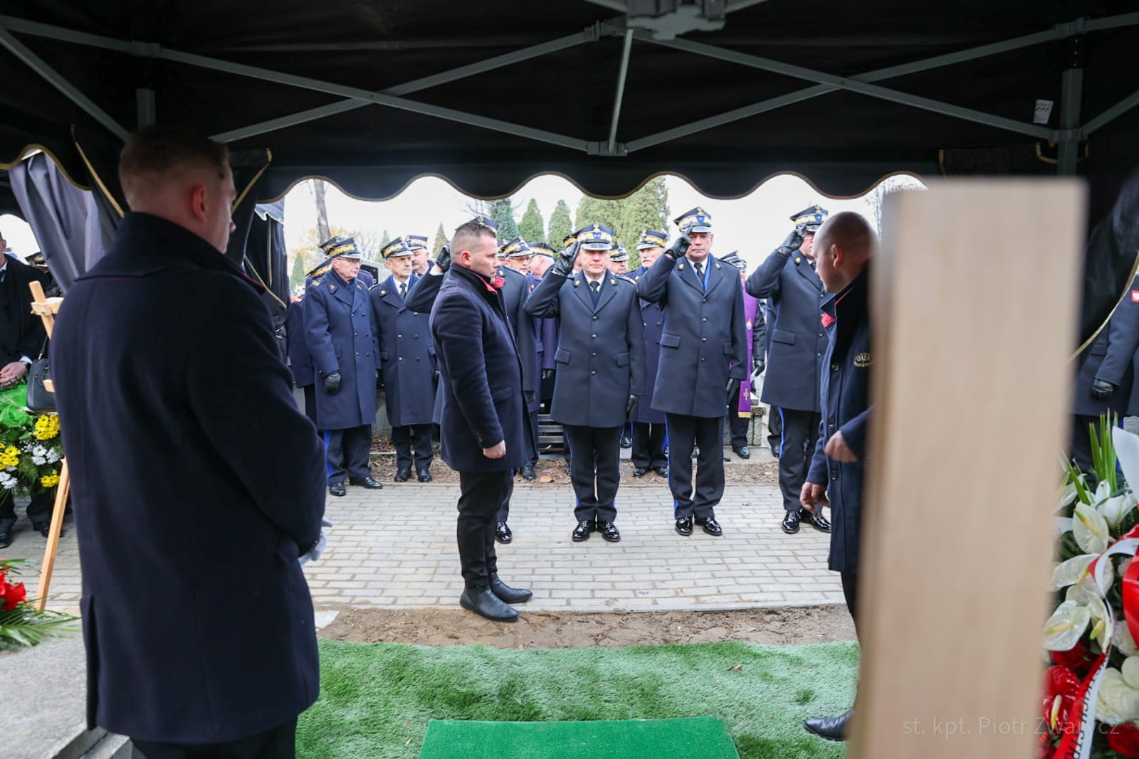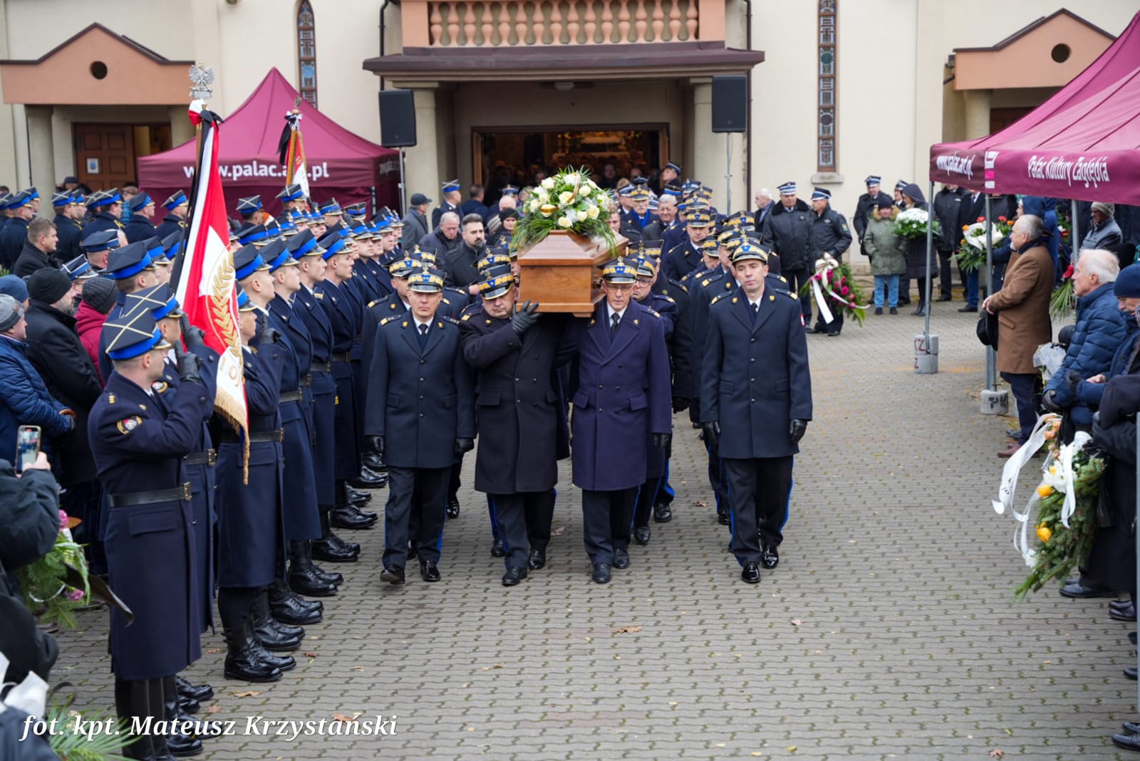 W uroczystościach pogrzebowych uczestniczyły: kompania reprezentacyjna Państwowej Straży Pożarnej, która pełniła funkcję kompanii honorowej, kompania reprezentacyjna Komendy Wojewódzkiej PSP w Katowicach, poczty sztandarowe komend wojewódzkich PSP, szkół pożarniczych, poczty Ochotniczych Straży Pożarnych, orkiestra reprezentacyjna Miasta i Gminy Siewierz pod batutą Grzegorza Zawodniaka.