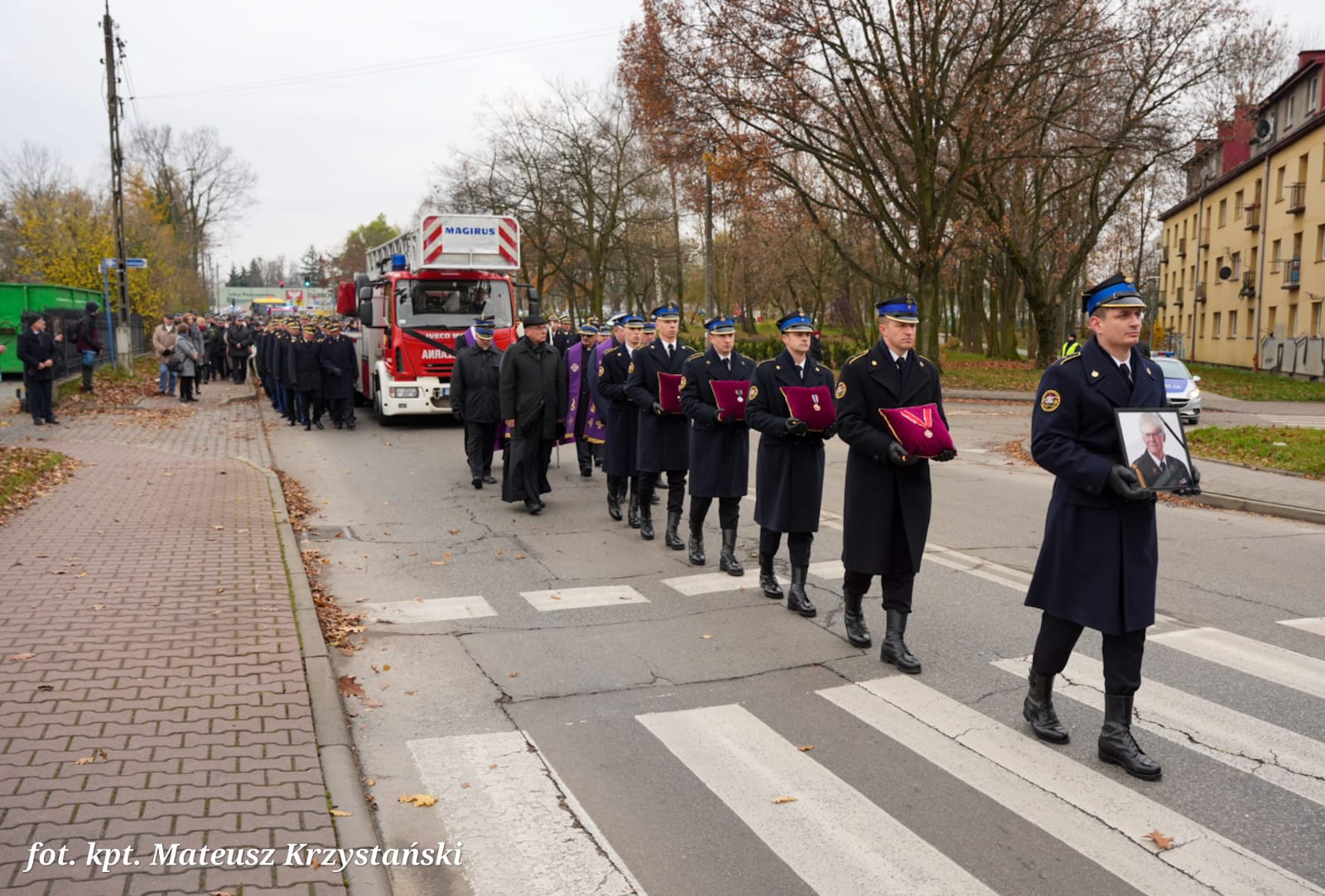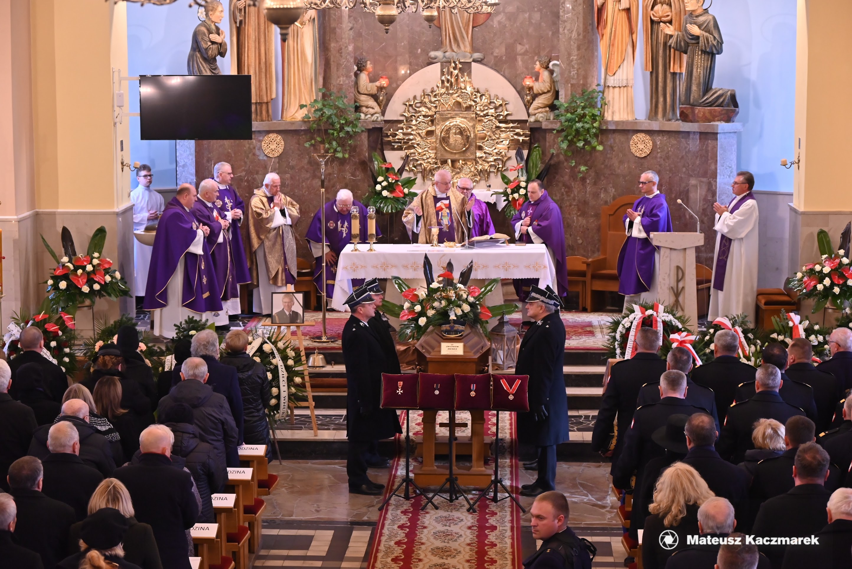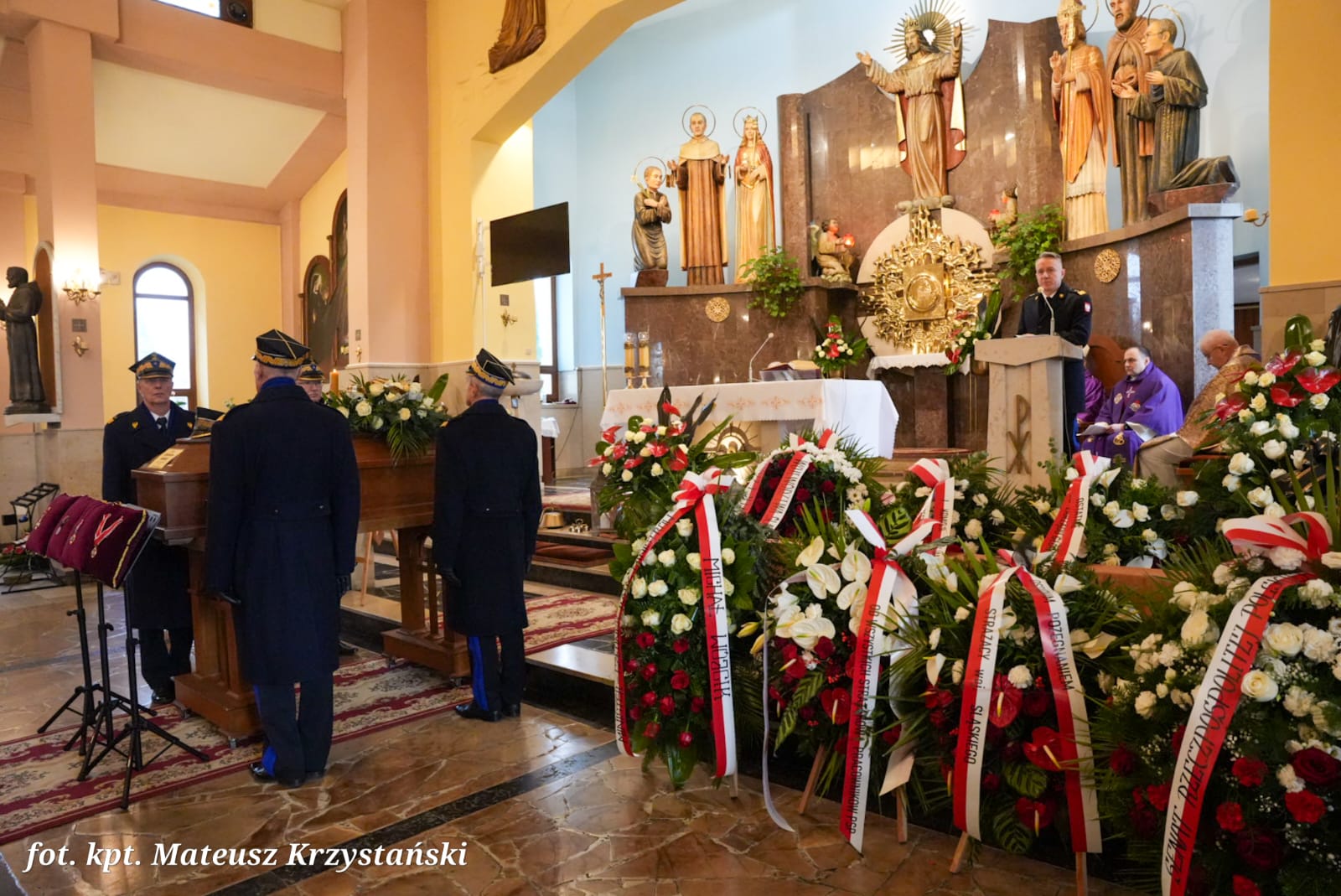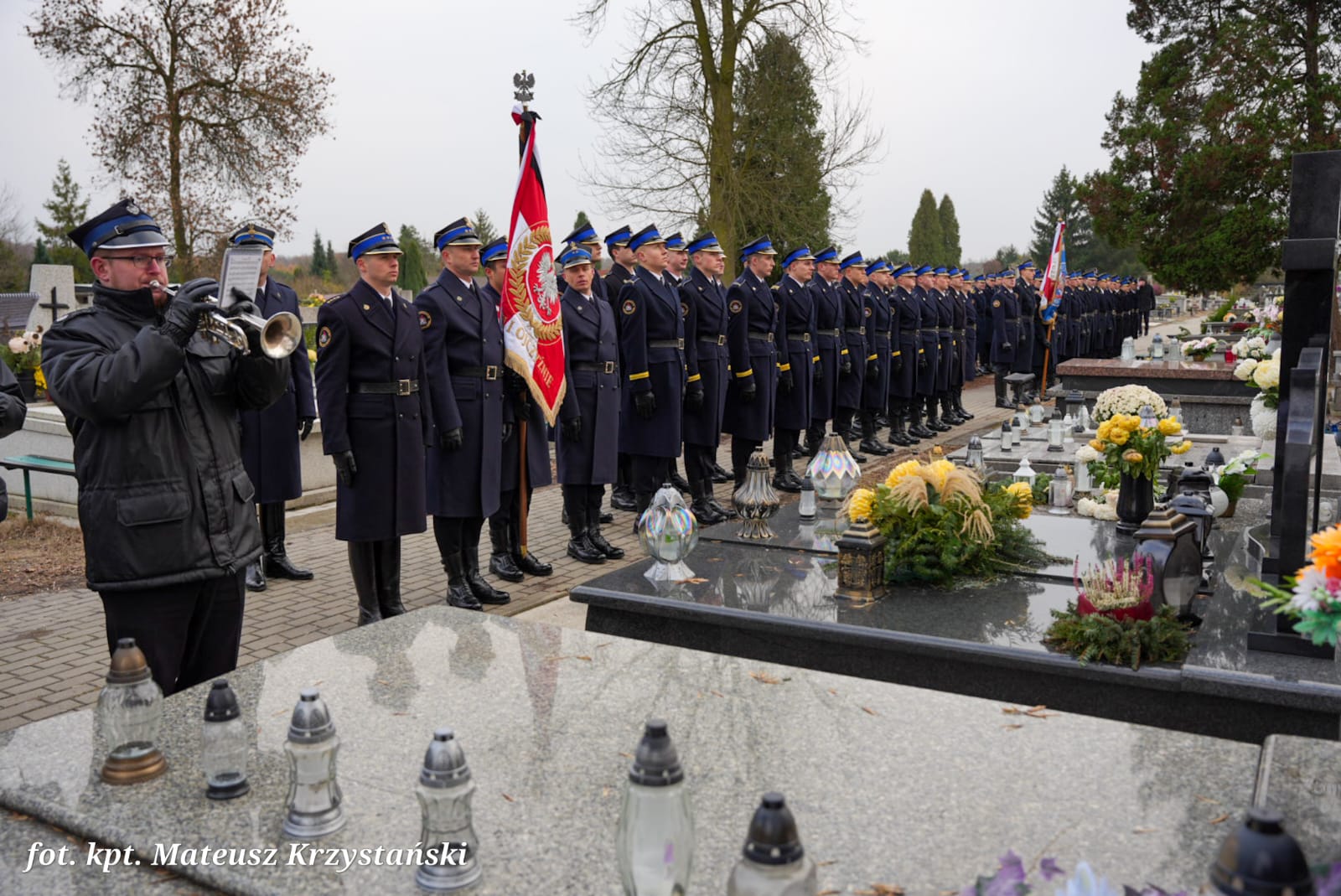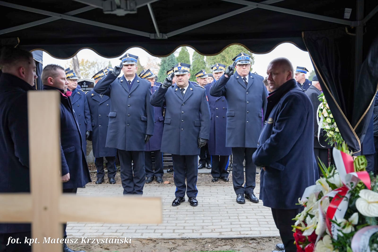 W uroczystościach pogrzebowych uczestniczyły: kompania reprezentacyjna Państwowej Straży Pożarnej, która pełniła funkcję kompanii honorowej, kompania reprezentacyjna Komendy Wojewódzkiej PSP w Katowicach, poczty sztandarowe komend wojewódzkich PSP, szkół pożarniczych, poczty Ochotniczych Straży Pożarnych, orkiestra reprezentacyjna Miasta i Gminy Siewierz pod batutą Grzegorza Zawodniaka.