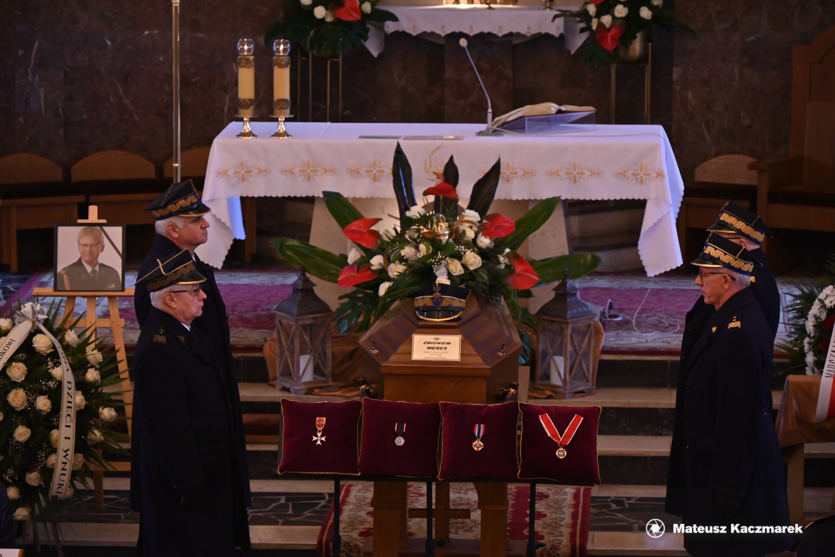 Oddając hołd zmarłemu, przy trumnie wystawione zostały czteroosobowe posterunki honorowe w składzie: