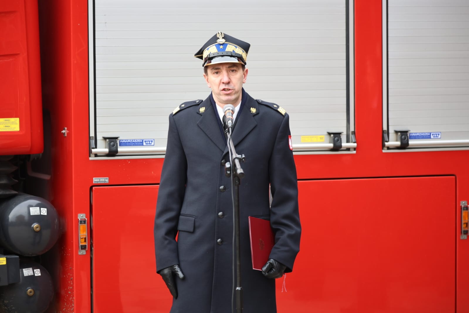 „Ten samochód wręczamy w ręce tych, którzy będą potrafili z niego skorzystać…W tej trudnej służbie strażaka najważniejsi są ludzie, to Wy strażacy robicie tę fantastyczną robotę. Strażacy Państwowej Straży Pożarnej i wspierający ich strażacy z Ochotniczej Straży Pożarnej, to jest kręgosłup i filar naszego bezpieczeństwa. To Wy wyjeżdżacie do trudnych zdarzeń, tam, gdzie jesteście potrzebni”.