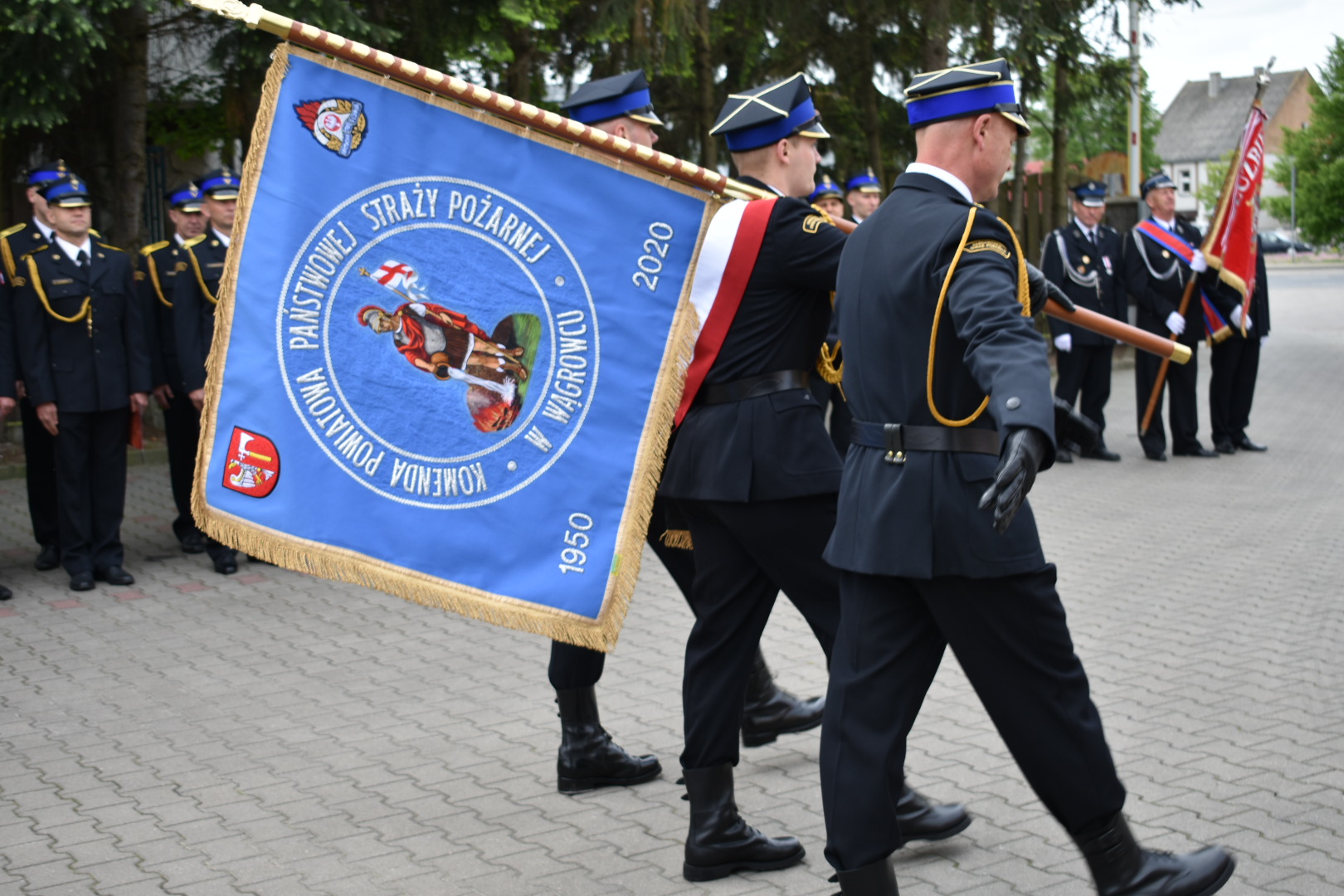 Meldunek o gotowości do rozpoczęcia uroczystości komendantowi głównemu PSP złożył mł. kpt. Waldemar Szymkowiak, po czym nastąpiło podniesienie flagi państwowej na maszt i odegranie hymnu państwowego. Następnie st. bryg. Mariusz Dębski komendant powiatowy PSP w Wągrowcu oficjalnie przywitał wszystkich zgromadzonych gości.