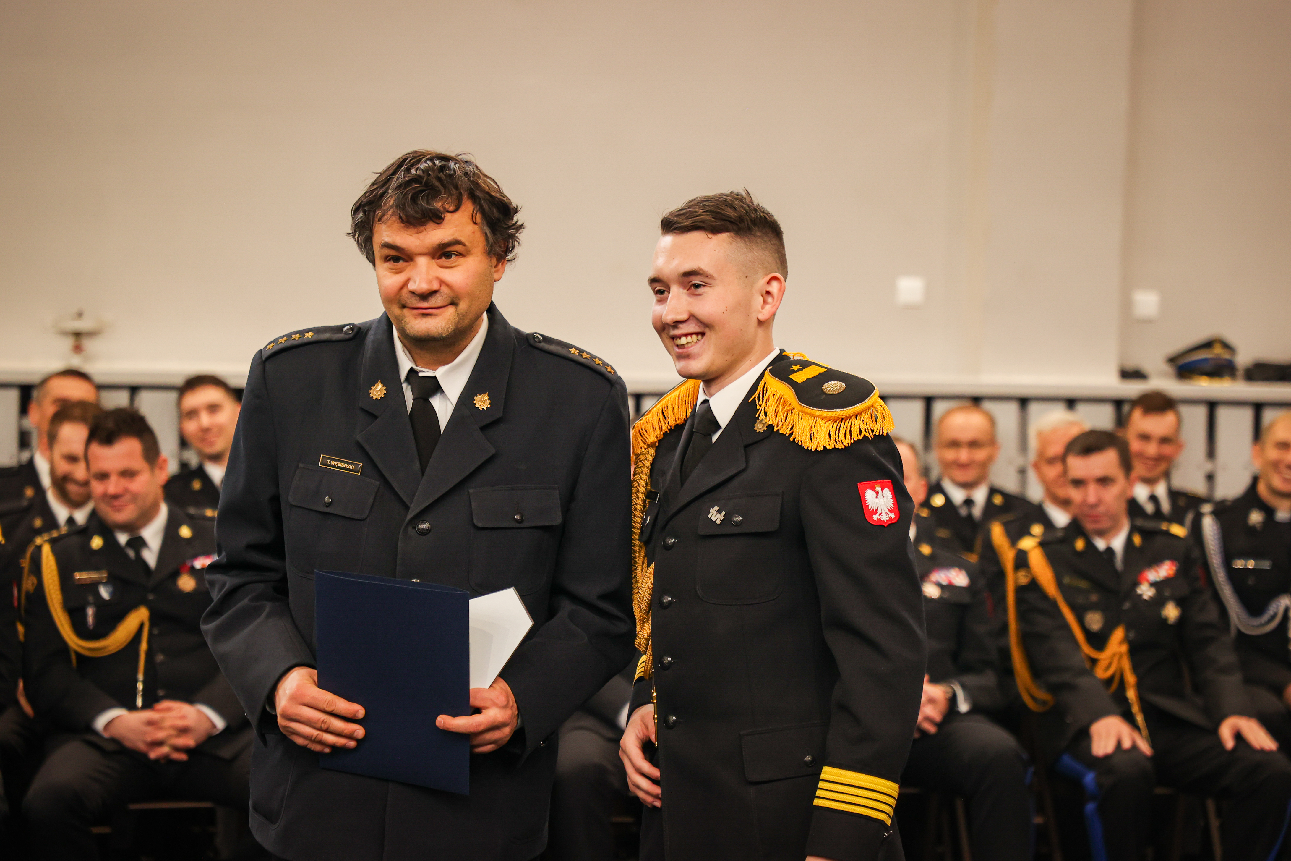 Jesteście w bardzo dobrej uczelni, która będzie pięła się do góry, bo ochrona przeciwpożarowa zdobyła, myślę, że już najwyższy poziom ważności w systemie bezpieczeństwa wewnętrznego i ochrony ludności. Bądźcie dumni, pełni satysfakcji z tego co robicie i z tego w czym się kształcicie. Potrzebujemy inżynierów pożarnictwa. Dlatego gratuluję dziennego kierunku, który wybraliście, bo to jest najwłaściwszy najlepszy kierunek, który da wam bardzo szybko kwalifikacje które na czekamy,”