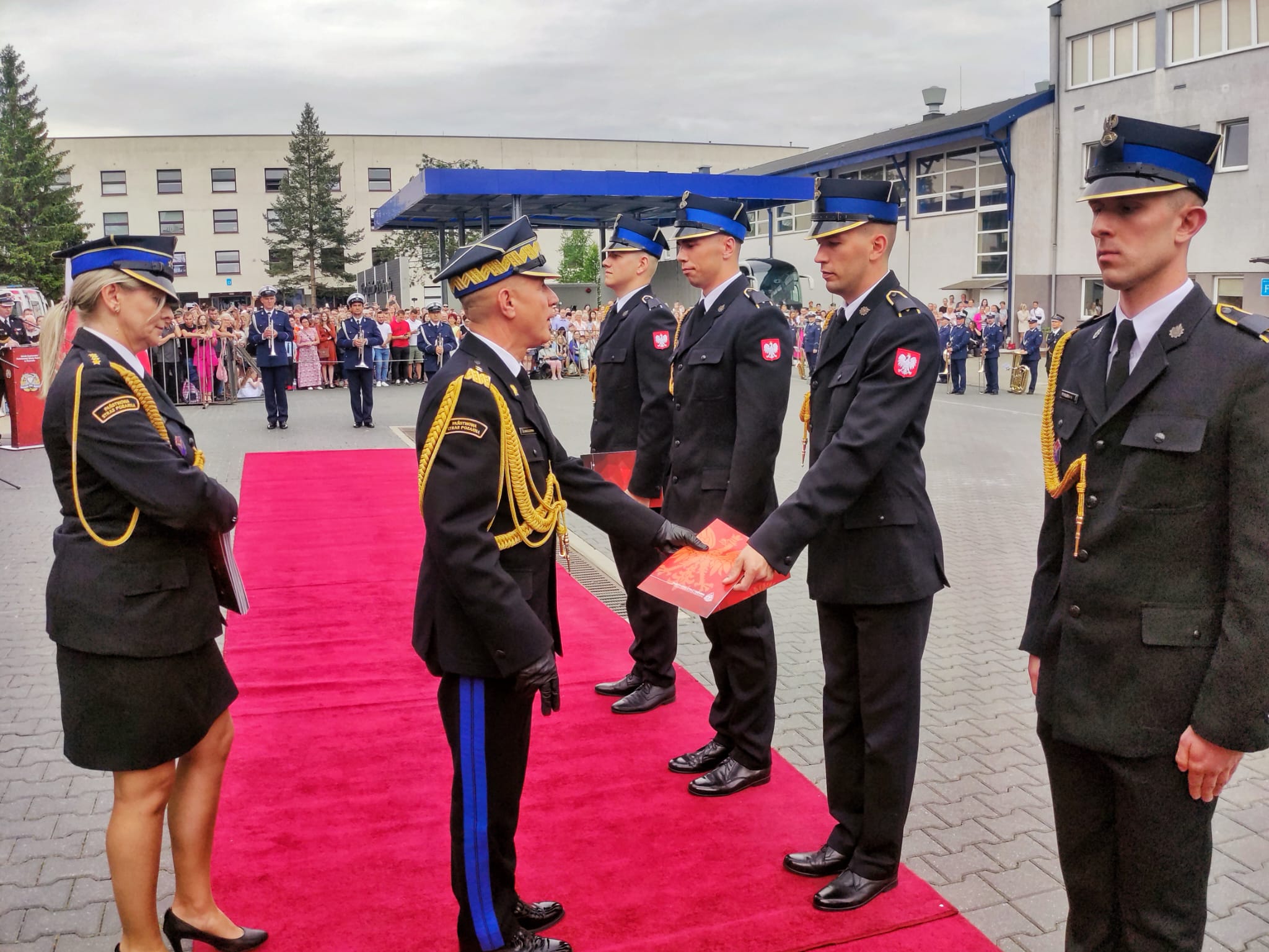 Komendant Główny PSP gen. brygadier Andrzej Bartkowiak w swoim wystąpieniu zwrócił się w sposób szczególny do zebranych rodzin na uroczystości: „ Wychowaliście wspaniałych ludzi, za to Wam serdecznie dziękuję. Bohaterów! Zwracam się do wszystkich bliskich: Szanowni Państwo możecie nosić wysoko i dumnie głowę! Tak! macie w rodzinie strażaka, to jest wielkie zobowiązanie, to jest wielki zaszczyt. Państwowa Straż Pożarna w ostatnich latach dokonała spektakularnego rozwoju. Jesteśmy dzisiaj liderami w Europie, na świecie. To jest zobowiązanie wobec Was, młodzi ludzie, dlatego że Wy, będziecie kształtować przyszłość tej formacji”.