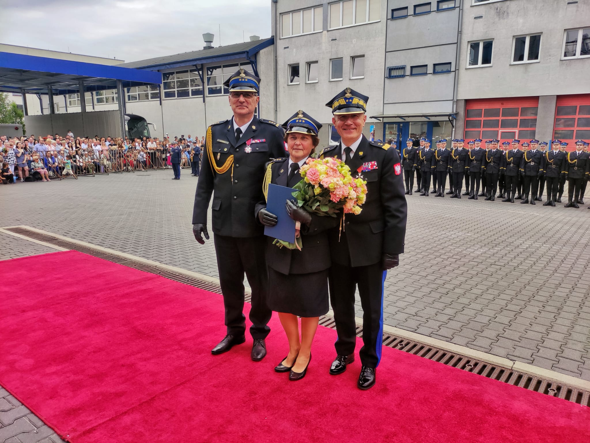 Za szczególne osiągnięcia i wkład w służbę komendant szkoły wyróżnił funkcjonariuszkę st. bryg. Urszulę Fietz-Strychalską, która w tym roku obchodzi jubileusz 50 lecia służby. Wyróżnienie wręczył gen. brygadier Andrzej Bartkowiak oraz st. bryg. Maciej Zdęga.