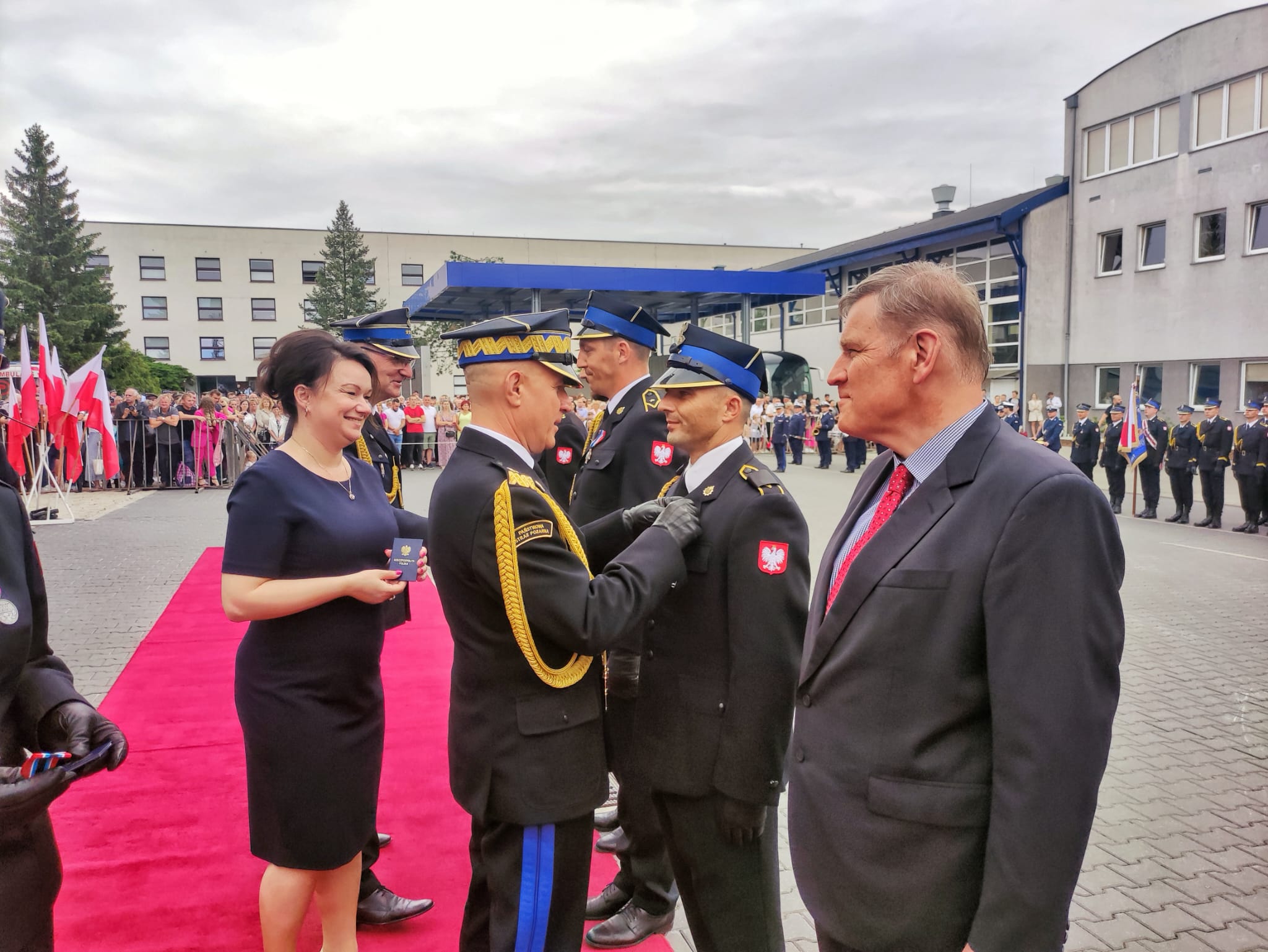 Komendant główny PSP wraz z nadbryg. Dariuszem Matczakiem wielkopolskim komendantem wojewódzkim PSP oraz nadinsp. Piotrem Mąka komendantem wojewódzkim Policji w Poznaniu zostali odznaczeni za wybitne zasługi na rzecz rozwoju i funkcjonowania SA PSP w Poznaniu.