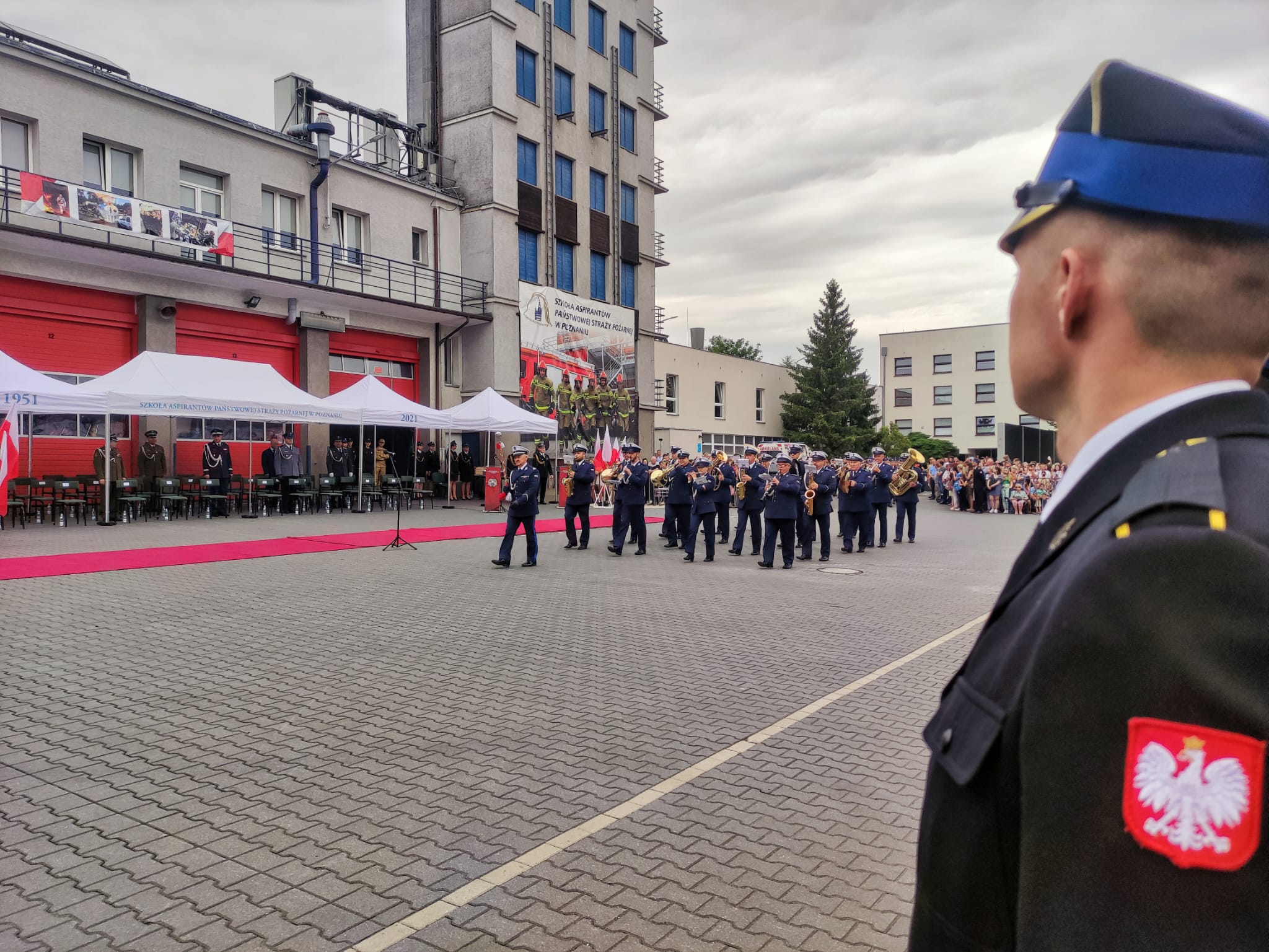 Uroczysty apel z okazji promocji absolwentów Szkoły Aspirantów PSP w Poznaniu z udziałem gen. brygadiera Andrzeja Bartkowiaka Komendanta Głównego PSP