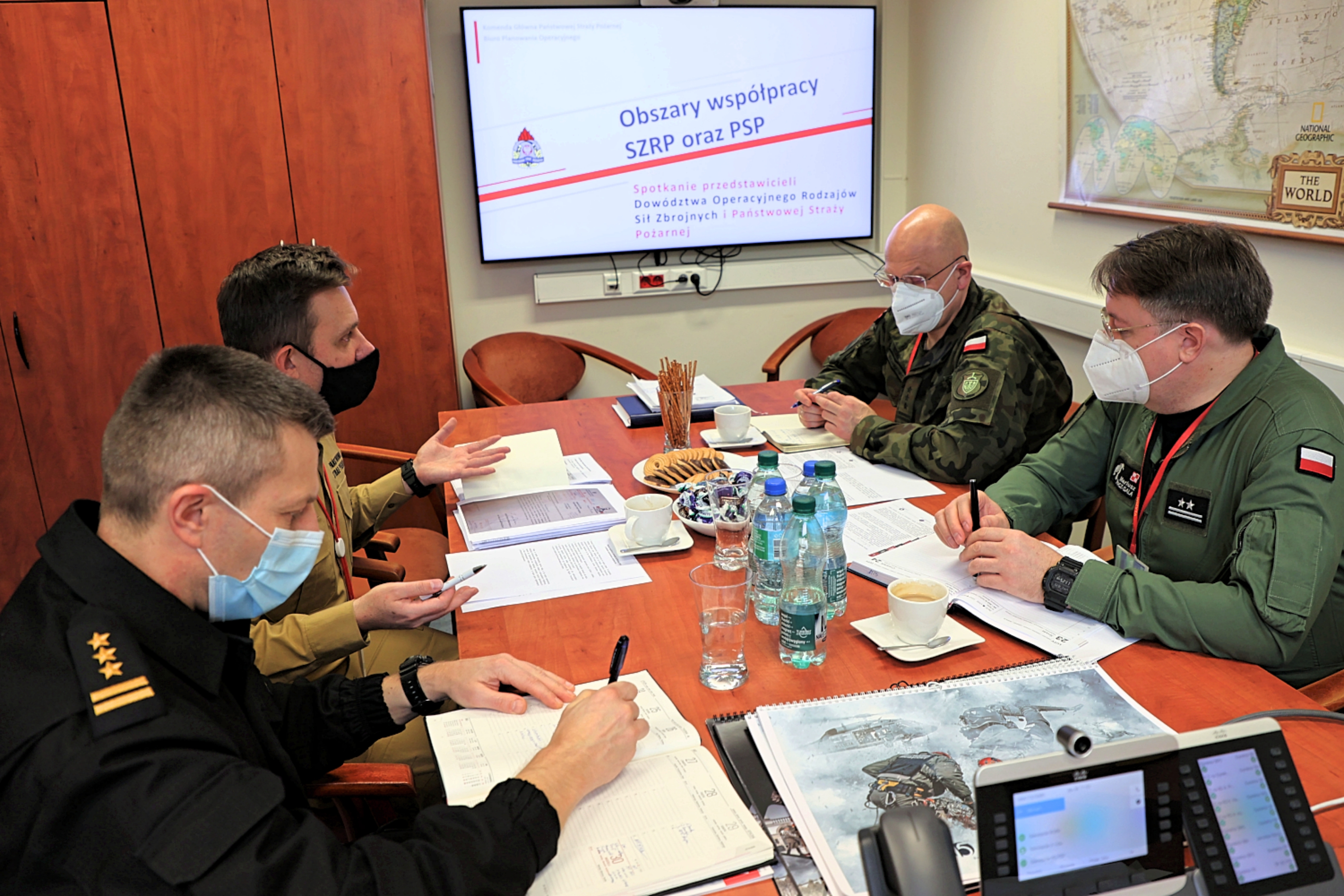 26 stycznia 2022 r. w siedzibie Komendy Głównej PSP odbyło się kolejne spotkanie przedstawicieli Biura Planowania Operacyjnego KG PSP (BPO KG PSP) z Dowództwem Operacyjnym Rodzajów Sił Zbrojnych (DO RSZ). Celem zasadniczym rozmów było uzgodnienie obszarów współpracy pomiędzy Stronami, ze szczególnym uwzględnieniem statków powietrznych w tym zakresie.