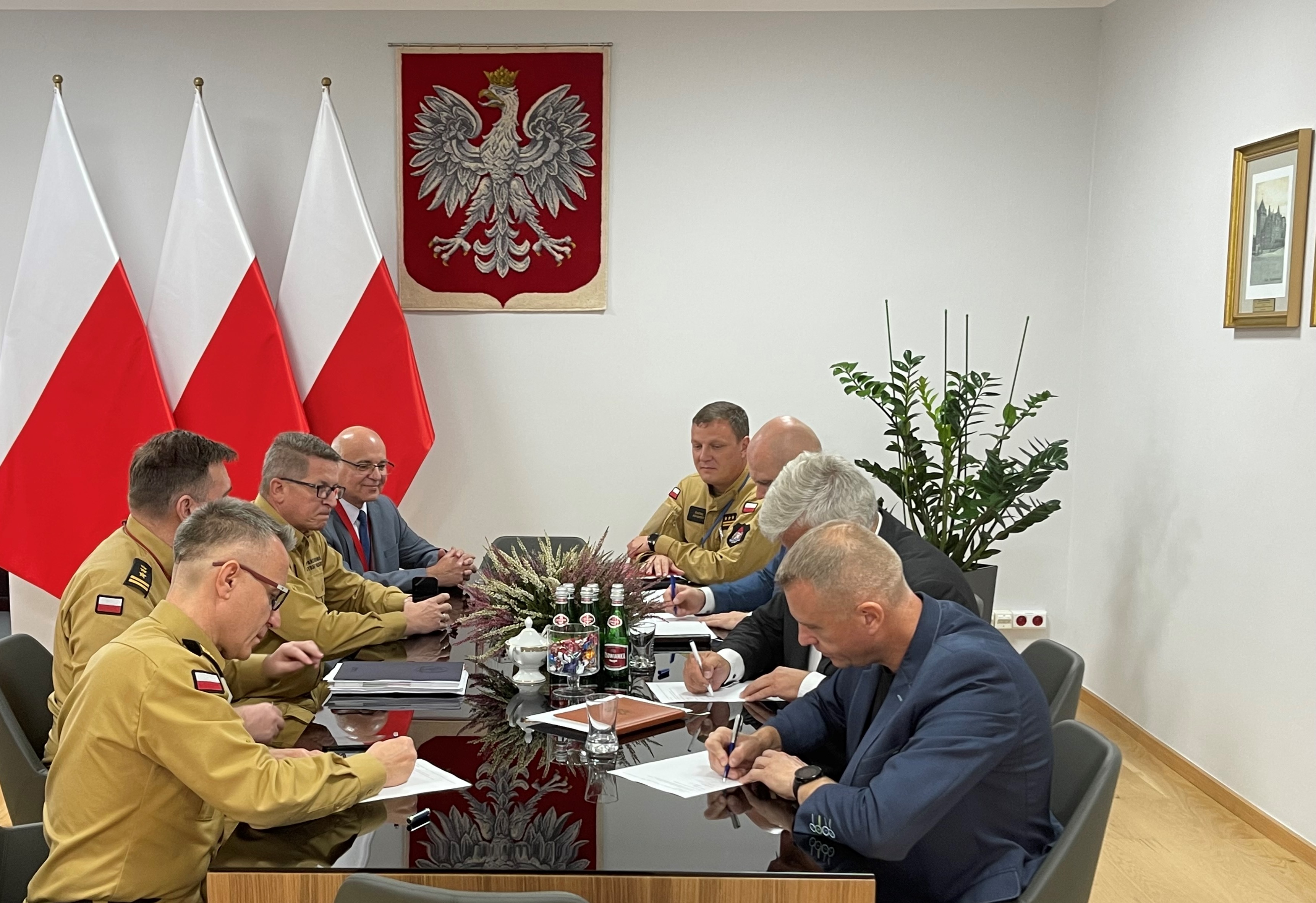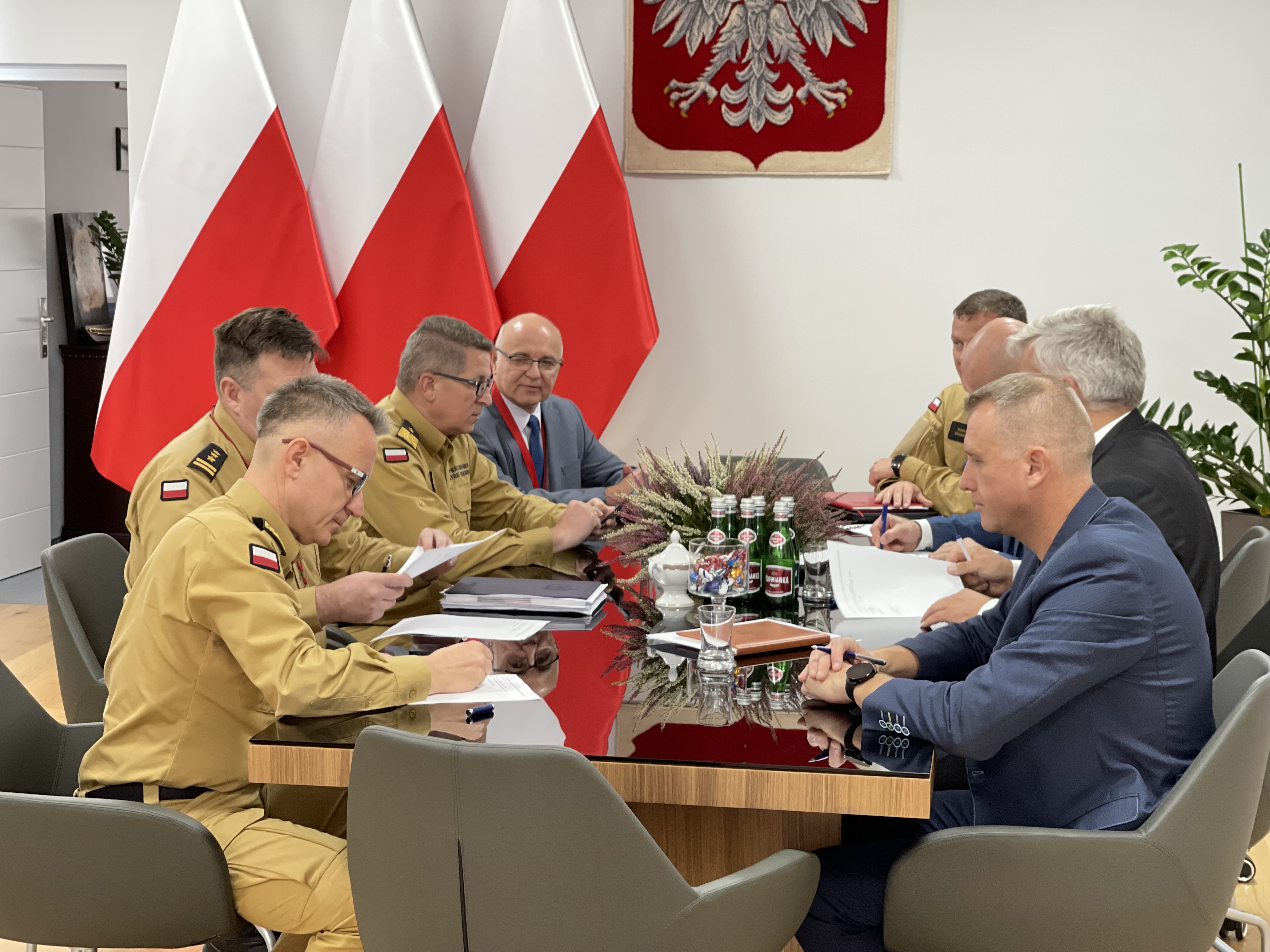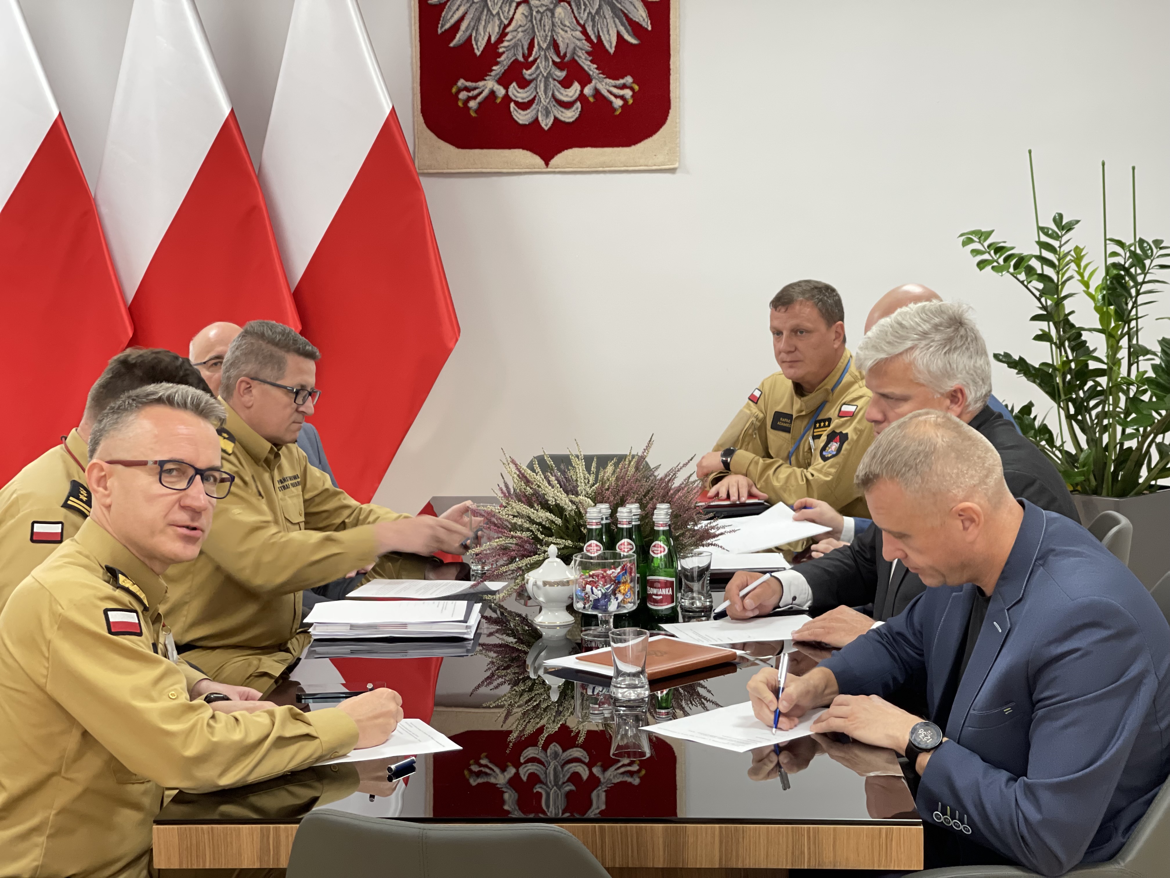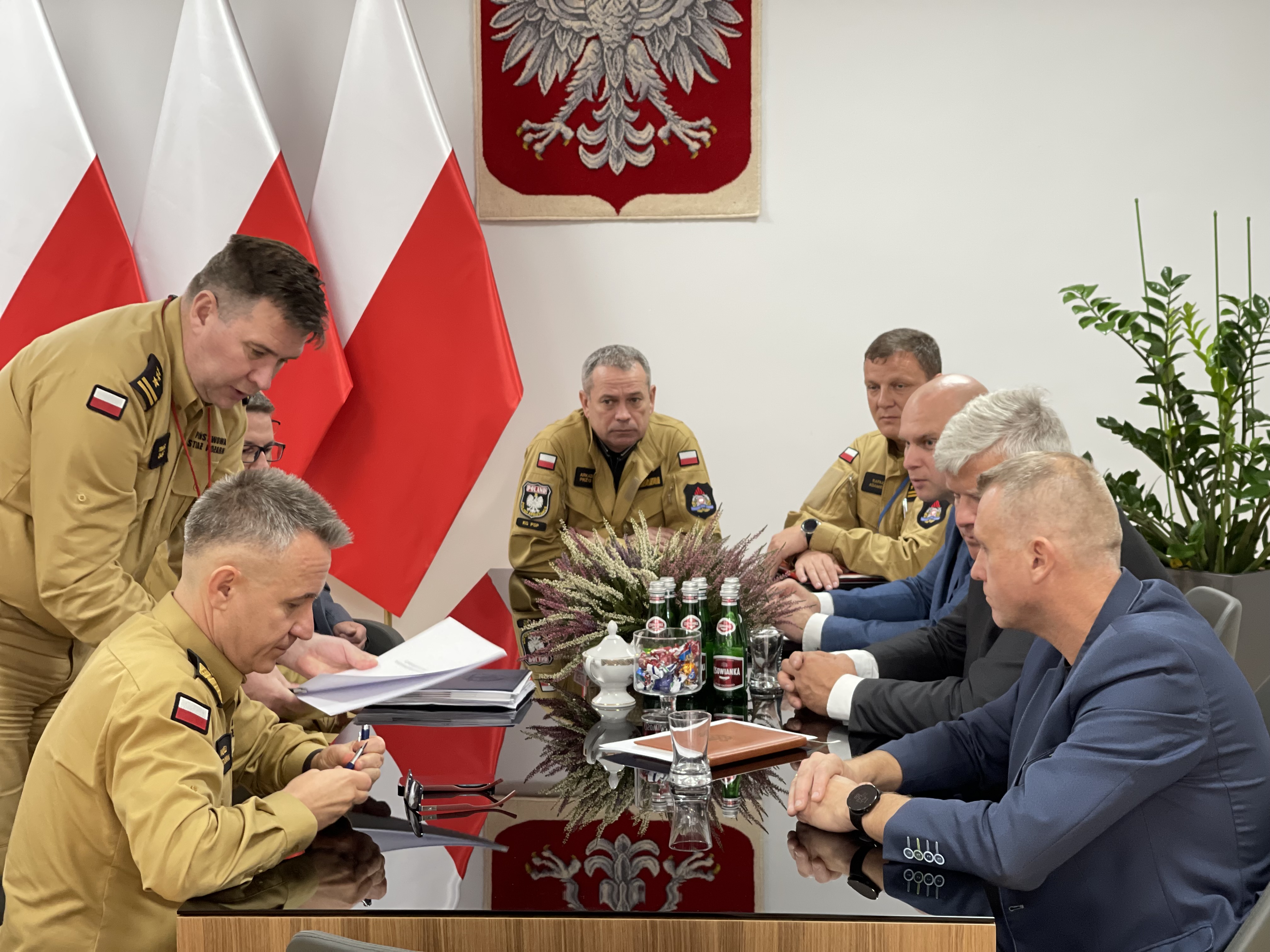 We wtorek 5 października 2021 r. w Komendzie Głównej Państwowej Straży Pożarnej odbyło się spotkanie kierownictwa Komendy Głównej PSP z przedstawicielami central związków zawodowych działających w strukturach Państwowej Straży Pożarnej.