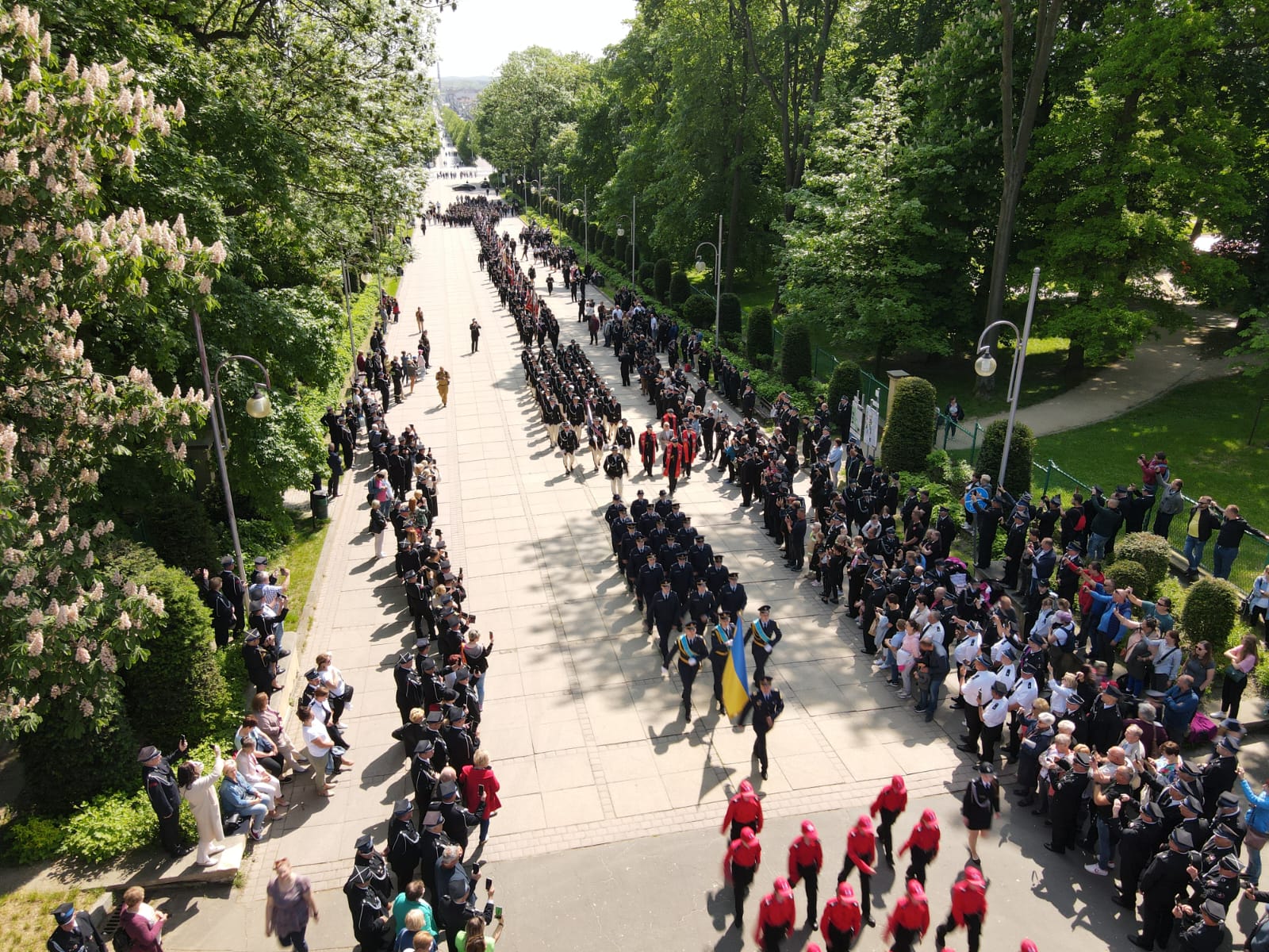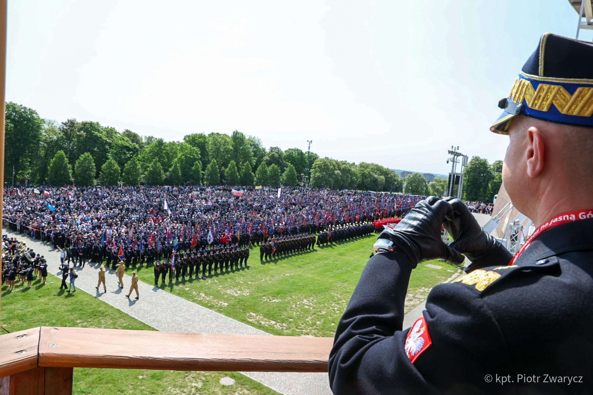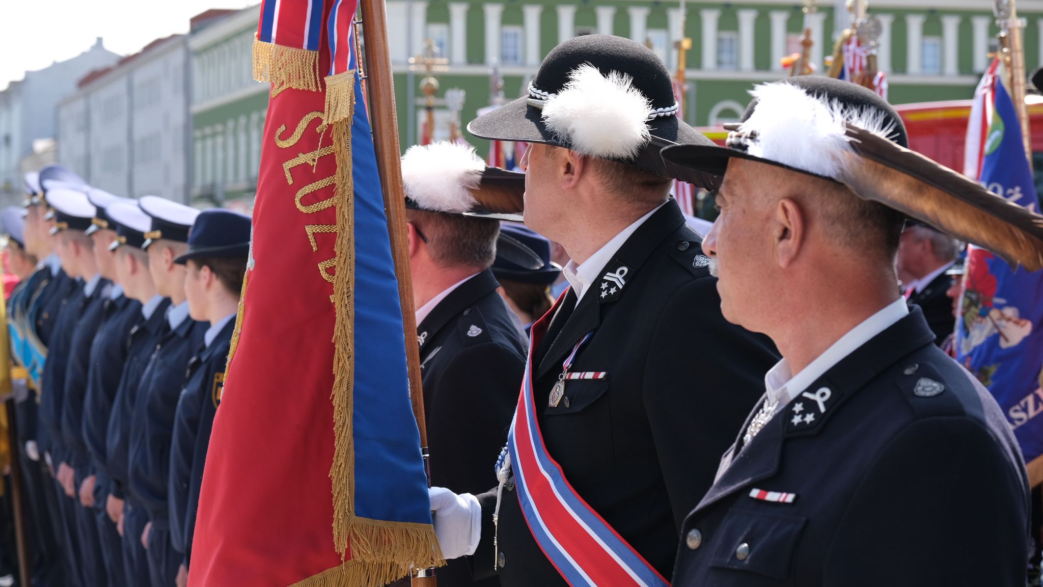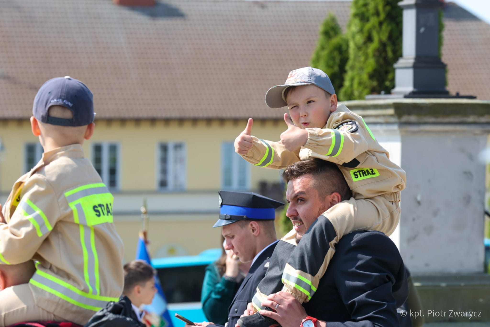 Na Placu Biegańskiego w rytm orkiestry OSP Mykanów pojawiły się Kompania Reprezentacyjna Państwowej Straży Pożarnej, Kompania Reprezentacyjna Związku Ochotniczych Straży Pożarnych RP, kompania Młodzieżowej Drużyny Pożarniczej oraz kompania strażaków z Ukrainy.