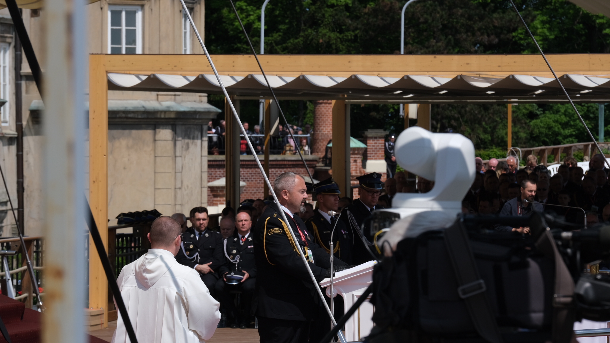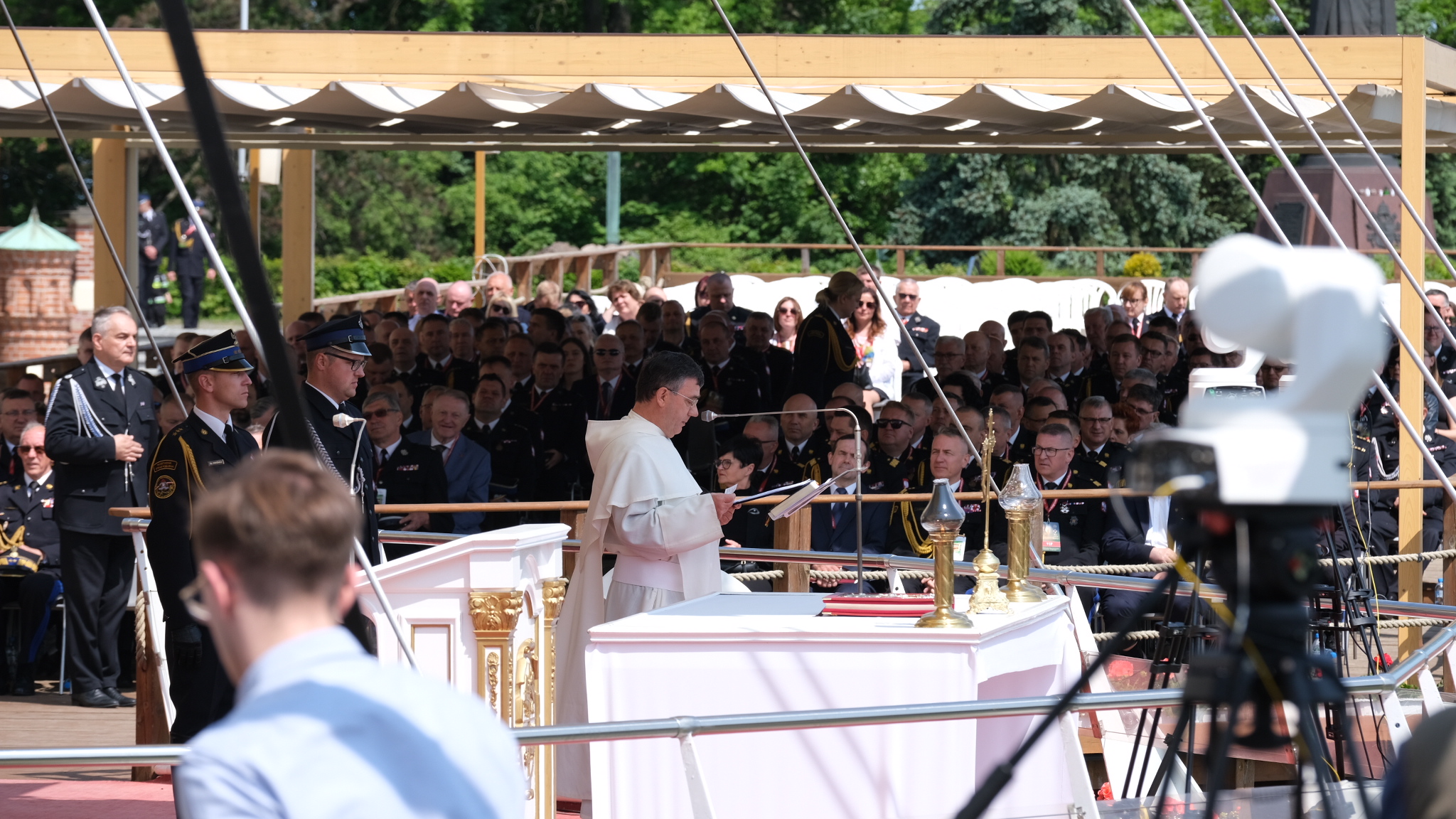 Na zakończenie mszy świętej, komendant główny PSP gen. brygadier Andrzej Bartkowiak podziękował za piękną uroczystość słowami:
