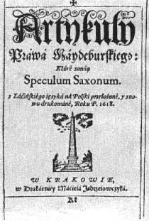 Do upowszechnienia zagadnień ochrony przeciwpożarowej przyczyniła się też książka „Artykuły Prawa Magdeburskiego", wydana w 1618 r. w Krakowie, będąca przekładem dzieła łacińskiego. Jeden z jej rozdziałów poświęcony został zagadnieniom bezpieczeństwa pożarowego w miastach.