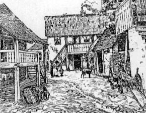 Wczesne osiedla miejskie budowano z drewna, co gorsza zazwyczaj bez żadnego planu. Nagminnym zjawiskiem było dostawianie drewnianych krużganków, ganków, schodów i schowków, co występowało nawet w późniejszych wiekach. Na przykład w Warszawie ratusz, usytuowany na środku Rynku Staromiejskiego, był jeszcze do początku XIX w. dosłownie obudowany kramami i warsztatami rzemieślników. W Krakowie powszechnie stosowano drewniane dobudówki i takie pokrycia dachowe. Jeszcze w XVI w. było tam dużo drewnianych domów krytych słomą. Niektóre budynki nie miały szyb, a otwory okienne zabezpieczano tylko okiennicami.