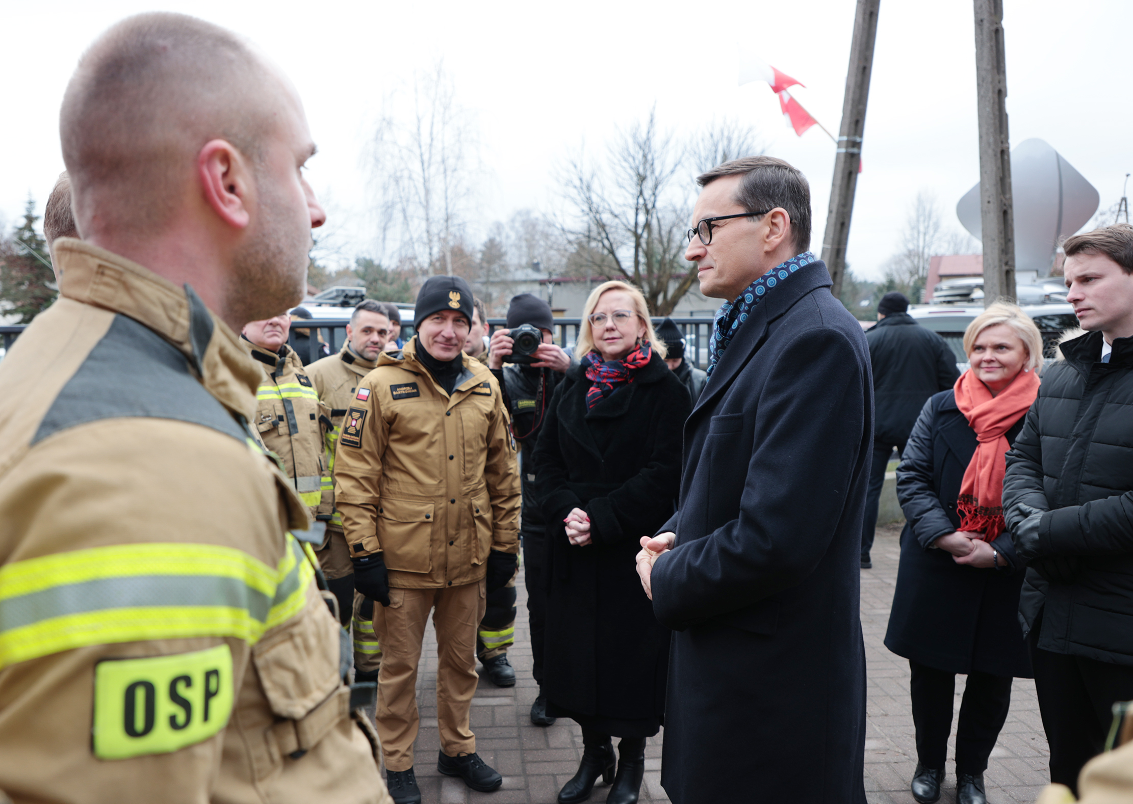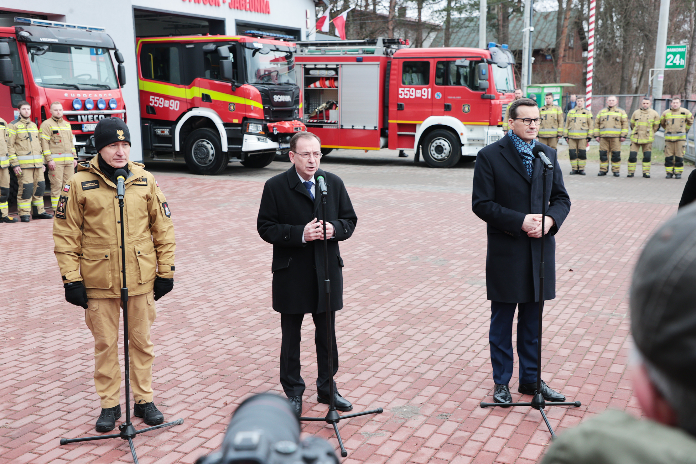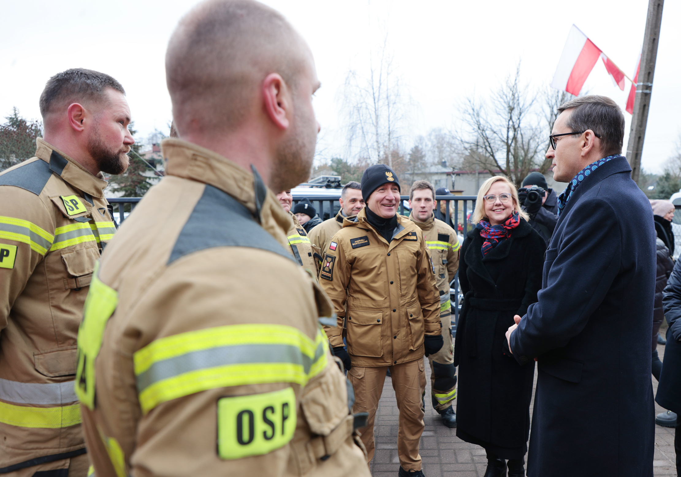 Konferencję prasową rozpoczął premier RP Pan Mateusz Morawiecki słowami: „ Mundur strażaka oznacza szacunek i zaufanie, a polscy strażacy budzą podziw na całym świecie, gdy niosą pomoc ofiarom kataklizmów, takich jak ostatnie trzęsienie ziemi w Turcji i Syrii. Bardzo dziękuję wszystkim polskim strażakom - zarówno członkom OSP, jak i zawodowcom z Państwowej Straży Pożarnej, którzy swoją służbą i odwagą chronią Polaków i dbają o dobre imię Polski. Rząd Prawa i Sprawiedliwości ma najwyższy szacunek do Waszej pracy. Doskonale wiemy, że remizy i drużyny strażackie to centra aktywności w tysiącach miejscowości w całej Polsce, dlatego modernizujemy je i przekazujemy im sprzęt oraz środki gaśnicze.”