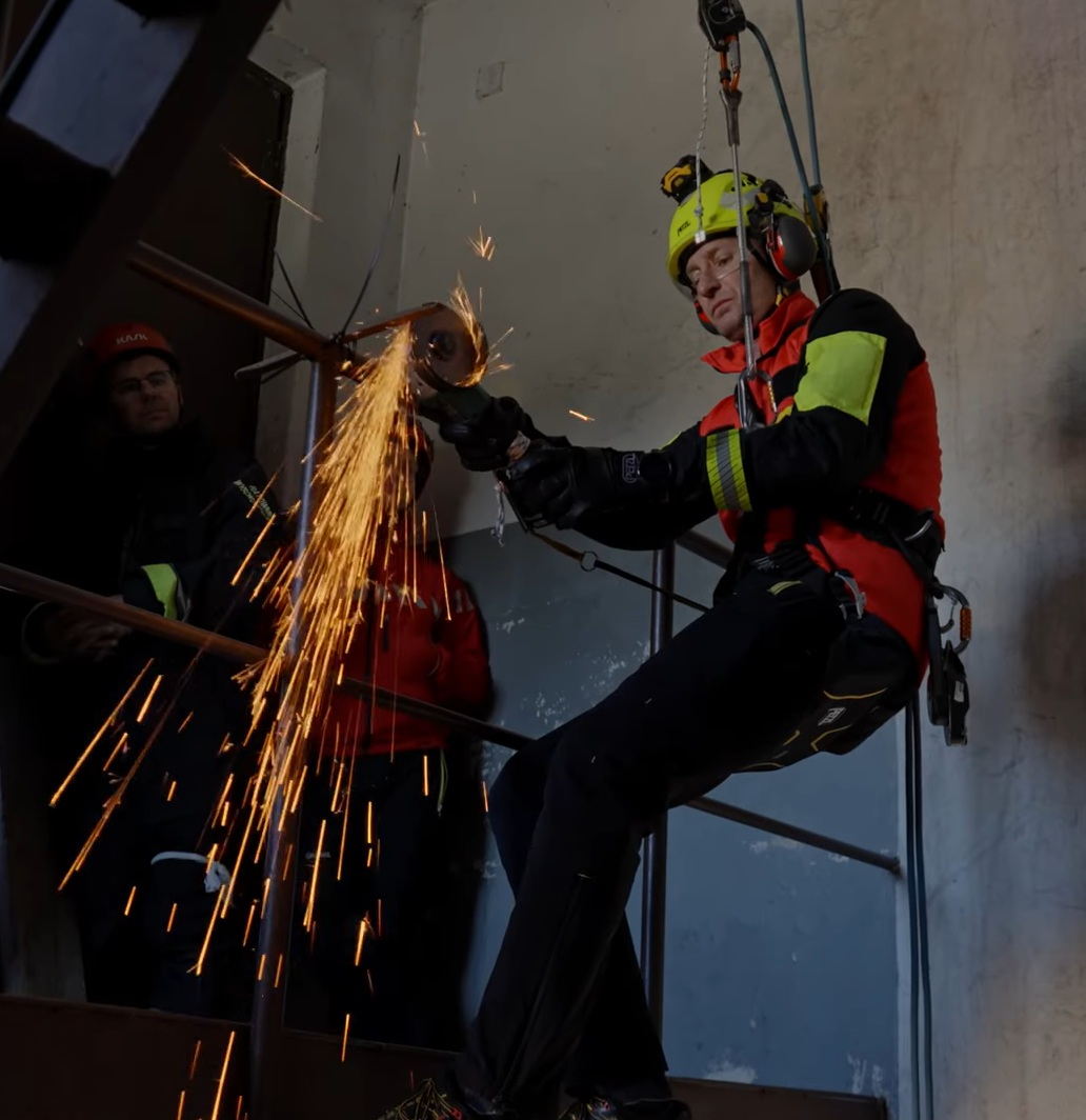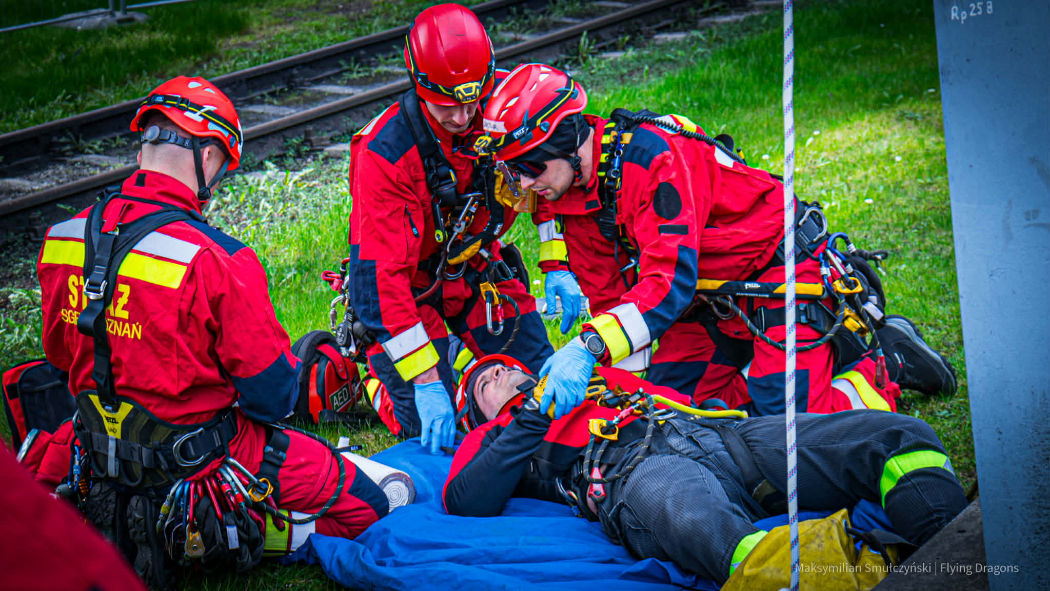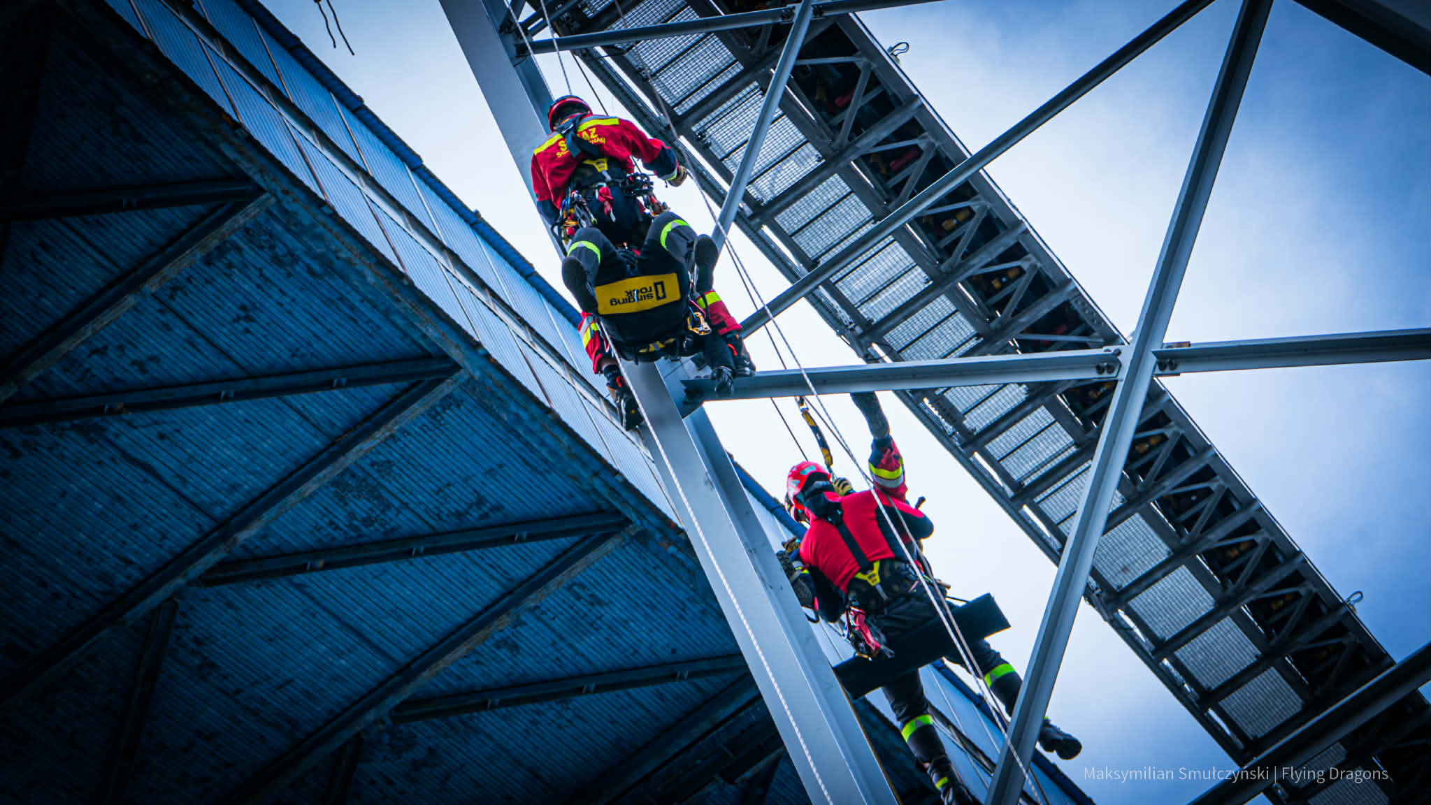Epizod nr 4 – ewakuacja poszkodowanego po uprzednim wykonaniu skutecznej resuscytacji krążeniowo-oddechowej z galerii komina gazowego z wysokości 40 m.