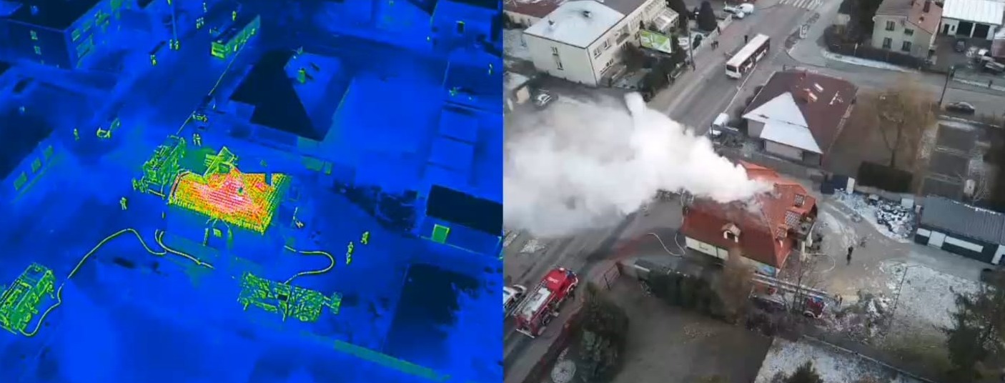 Podczas warsztatów wykorzystano również system przekazu obrazu on-line z drona w celu wsparcia KDR i SK PSP, podczas faktycznego pożaru sklepu jednej z sieci handlowych, jaki miał miejsce w dniu 12 stycznia br. w Częstochowie.